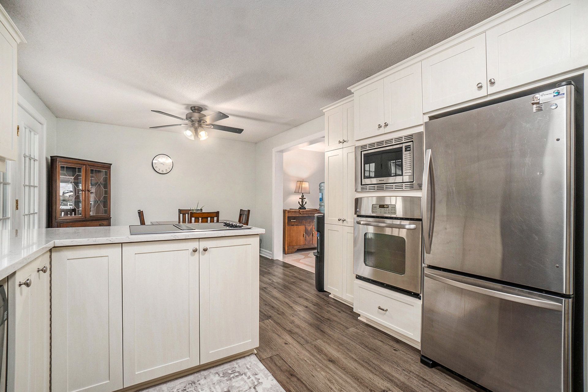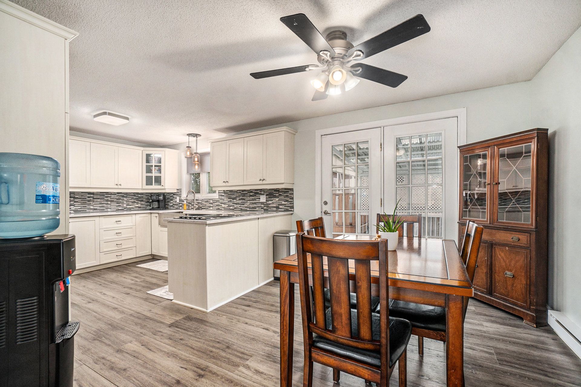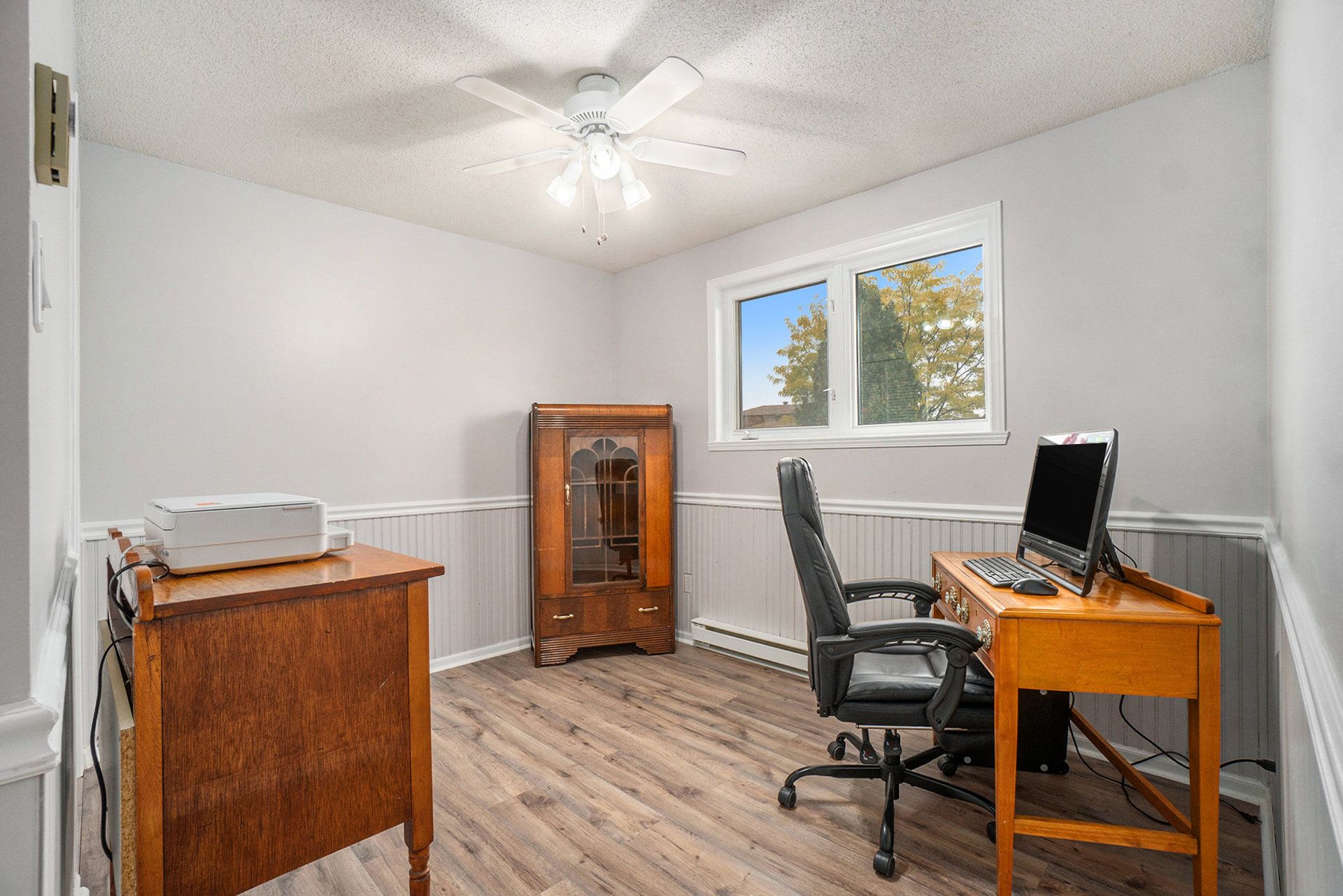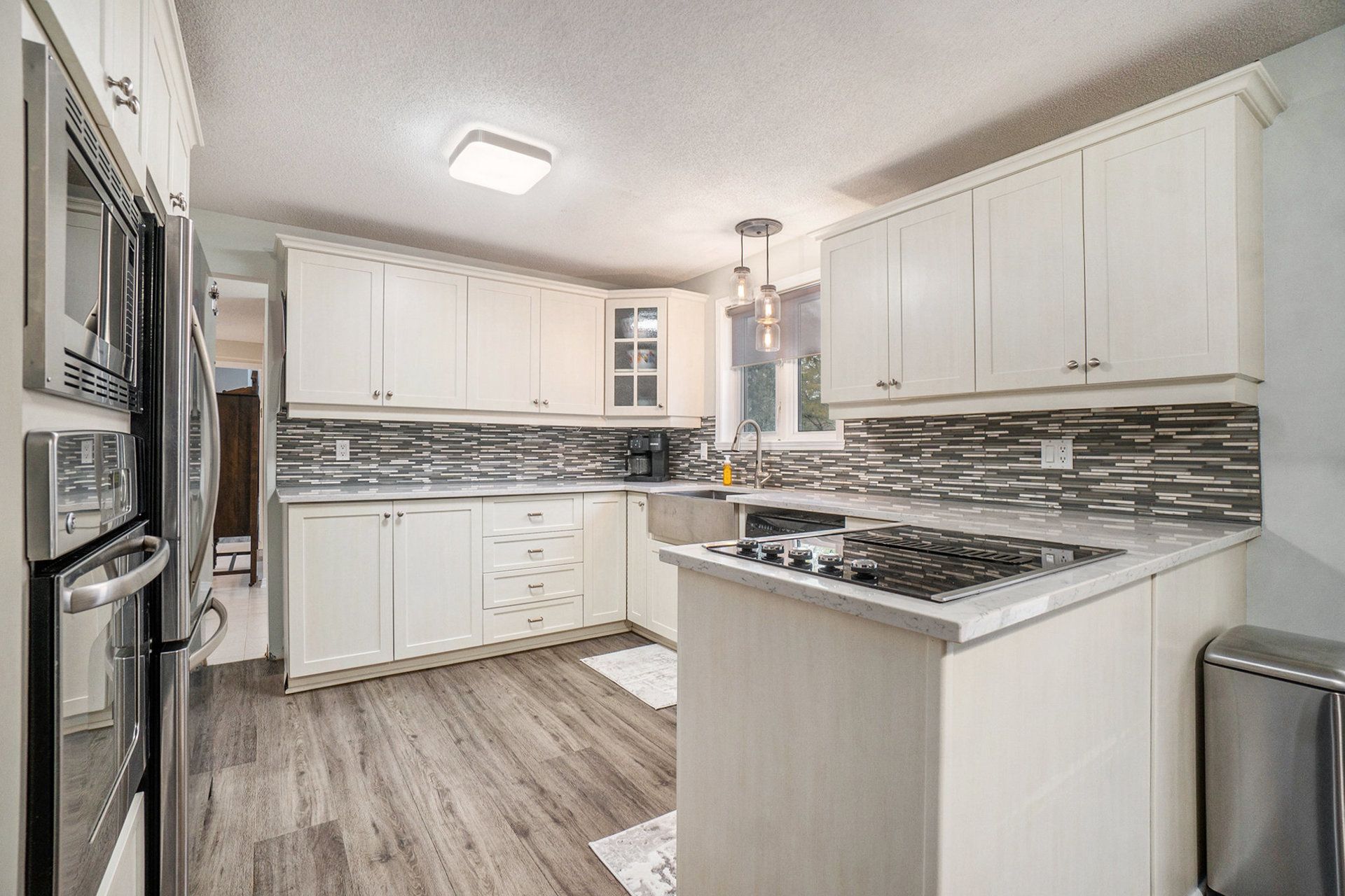 Welcome to this beautifully maintained brick bungalow, offering the perfect blend of comfort, style, and thoughtful upgrades throughout. The large, bright kitchen features solid oak cabinetry and built-in appliances, flowing seamlessly into a spacious and inviting living room-ideal for everyday living and entertaining. The primary bedroom includes a convenient 2-piece ensuite, while the fully finished basement adds exceptional bonus space with a cozy gas fireplace, abundant storage, and a newly renovated bathroom completed in 2024. The bedrooms showcase new flooring installed in 2025, enhancing both style and comfort. Step outside to a generous, fully fenced backyard with a pool-perfect for summer entertaining. The corner lot adds privacy and curb appeal, creating a peaceful outdoor retreat. Notable updates include a 200-amp electrical panel, an owned on-demand hot water heater (2023), air conditioning (2009), and a roof replaced in 2014. The front windows and front door have also been updated. The home is now heated with natural gas; however, the original electric baseboards remain in place and fully functional if ever needed. All of this is just a short walk to the village, parks, and local amenities. Move-in ready with charm, upgrades, and a fantastic location - this is truly a must-see!