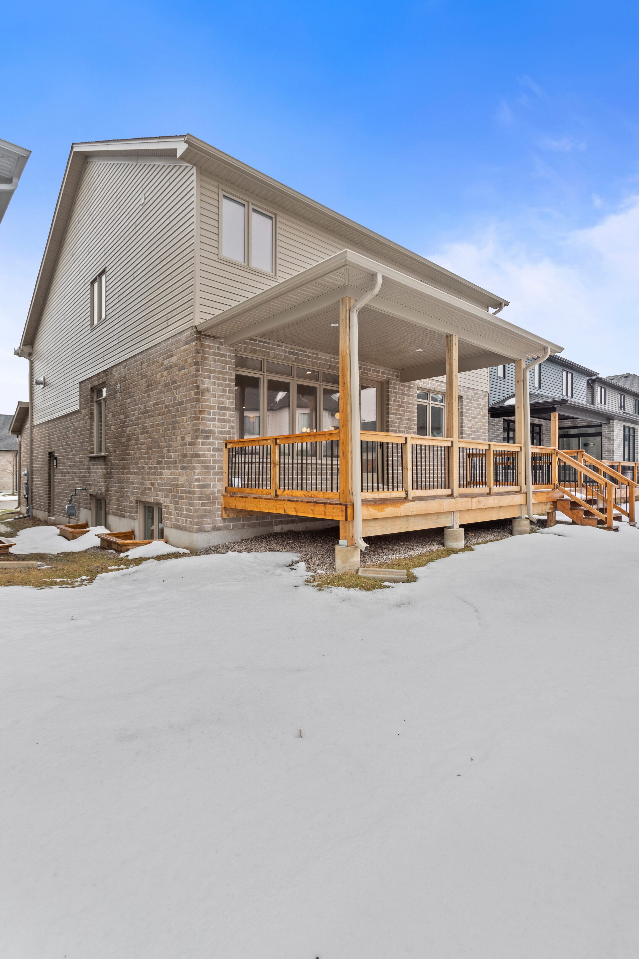 Brand new luxury awaits in this stunning 2-storey detached home located in the exclusive rembrandt walk community by rembrandt homes. Introducing the capri ii model (2335 sq ft above) an executive residence offering the perfect blend of upscale living and low-maintenance convenience. This detached vacant land condo provides all the advantages of a detached home, with low community fees that include front and rear lawn care and snow removal, allowing you to enjoy a truly carefree lifestyle. Step inside to an impeccable open-concept main floor featuring high-end finishes throughout. The chef-inspired kitchen is equipped with premium appliances and flows seamlessly into the spacious living room and breakfast area, with walkout access to a 16' x 10' covered deck plus a 10' x 10' sundeck extension-ideal for indoor-outdoor entertaining. The inside entry form the garage is the perfect set up to unpack as your settle in from a busy day. The second level offers a thoughtfully designed layout with a bright bonus family room complete with a gas fireplace, convenient second-floor laundry, and a luxurious primary retreat featuring a spa-like 5-piece ensuite. Two additional generously sized bedrooms are serviced by a well-appointed 4-piece bathroom-perfect for families of all stages. The finished lower level adds even more versatility with a cozy rec room, 3-piece bathroom, fourth bedroom, and ample storage space. This move-in-ready home includes all appliances as shown. Ideally situated in one of london's most sought-after neighbourhoods, just minutes to masonville mall, major shopping centres, sunningdale golf course, and western university with nearby hospitals. This exceptional property offers luxury, convenience, and community living at its finest. Don't miss your opportunity to own in rembrandt walk - book your private tour today! * note: all window blinds/drapery is virtually added.