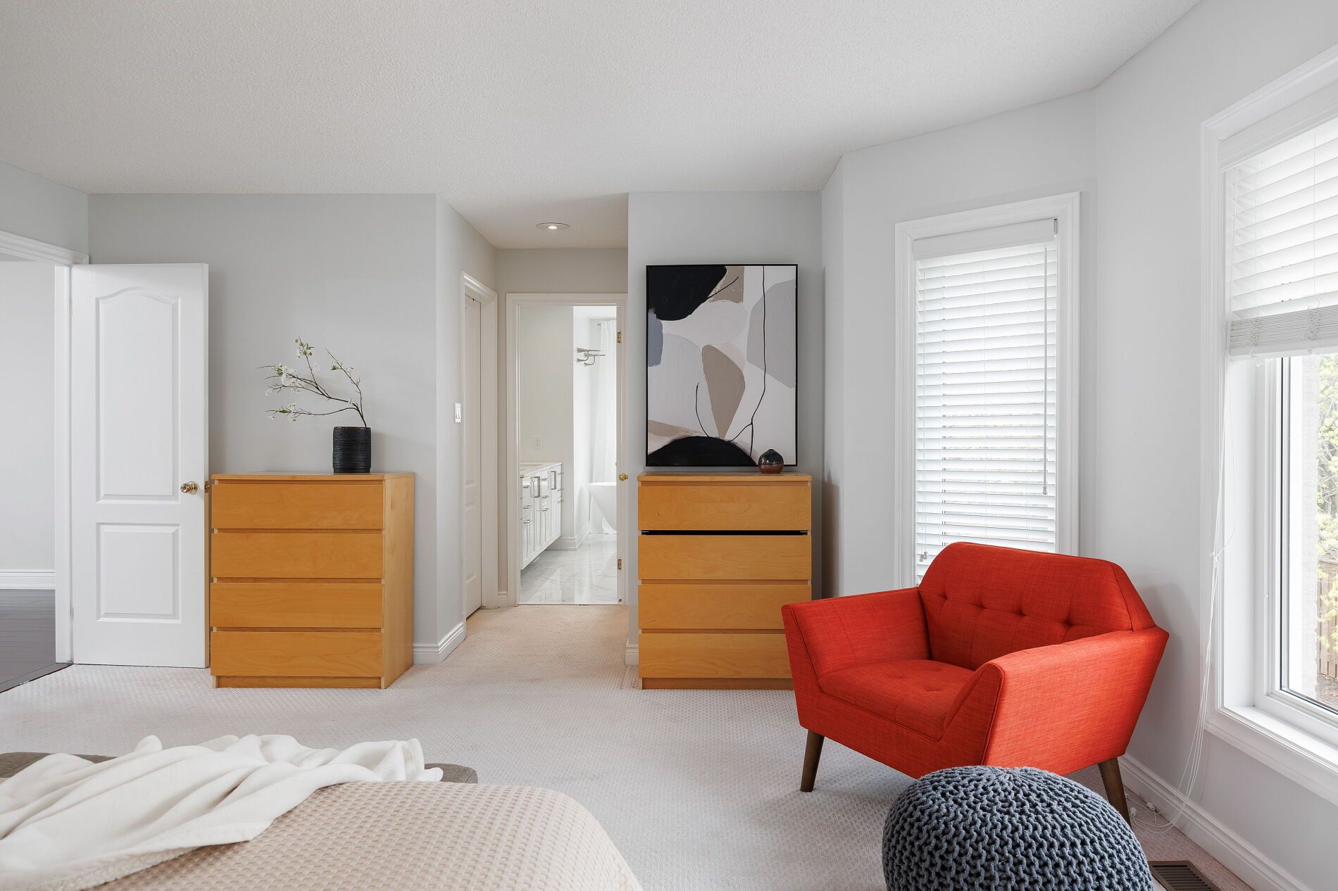 Experience the pinnacle of refined living in one of west oak trails most sought-after enclaves of executive homes blending upscale comfort with the tranquillity of nature. Embraced by the lush woodlands of the 16 mile creek ravine & within walking distance to the glen abbey golf club, highly-ranked schools, neighbourhood parks & just minutes from the oakville hospital, shopping, restaurants & highways, making the perfect balance of serenity & convenience. Curb appeal abounds with mature, professional landscaping, and an expansive interlocking stone driveway leading to a rarely offered 3-car garage with inside entry. The sun-soaked backyard, perfect for outdoor entertaining, features a brand-new stone patio (2024) & provides a serene retreat. Step inside this beautifully updated 4+2 bedroom, 4. 5-bathroom home, where timeless elegance meets modern design. Highlights include hardwood flooring, 9 main floor ceilings, & a stunning scarlet ohara staircase that sets the tone for the entire home. The formal living room, with its soaring cathedral ceiling, flows effortlessly into a sophisticated dining area with classic crown mouldingsideal for hosting elegant dinner parties. The stunning renovated kitchen (2022) boasts sleek modern cabinetry, quartz countertops, premium stainless steel appliances, & a walkout to the private patio. The spacious family room offers a cozy haven to relax, while the dedicated home office makes working remotely a breeze. Upstairs, the luxurious primary suite is a private sanctuary featuring a spa-inspired 5-piece ensuite complete with a freestanding soaker tub & a frameless glass shower. The professionally finished basement adds incredible versatility, featuring a generous recreation room with a gas fireplace, a vast open-concept area ideal for configuring to suit your lifestyle, a fifth bedroom with access to a 3-piece bath, & a home gym or potential sixth bedroom.