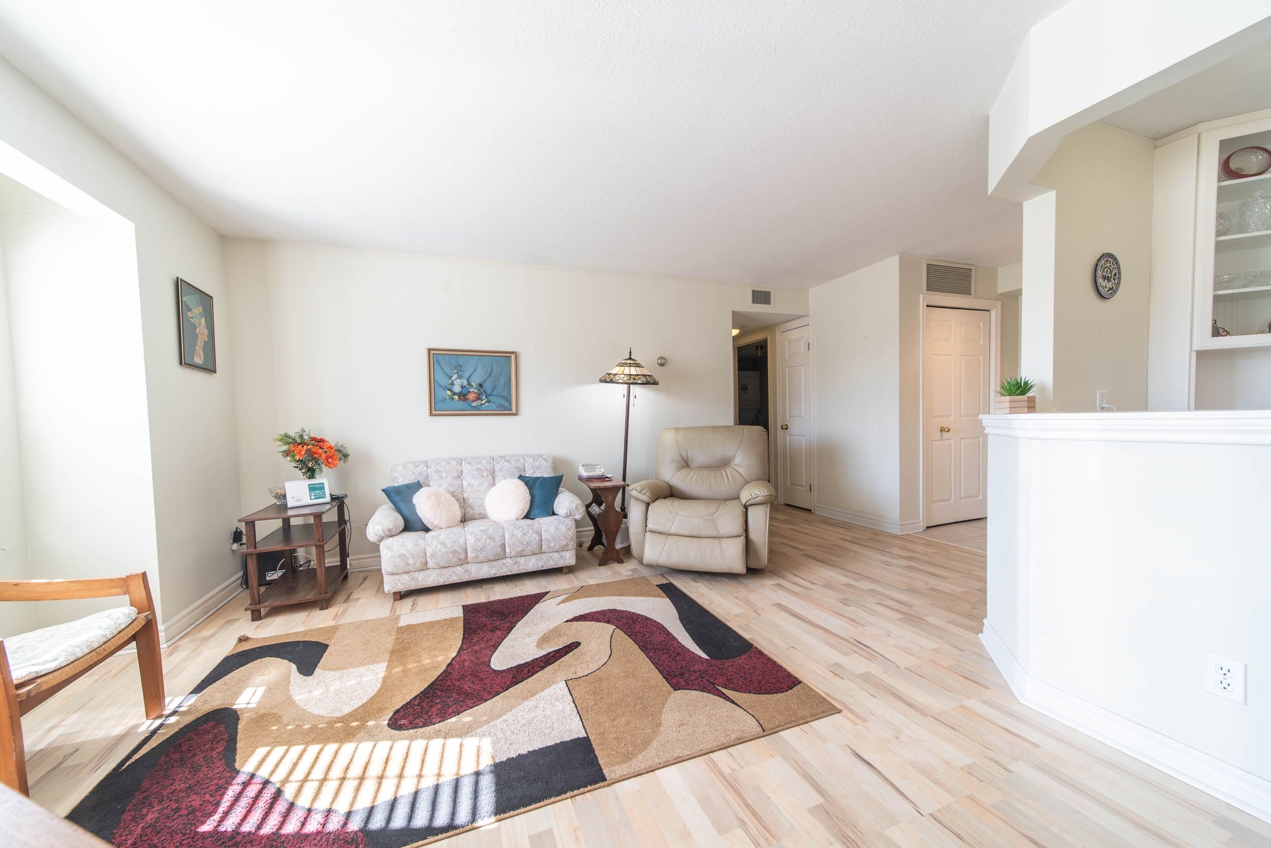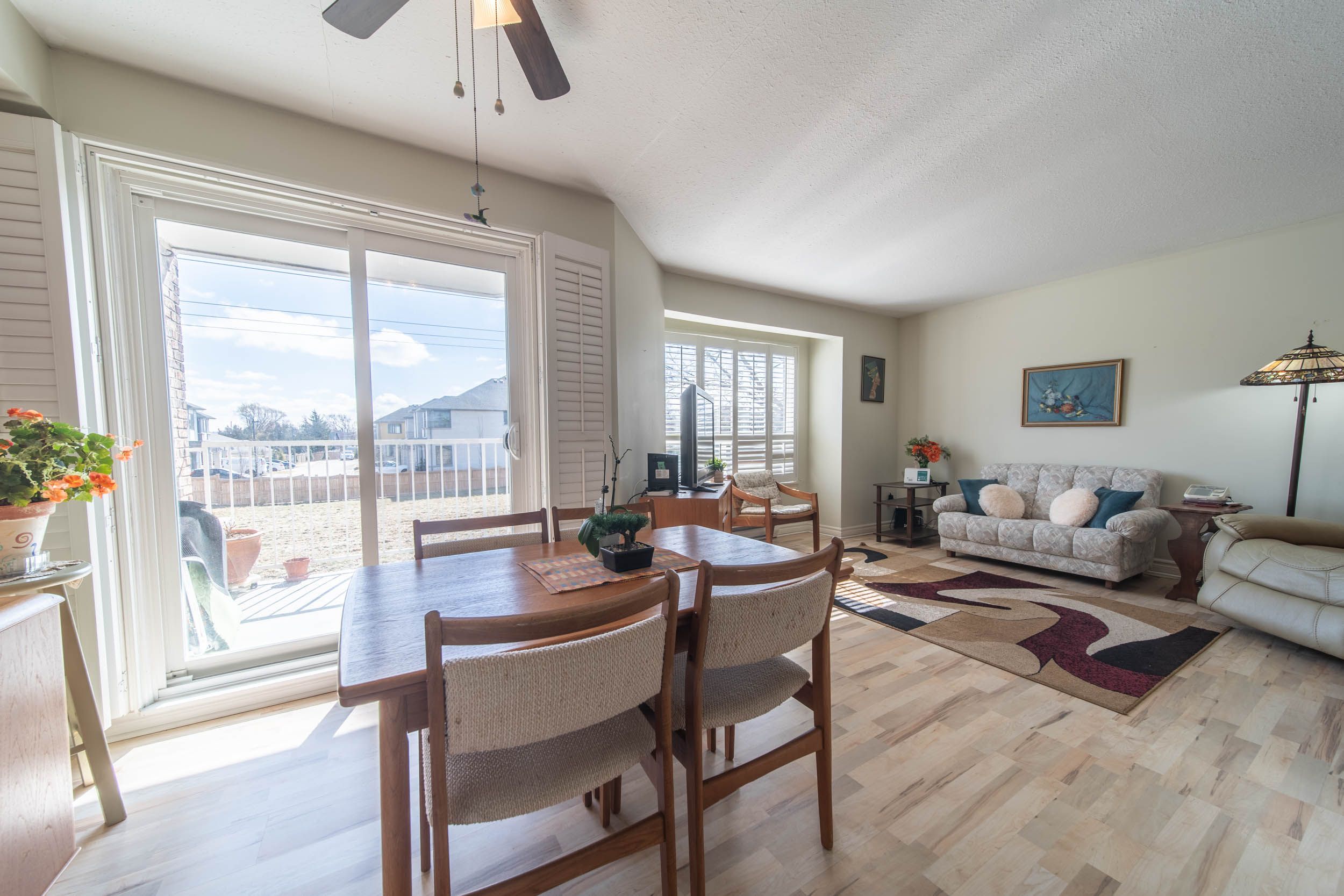 • Open-concept living and dining area with laminate flooring for easy maintenance.
