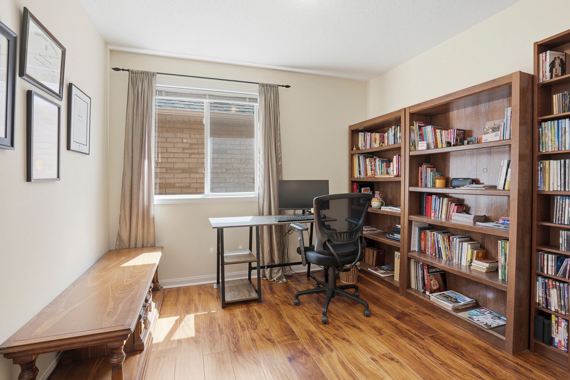 Welcome to this meticulously maintained four-bedroom, three-bathroom detached home, thoughtfully designed to blend everyday functionality with refined architectural character. The residence offers well-proportioned interior spaces and an intuitive layout ideal for both comfortable family living and elegant entertaining. The home has been exceptionally cared for, evident in the quality finishes and pristine condition throughout. Expansive windows flood the principal rooms with natural light, enhancing the sense of space and creating a warm, inviting atmosphere. The upper level features four generously sized bedrooms and an office niche. The primary suite includes a walk-in closet and a beautifully appointed four-piece ensuite. The office niche provides an ideal space for working or studying from home. The lower level showcases a spacious, tastefully finished open-concept recreation and gym area, complete with pot lights and luxury vinyl plank flooring. A large laundry room with ample storage, along with additional storage rooms throughout the basement, adds to the home's practicality. Outdoors, the professionally curated garden is a true highlight-offering a serene extension of the home's living space. With mature plantings, balanced composition, and year-round interest, it provides both privacy and visual appeal. Key updates include: roof (september 2019) by findlay roofing, featuring a gaf system plus warranty. Furnace & a/c (carrier) - june 2017ideally located just steps from highly regarded schools, parks, walking and cycling trails, and charming local shops and restaurants, this home also offers convenient access to major western ontario universities, including university of toronto mississauga, mcmaster university, and university of waterloo-making it an excellent choice for families and professionals alike. Welcome home