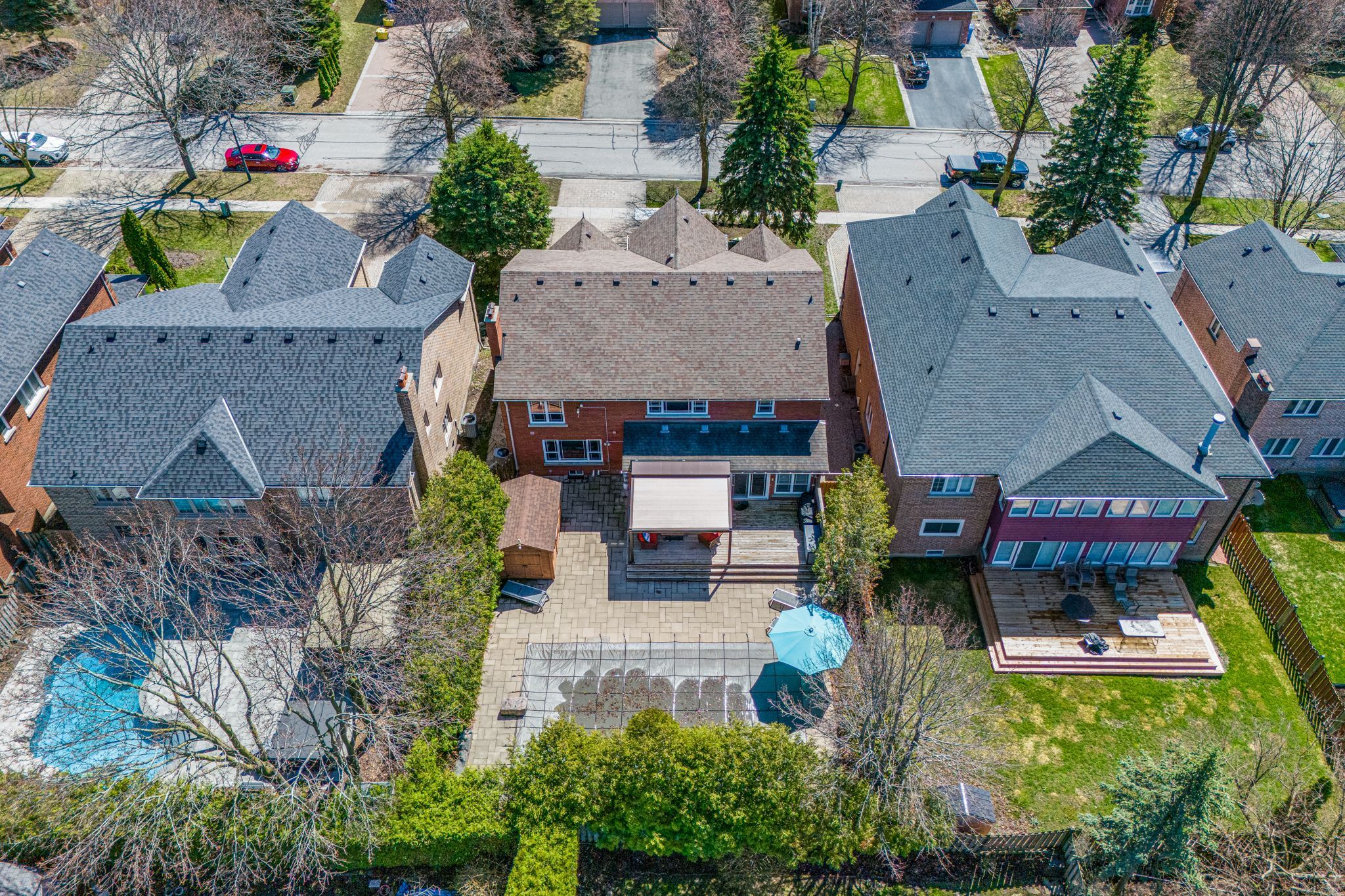 Welcome to 1063 secretariate road - a 4-bedroom detached home in stonehaven, one of newmarket's most established neighbourhoods known for its larger lots, mature tree-lined streets, and walkability to parks and trails. Offering over 3,800 square feet on a 59 x 134 ft lot, this home is designed for both everyday family living and entertaining at scale. The main floor opens with a grand riser-less scarlett o'hara staircase and includes formal living and dining spaces alongside a fully renovated custom kitchen with stone countertops, stainless steel appliances, and a walkout to the backyard. The outdoor space is built for entertaining, with a large in-ground saltwater pool, cabana, multiple seating areas, and a motorized retractable pergola with built-in lighting. Upstairs, the oversized primary bedroom features a fully renovated ensuite with dual vanities, heated flooring and a dual-entry walk-in shower. Three additional bedrooms offer flexibility for family, guests, or a dedicated workspace. The finished basement extends the living space with a large recreation area, custom wet bar, full bathroom, and a high-end built-in sauna. Minutes to bayview avenue, leslie street, highway 404, top-rated public and private schools, and both the newmarket & aurora go stations.