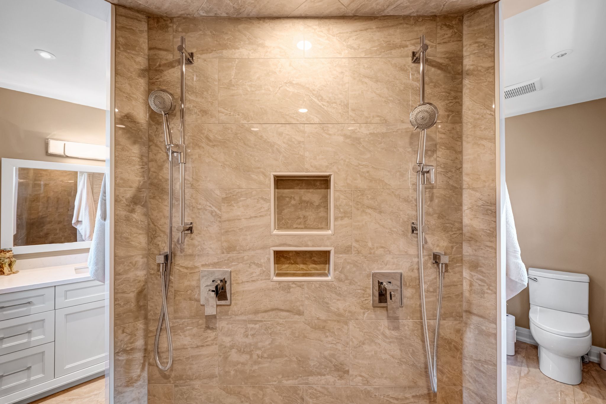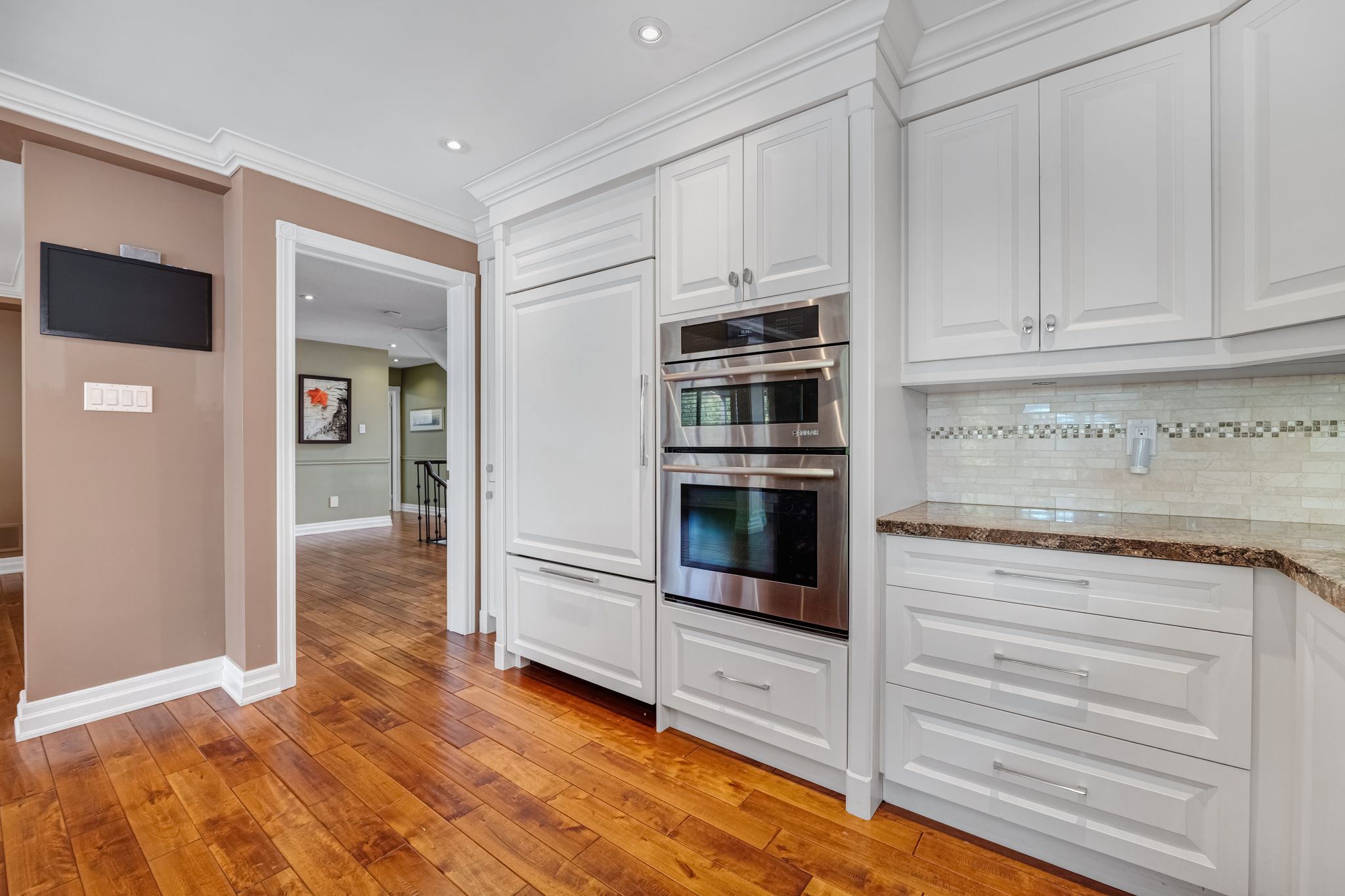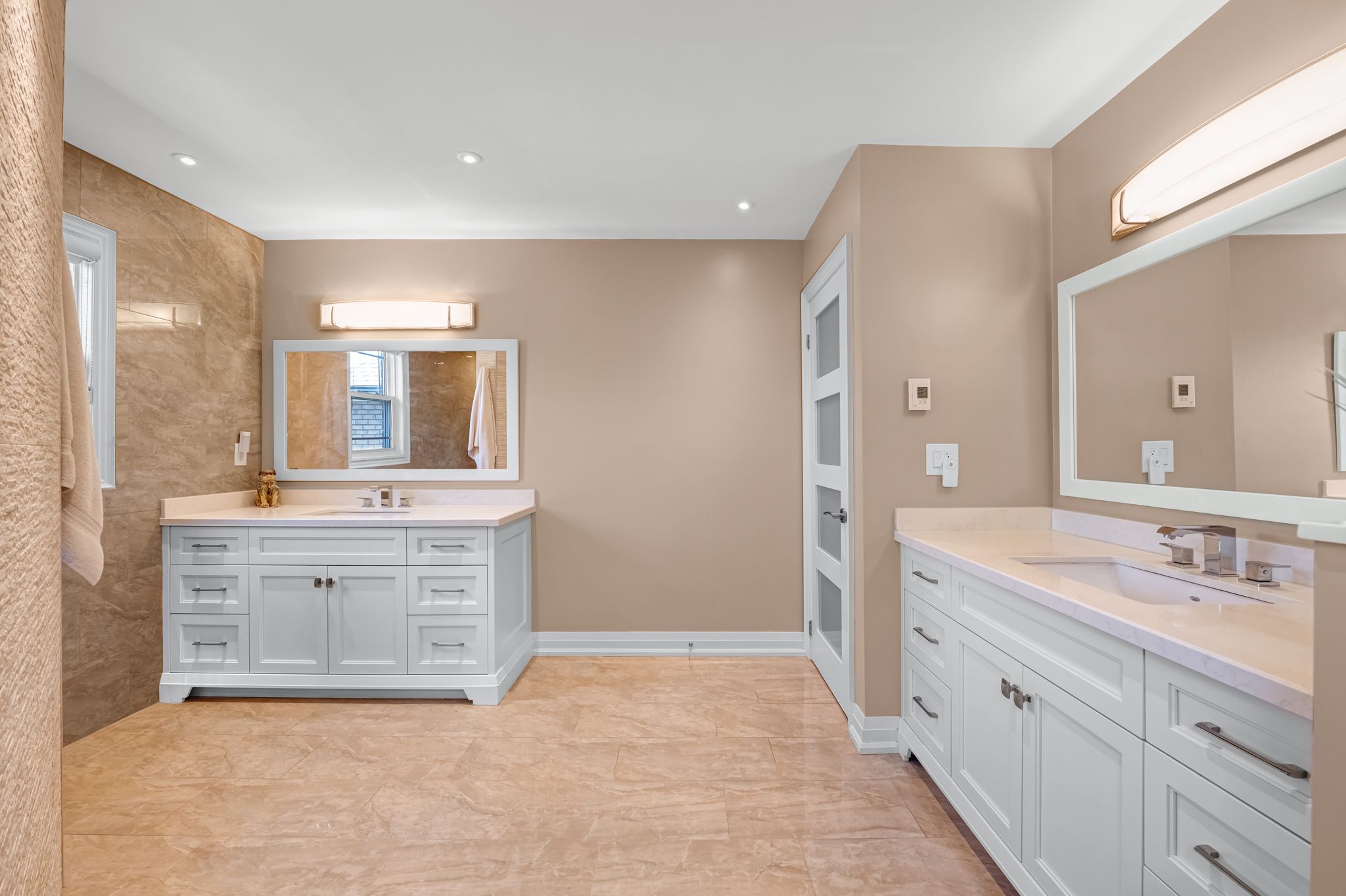 • Oversized primary bedroom with a luxurious ensuite and heated flooring.