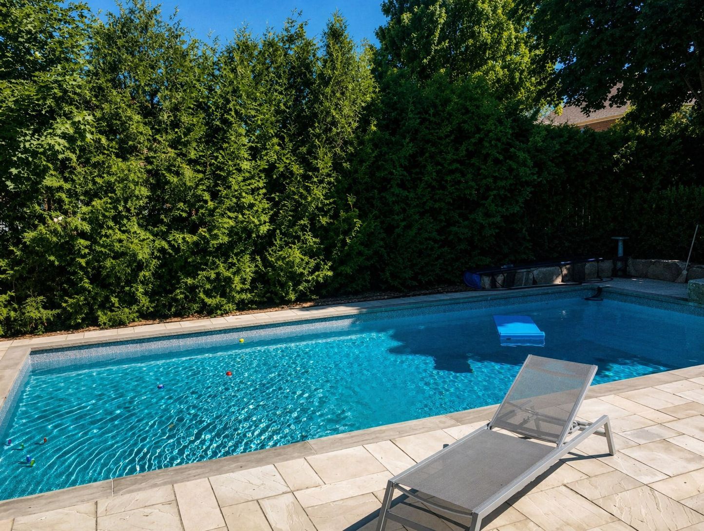 • Outdoor oasis with a saltwater pool, cabana, and seating areas.