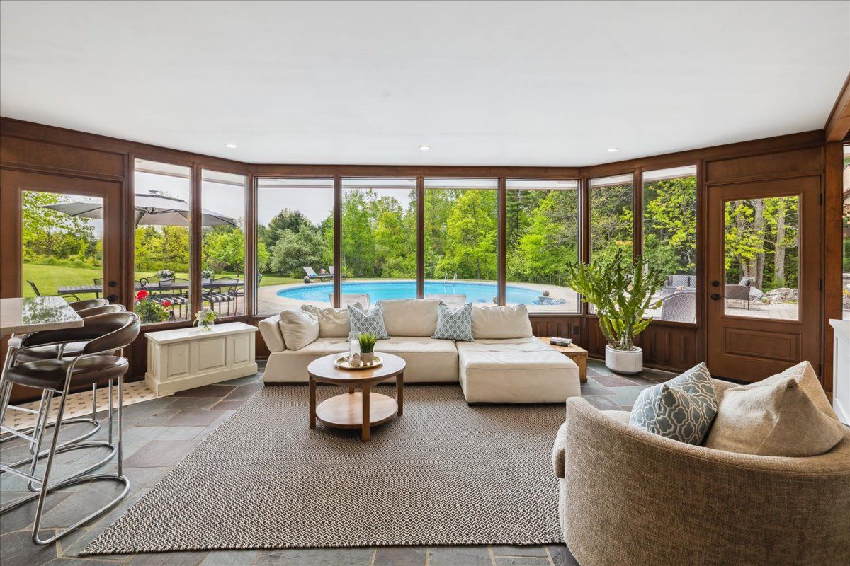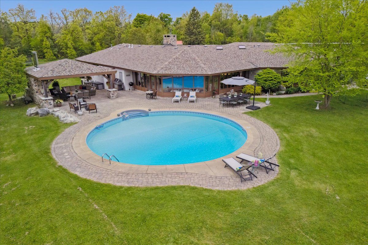 A once-in-a-lifetime countryside estate where architectural prestige meets natural beauty. Tucked away down a sweeping drive through a majestic forest, this exceptional estate offers a rare blend of architectural pedigree, timeless design, and serene country living. Designed by renowned architect grant whatmough, celebrated for his iconic mid-century modern vision, this sprawling bungalow is a masterpiece of craftsmanship and innovation. Set on over 33 acres of a pristine mixed-terrain horse farm, the property is a nature lovers dream, with private trails, rolling fields, and various peaceful vistas. The thoughtfully designed 6-bedroom split layout is an early showcase of contemporary architecture, perfectly suited for extended families or those seeking space and privacy. Every inch of the home reflects care and quality, with numerous updates including cranberry hill designed kitchens, baths, and a recently added in-law suite. The design allows a seamless interaction to nature with panoramic window views and numerous walk outs. A one-bedroom studio apartment attached to the 4-car garage offers flexibility for guests, multigenerational living, or rental income. Enjoy an impressive 5 stall barn with 4 paddocks for equestrian pursuits or creative endeavors, a resort-style round pool, a cozy wood fire in the spectacular pergola, hot tub, and room to breathe and grow. This is more than a home, its a legacy estate built for generations. Come experience the perfect balance of elegance, tranquility, and function. Opportunities like this don't come twice. Reach out to schedule your private viewing and step into the extraordinary.