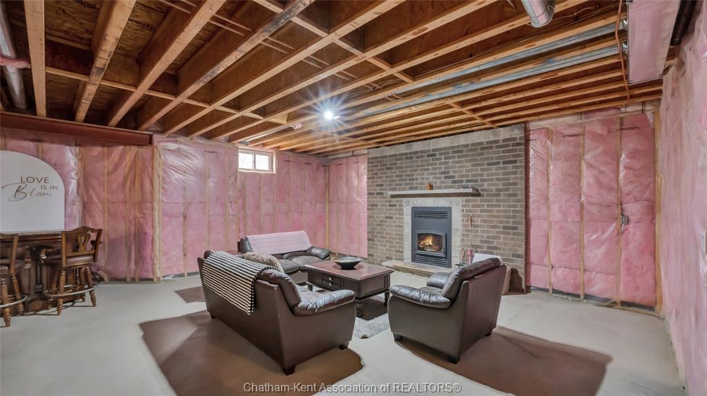 • Basement with high ceilings and a cozy wood-burning fireplace for relaxation.