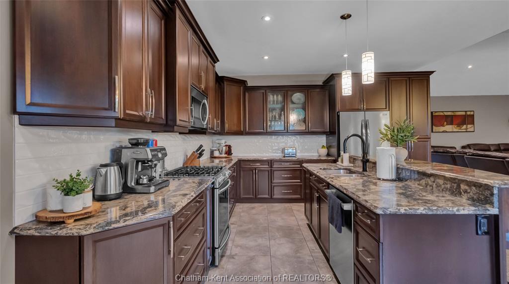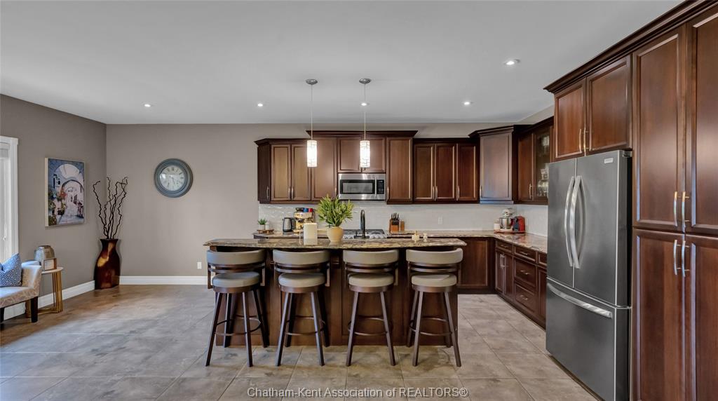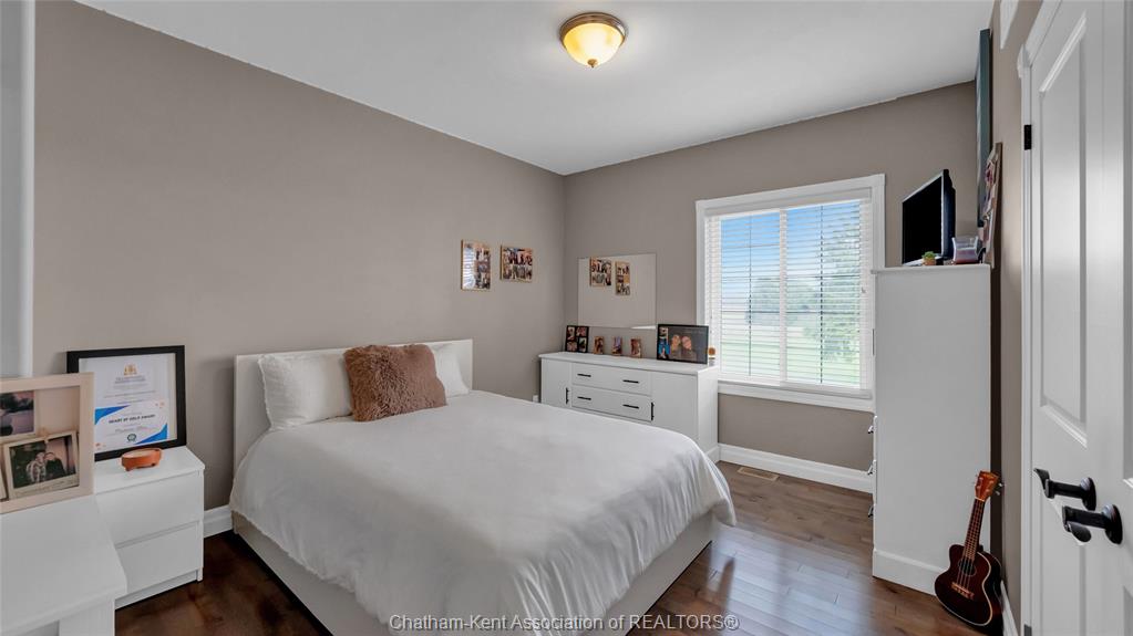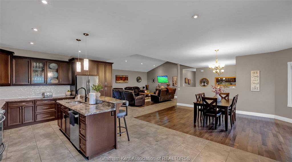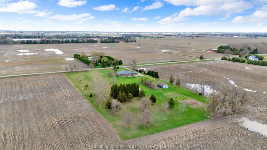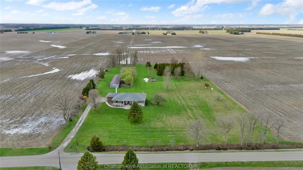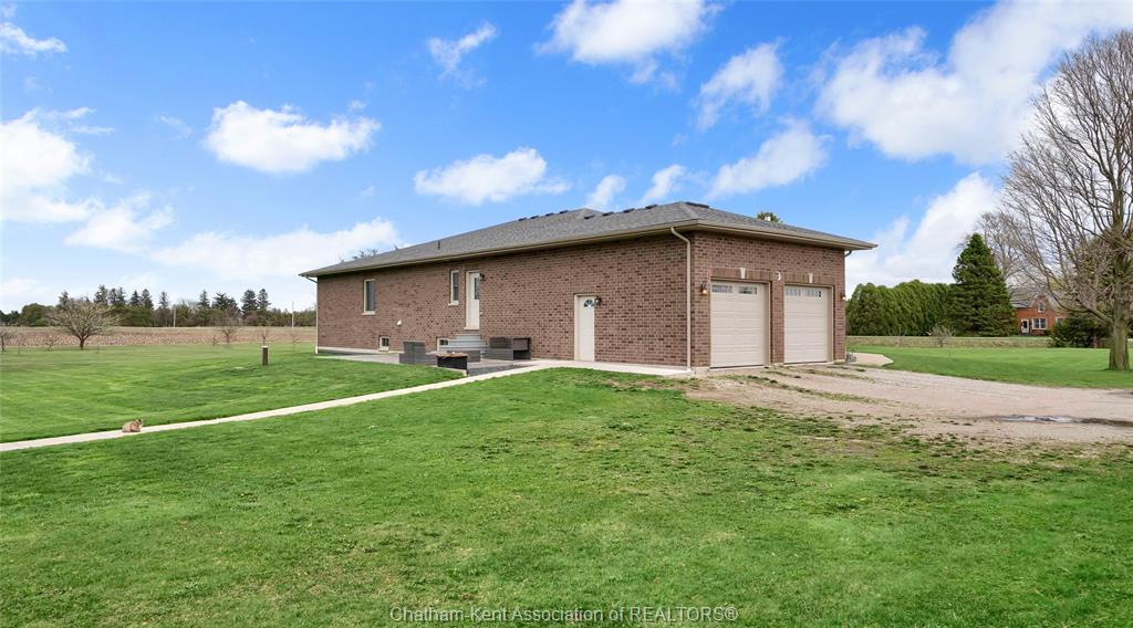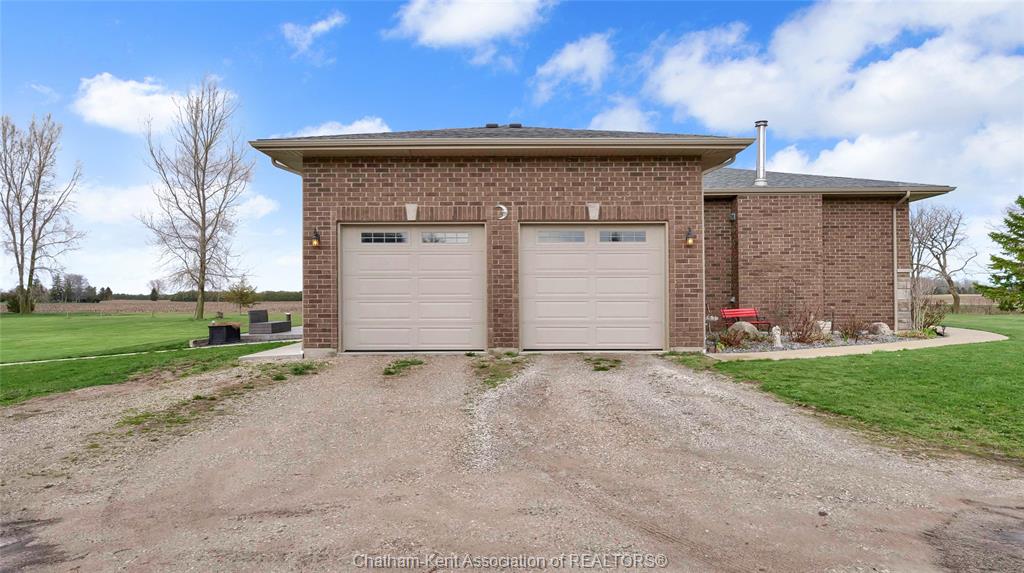 Welcome to your private retreat! This custom built ranch offers nearly 3,000 sq ft of thoughtfully designed living space, perfectly set on over 5 acres of prime land just outside of chatham. Enjoy the best of both worlds, minutes to amenities and highway 401, yet private enough to truly live your dream lifestyle. The outdoor space is a blank canvas, ready for your vision. A standout feature is the expansive 23' x 115' outbuilding, complete with its own well, electricity, concrete floor, and fenced exterior area, ideal for hobbies, storage, or what your imagination can drum up! Built in 2015, the home showcases a beautiful stone and brick exterior along with a spacious attached double car garage. Inside, a welcoming foyer opens into a bright, open concept living, kitchen, and dining area, perfect for everyday living and entertaining. Featuring 4 generously sized bedrooms and 2. 5 bathrooms, this home offers space and comfort for the whole family. The mudroom includes a convenient rear entrance and direct access to the garage, which also provides interior access to the basement. Downstairs, the basement boasts over 10 foot ceilings and a cozy wood-burning fireplace, an ideal space to relax or customize to your needs. Additional features include: geothermal heating and cooling, uv water filtration system, hardwood and ceramic flooring throughout (no carpet), two wells and a septic system. This is your opportunity to own a peaceful, versatile property with endless potential. Don’t miss your chance! Your dream lifestyle awaits! Home is where the hart is!