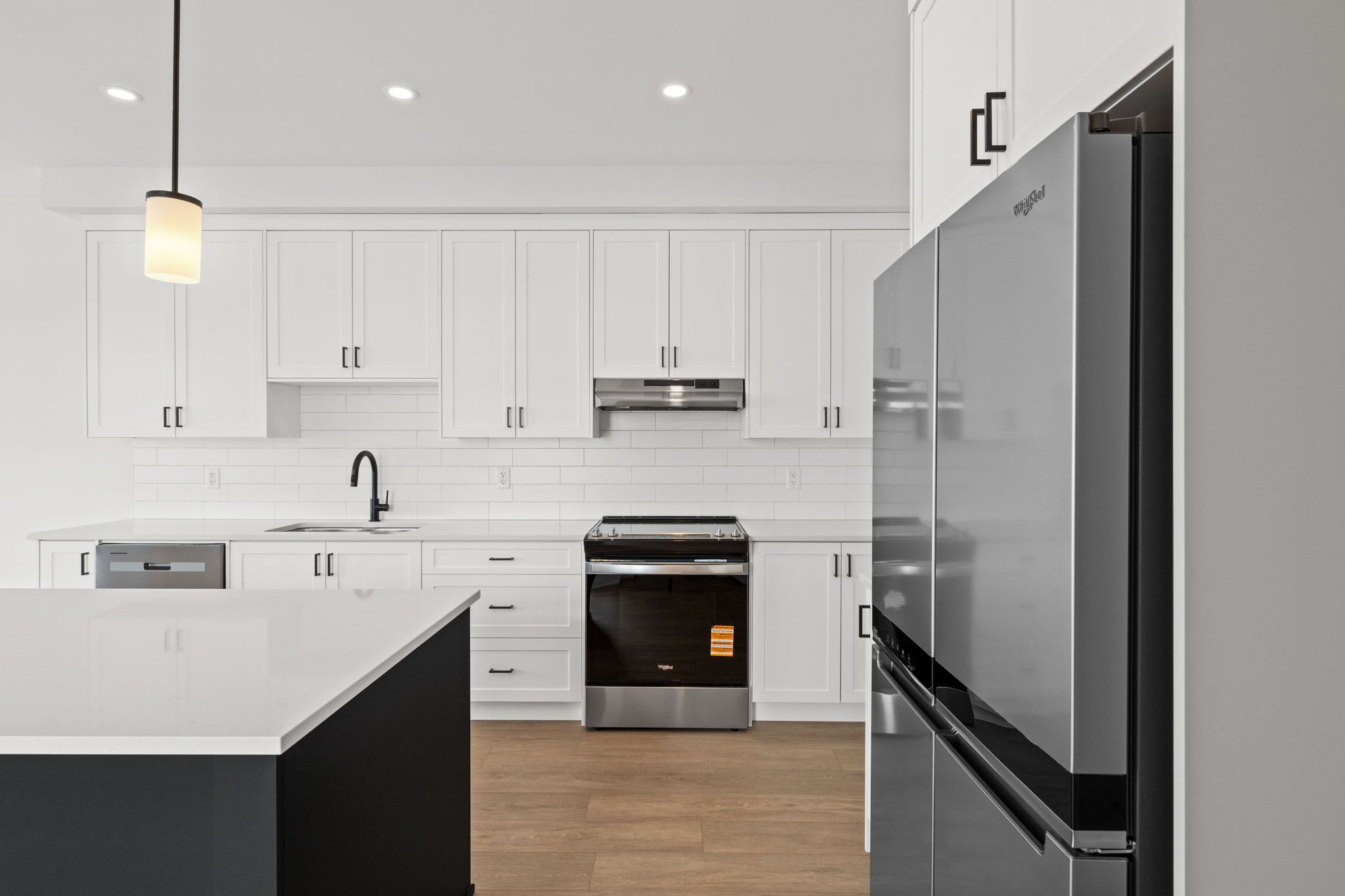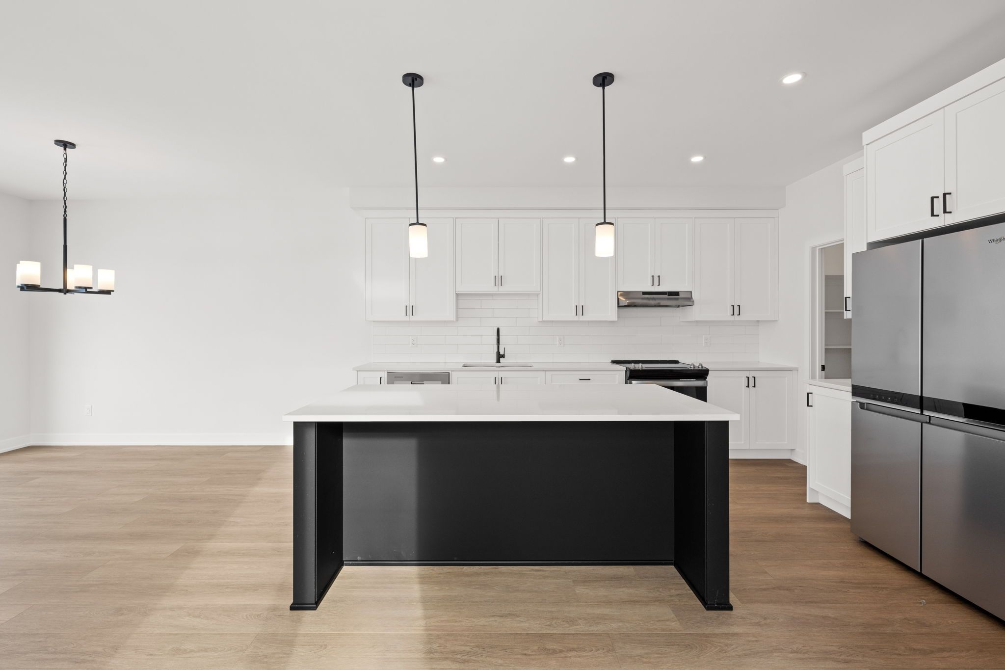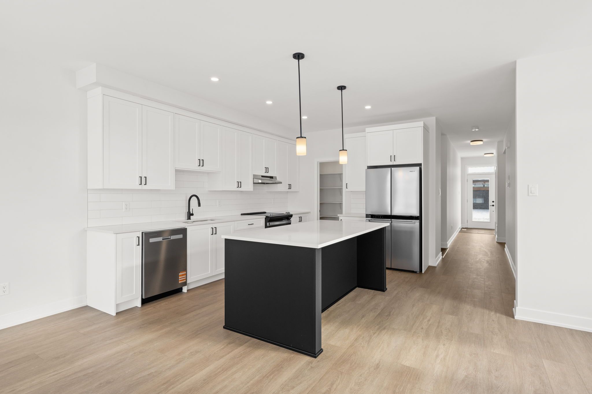 • Stylish kitchen with quartz countertops, pantry, and center island.