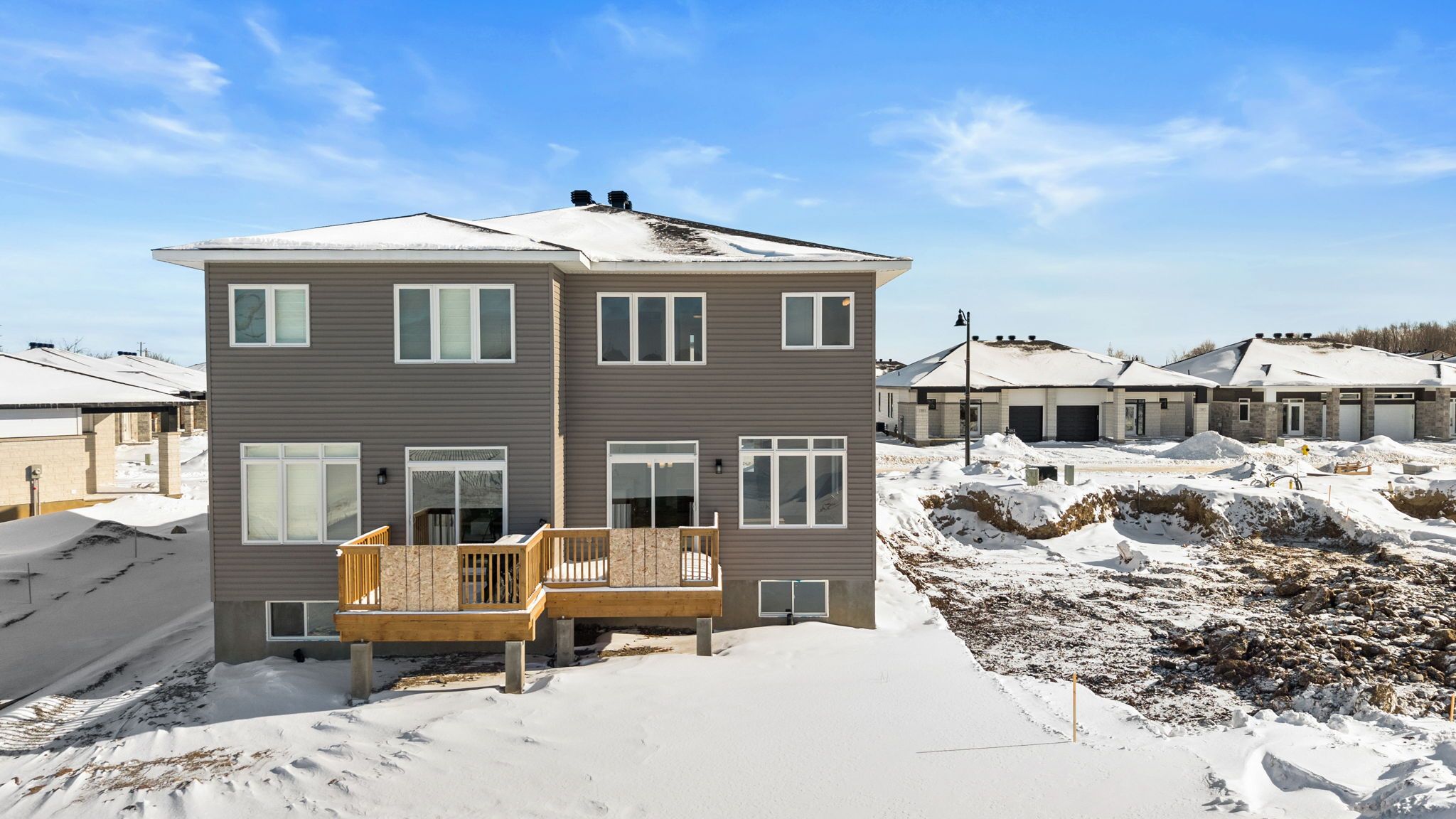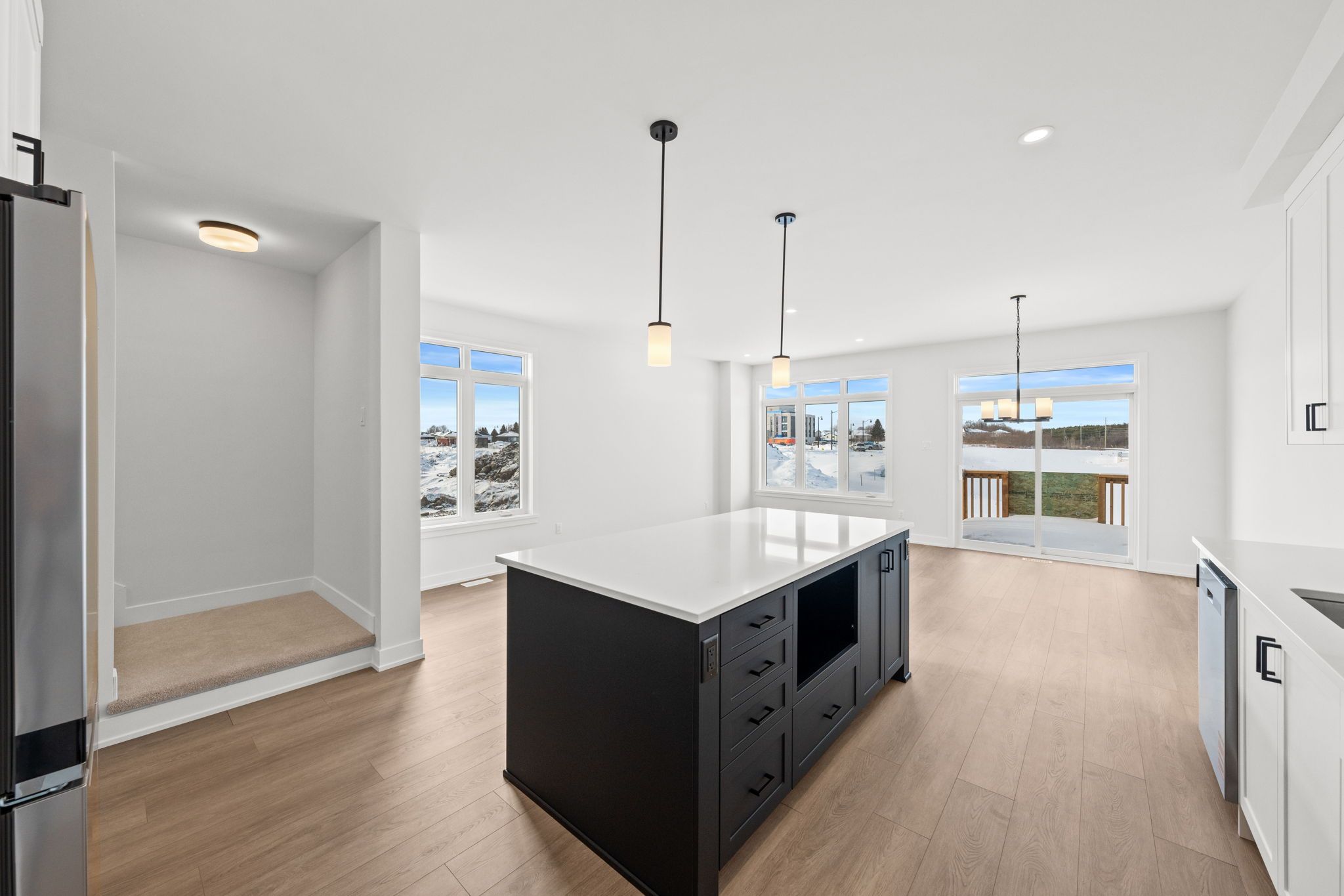 Welcome to stirling meadows in brockville. This newly built semi-detached, two-storey rockport model by mackie homes offers approximately 1,879 square feet of thoughtfully designed living space, featuring four bedrooms, three bathrooms, and quality finishes throughout. The main level is bright and inviting, with an open floor plan that seamlessly connects the living areas. The modern kitchen includes ample storage and workspace, with a pantry for extra storage, quartz countertops, and a centre island that serves as a natural gathering spot. It opens to the conversation area, dining room, and great room, which provides direct access to the exterior sundeck and backyard. Upstairs, the primary bedroom boasts a walk-in closet and a 4-piece ensuite with dual sinks. Three additional bedrooms, a full bathroom, a linen closet, and a convenient laundry room complete the second level. Ideally located near shopping, dining, and recreation, with quick access to highway 401, this home offers comfort, convenience, and modern living in a move-in-ready package.