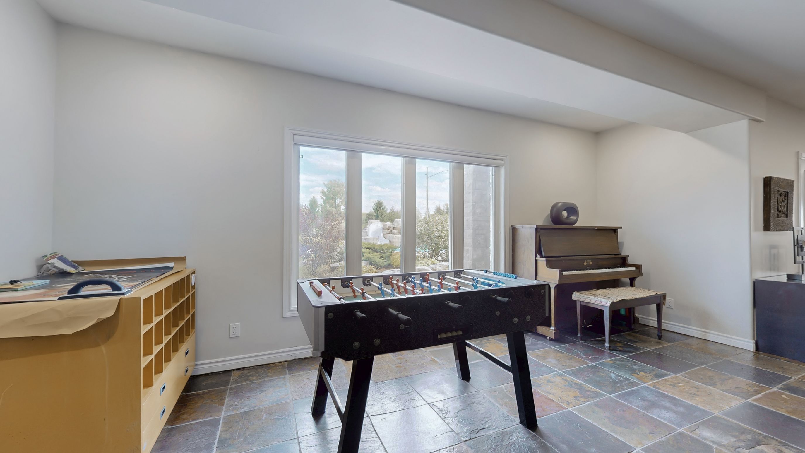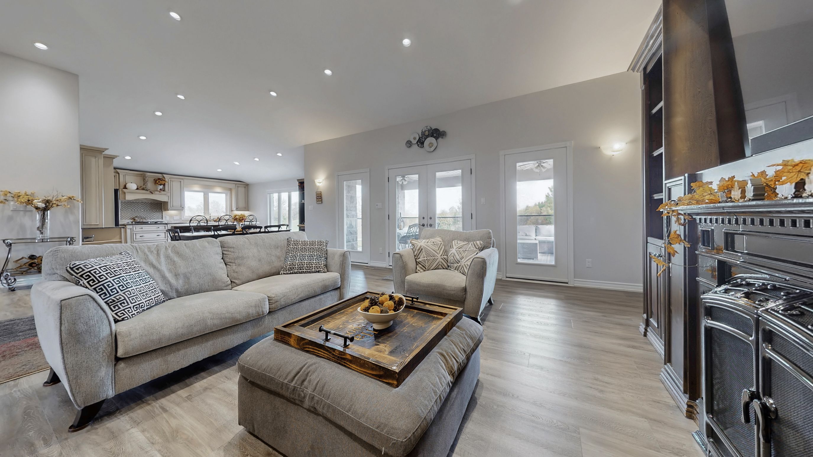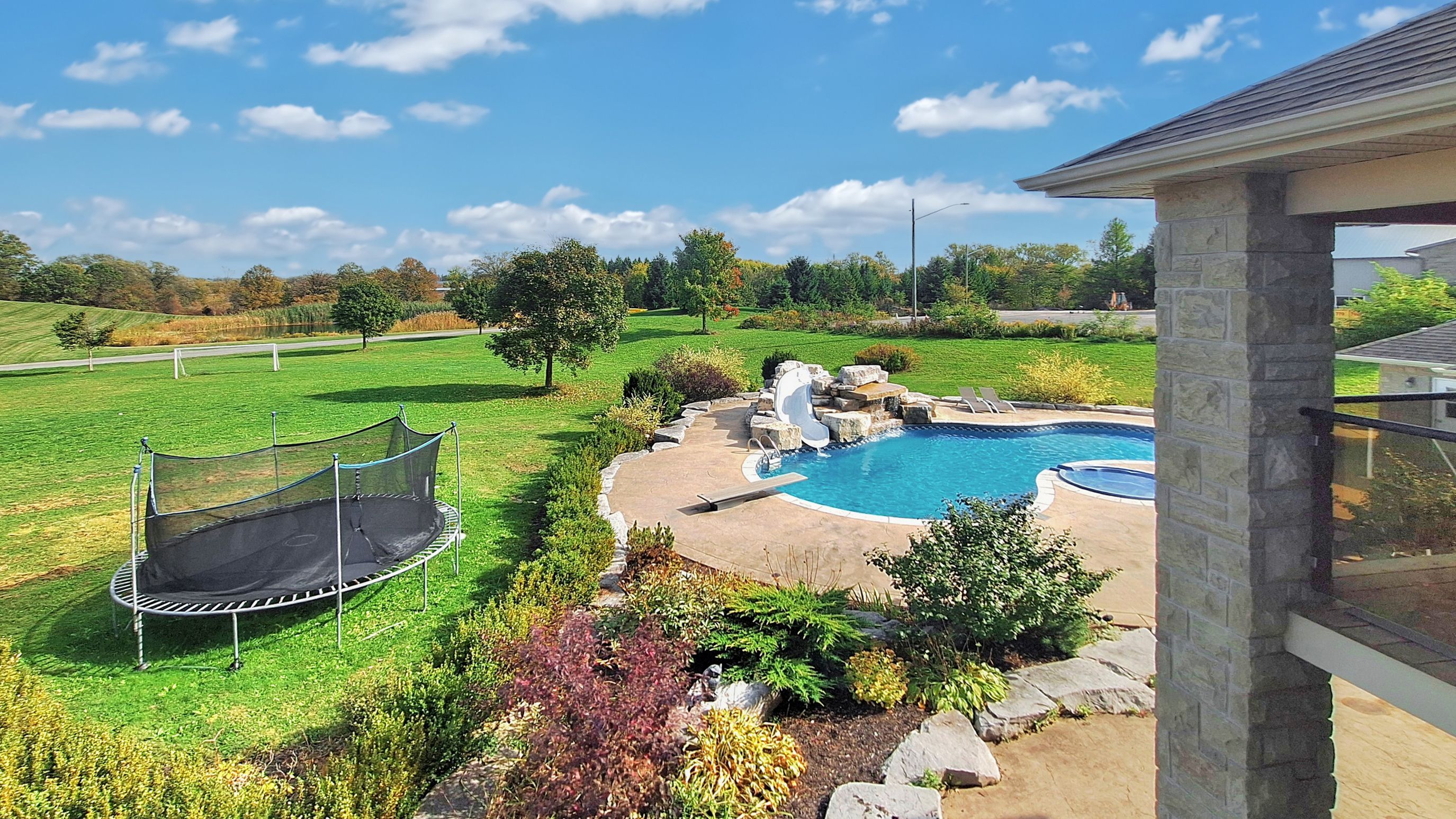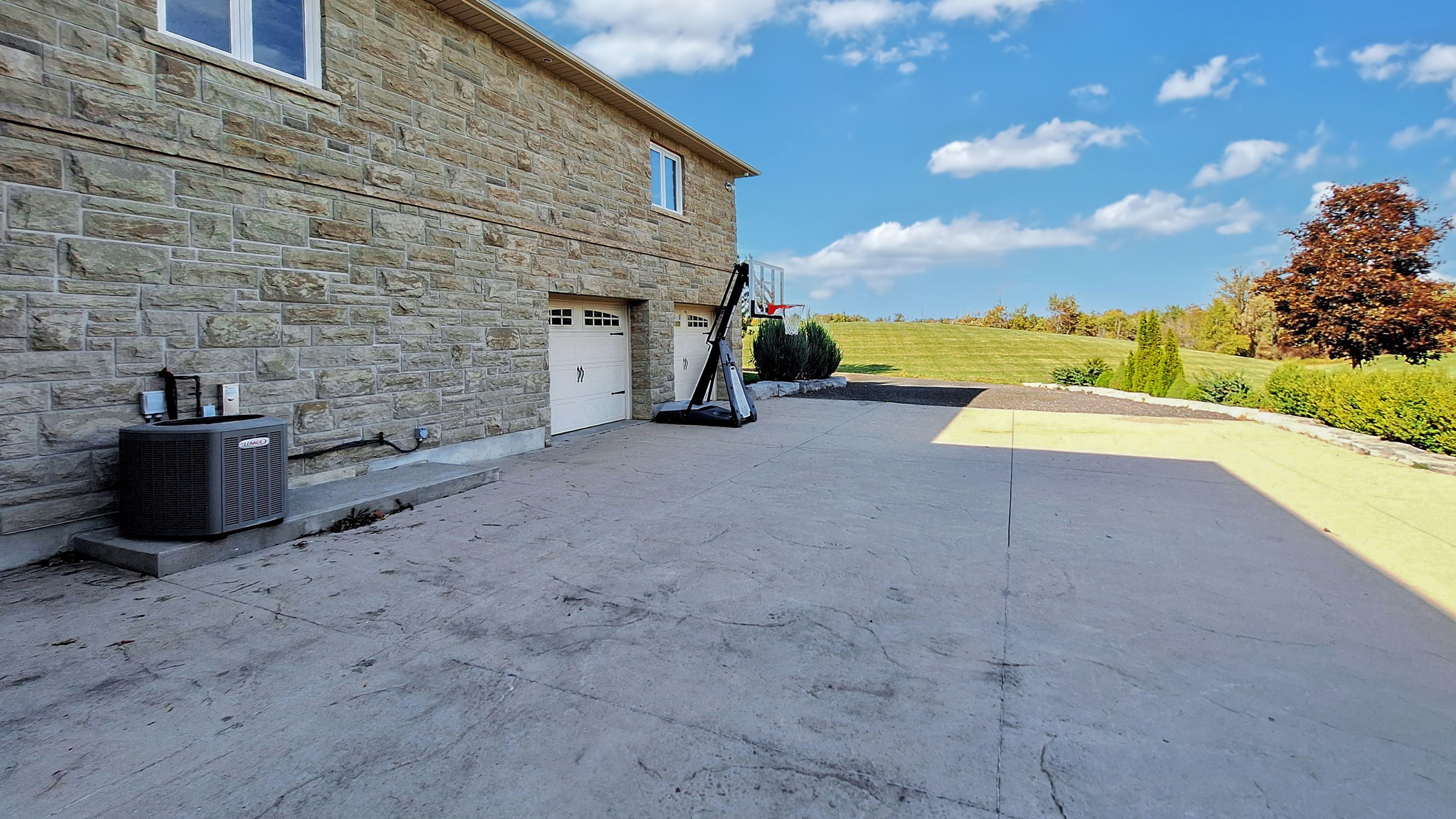 A long private driveway leads through rolling acreage to a rare, commercially zoned estate property offering a unique opportunity to operate a full-scale business onsite while enjoying luxury residential living. Situated on nearly 28 acres, this property is ideal for contractors, trades, logistics, or business owners requiring extensive storage, workspace, and privacy. The property is zoned for a contractor's yard, a designation that is increasingly difficult to secure. It features approximately 25,000 sq. Ft. Of outdoor storage, a 6,500 sq. Ft. Heated indoor garage/workshop with radiant floor heating, and substantial second-level office space, allowing for seamless business operations. Ample parking accommodates fleet vehicles, equipment, and staff while maintaining separation from the residence. A 1,200 sq. Ft. One-bedroom apartment above the workshop provides ideal accommodations for a site manager, employee housing, or additional income potential. The residential component includes a custom stone bungalow offering executive living for owners or principals. The home features open-concept living, vaulted ceilings, a bright great room with walk-out to a covered lanai, and renovated main-floor bathrooms. The main level includes three bedrooms, while the finished walk-out basement adds two additional bedrooms, a large recreation area, fireplace, bar, and entertaining space. Outdoor amenities include a saltwater pool, hot tub, waterfall, and poolside bar, ideal for executive use or client entertaining. A two-level 6-car garage provides further flexibility for storage, showroom, or gym conversion. The property is equipped with radiant floor heating, central a/c, surround sound, and multiple gas fireplaces. Conveniently located west of hwy 27 and north of hwy 9, minutes to schomberg, this exceptional offering delivers legal commercial zoning, turnkey infrastructure, and lifestyle appeal in one unmatched property.