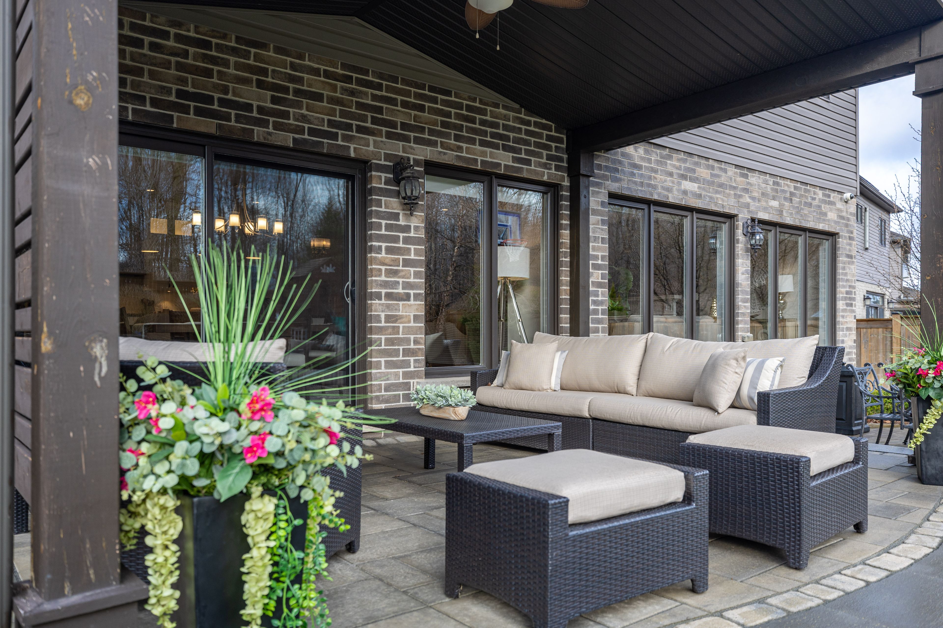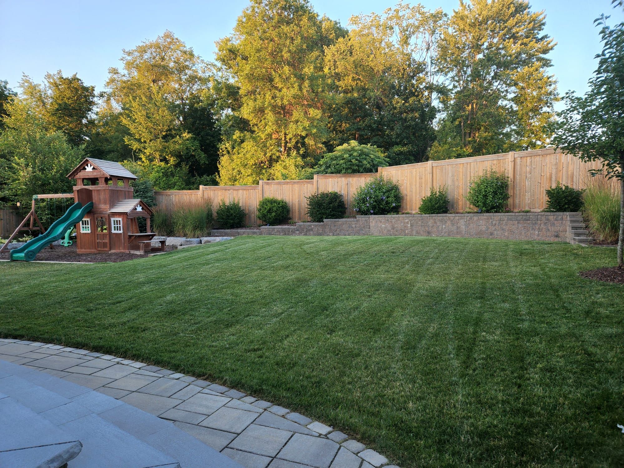 • Professionally landscaped backyard with a paver stone patio and irrigation system.