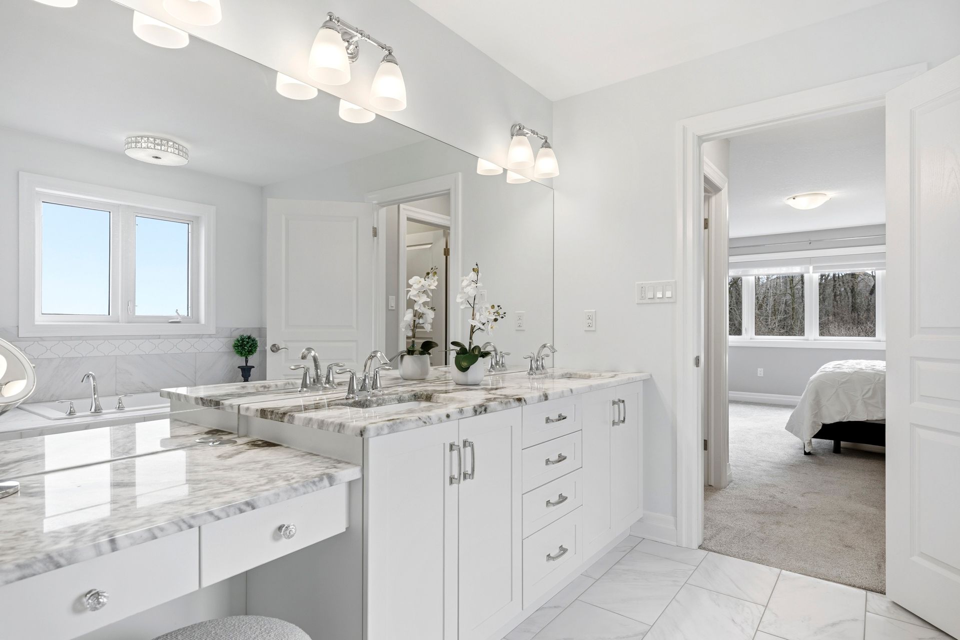 Welcome to this stunning two-storey home built by sifton, offering over 3,800 sqft of beautifully finished living space and backing onto the serene hickory woods and scenic walking trail. Nestled in the highly sought-after riverbend community, this prime location puts you within walking distance to the vibrant west five district, parks, warbler woods, and just a short distance to springbank park. Designed with both functionality and elegance in mind, this home features a rare five-bedroom layout on the second floor-ideal for growing families or those needing additional above-grade living space, such as a second family room. The main floor showcases a private office with double doors, along with a bright and open-concept living, dining, and kitchen area that's perfect for entertaining. The chef-inspired kitchen is a standout, complete with ceiling-height custom cabinetry, quartz countertops, and an impressive 9-foot island. The dining area overlooks the beautifully landscaped backyard through sliding patio doors, while the living room boasts a cozy gas fireplace and an expansive wall of windows that flood the space with natural light. Upstairs, the primary bedroom offers a peaceful retreat with picturesque views of the backyard and forest, dual walk-in closets, and a luxurious 5-piece ensuite. The finished lower level adds even more living space, featuring a large recreation room with oversized windows, a sixth bedroom, a full bathroom, and ample storage. Step outside to your professionally landscaped backyard, complete with an irrigation system and a stylish paver stone patio-perfect for summer entertaining or simply enjoying the tranquil natural surroundings. This is a rare opportunity to own a spacious, thoughtfully designed home in one of riverbend's most desirable locations. A bonus for families is the new riverbend public school that is currently under construction and set to open in 2027, which helps to make the morning commute to school that much more convenient