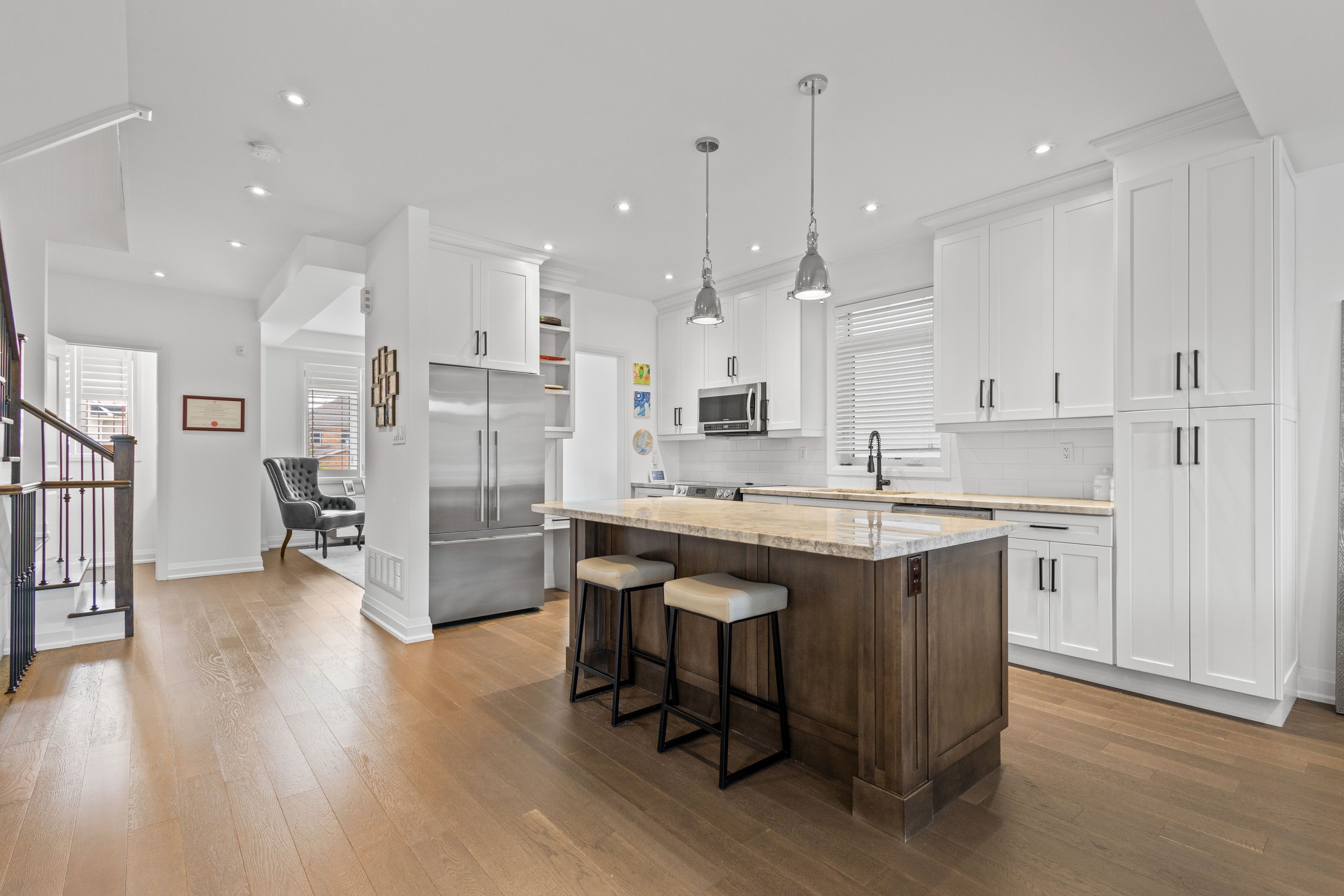 • Open-concept main floor with 9-foot ceilings and large windows for natural light.