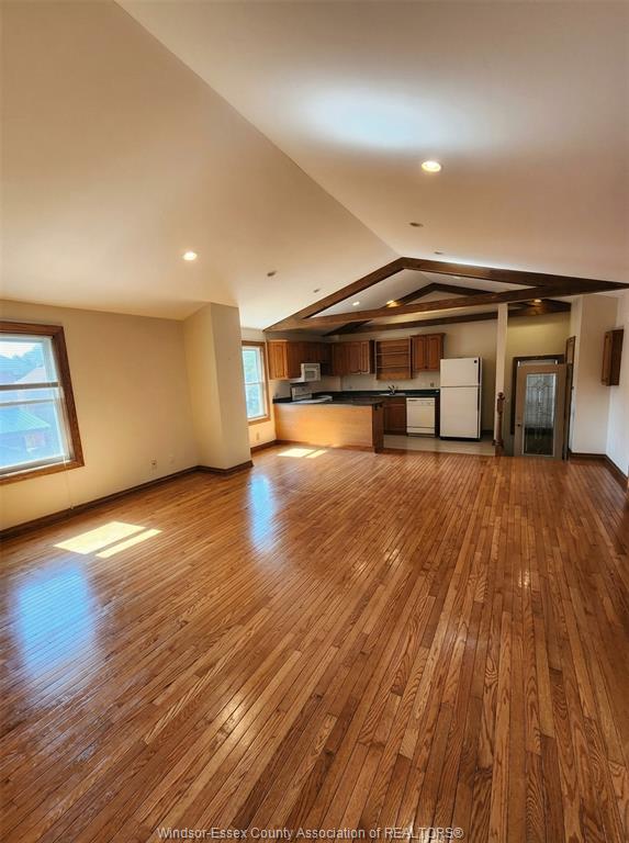• Open upper level space with hardwood flooring and kitchenette.