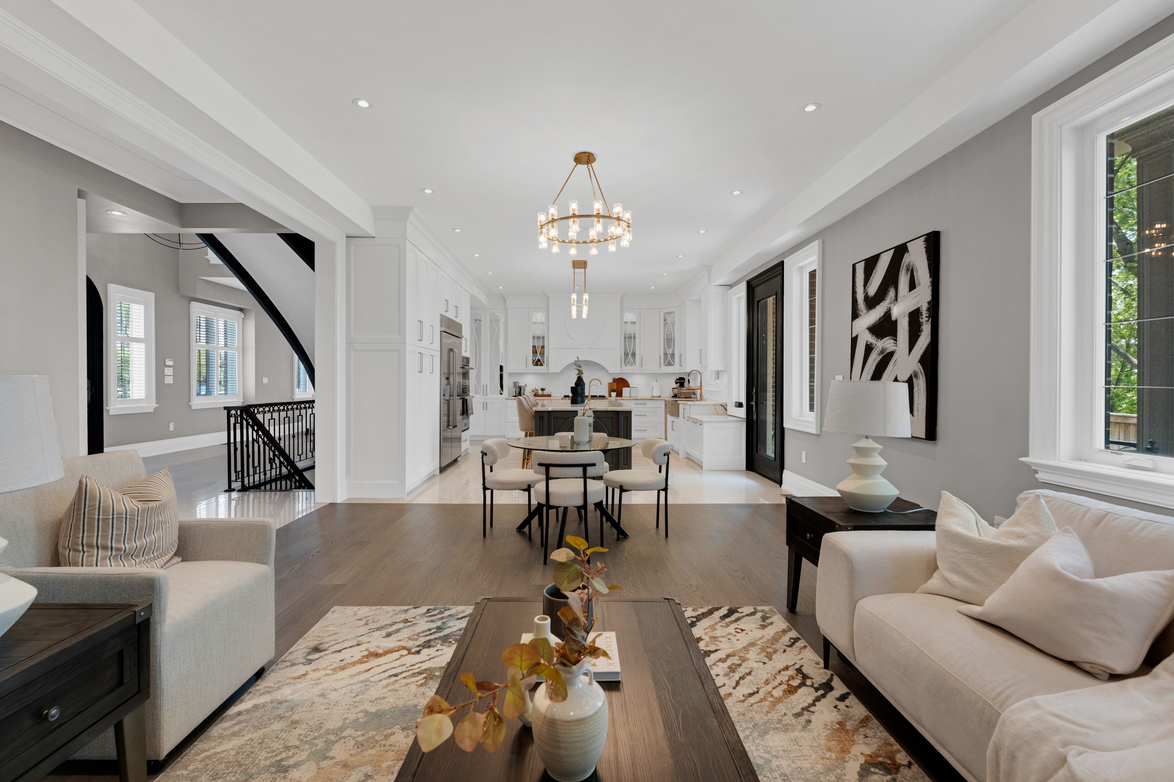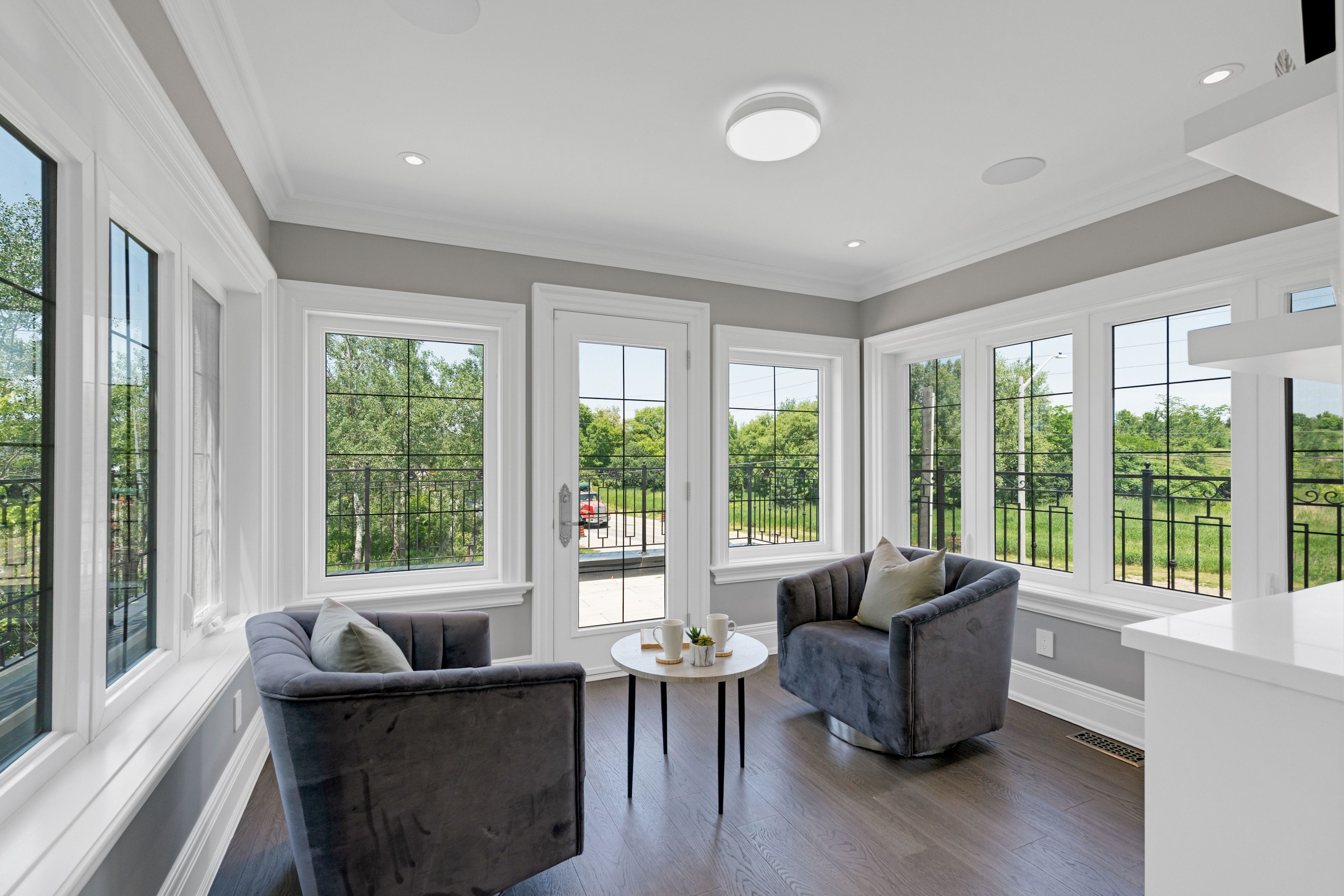 Welcome to this custom-built masterpiece completed in 2021, nestled in the heart of prestigious kleinburg village. Offering over 6,000 square feet, this residence blends contemporary design, functional living, and boutique luxury seamlessly. Grand open-concept layout, where natural light pours in through oversized windows, illuminating the elegant engineered hardwood floors and refined millwork throughout. The chef-inspired kitchen is the centerpiece of the main floor, featuring top-of-the-line jennair professional appliances, an impressive 6-burner gas cooktop, built-in wall oven, integrated fridge and freezer, and a large waterfall island that invites both casual family gatherings and upscale entertaining. The open family room flows effortlessly from the kitchen, highlighted by a sleek gas fireplace and custom feature wall, while the formal dining area offers an elegant space for hosting. A private main-floor office creates the perfect work-from-home environment, complemented by a stylish powder room that completes the main level. The second level offers three spacious bedrooms, each thoughtfully designed with their own ensuite finished with spa-like details and custom tile work. The primary suite is a true retreat, featuring a large walk-in closet with built-in organizers and a stunning ensuite complete with a freestanding soaker tub, glass-enclosed shower, double vanity, and high-end designer finishes. An open balcony office area offers a beautiful overlook to the lower level, providing additional flexible space for reading, study, or a second work station. The third-floor loft adds another layer of versatility to the home, offering a full bedroom and additional bathroom that is perfect for extended family, guests, or a private gym or studio. The fully finished lower level second kitchen, spacious recreation area, additional bedroom and full bath, plus a separate entrance ideal for multi-generational living, guest accommodations, or private rental income.