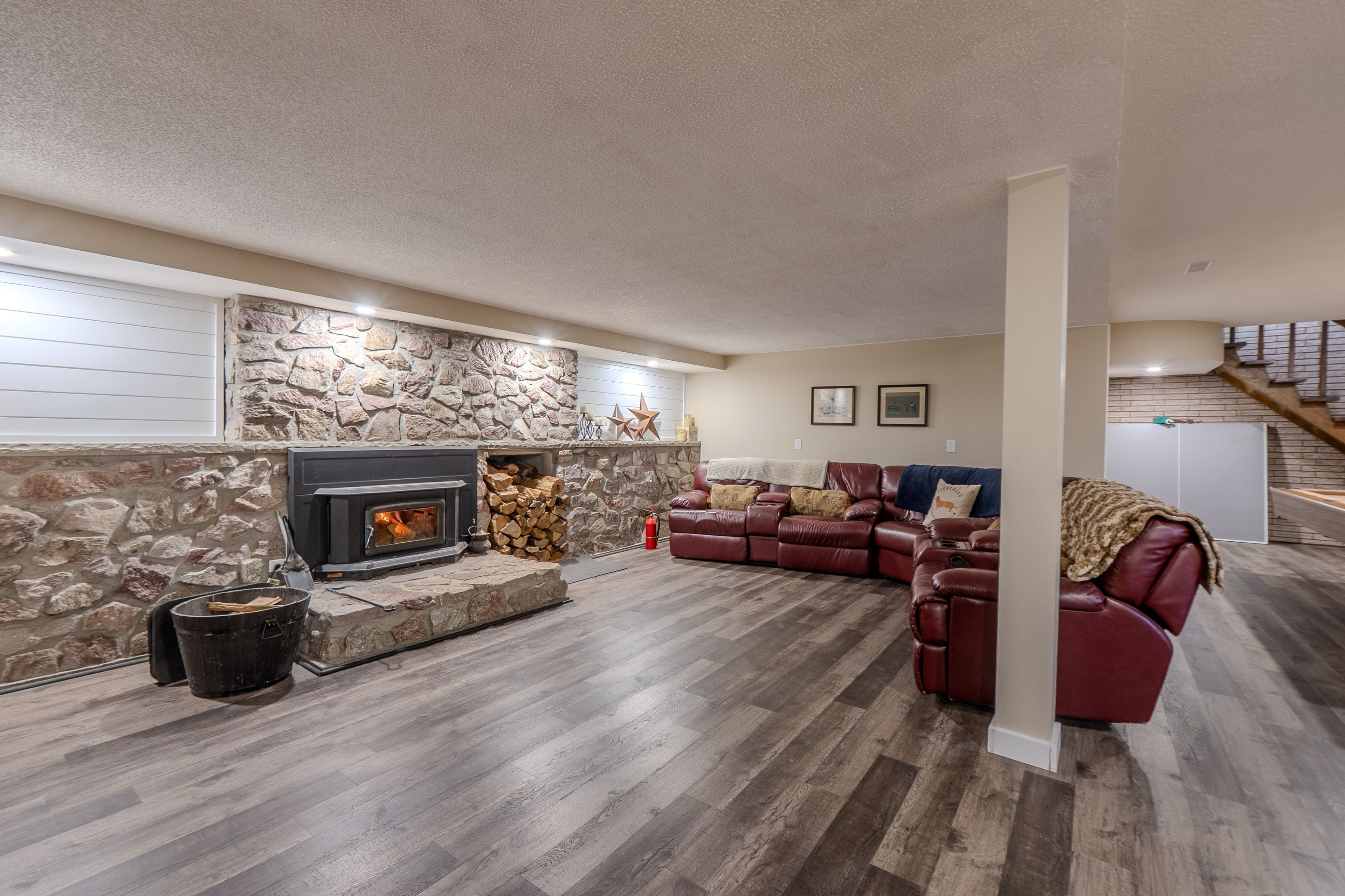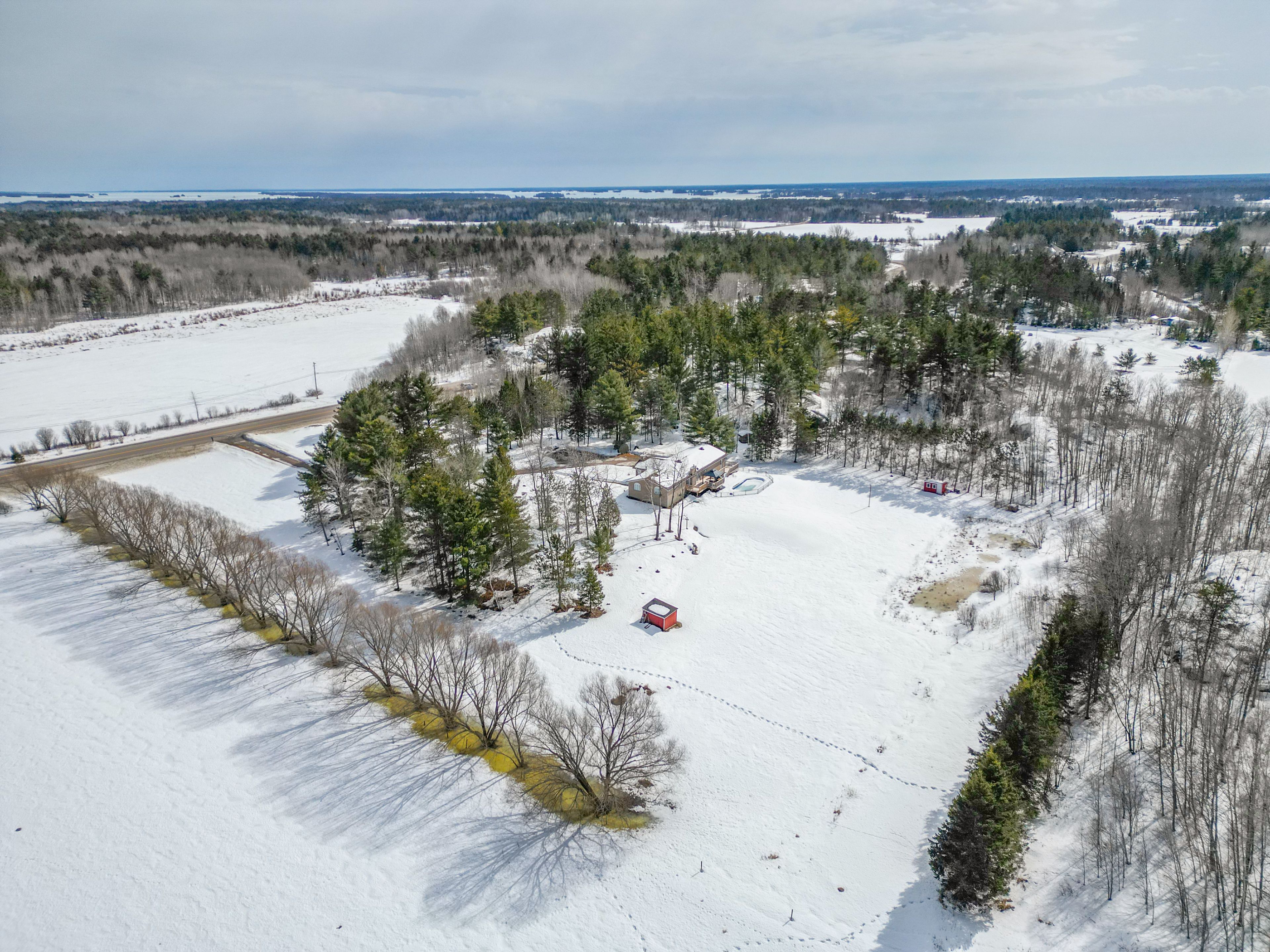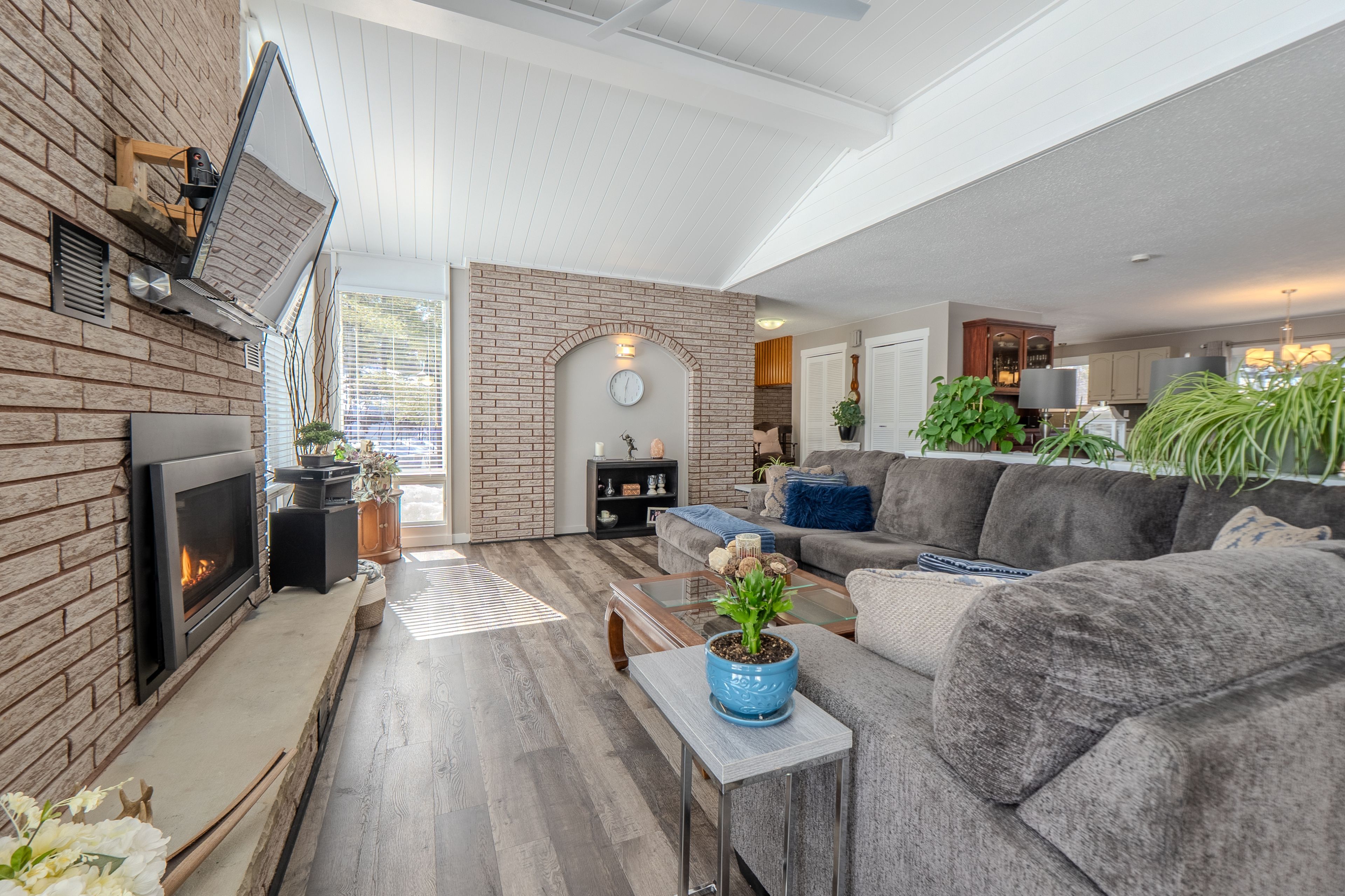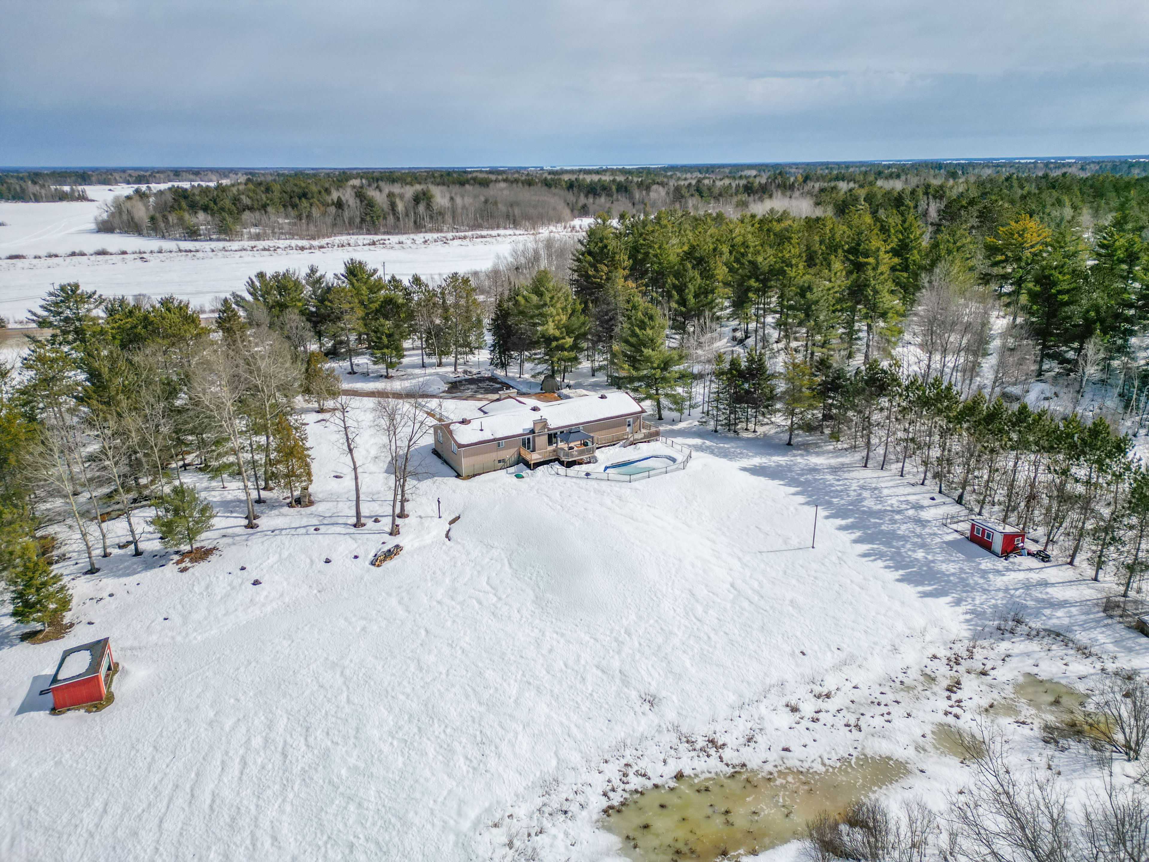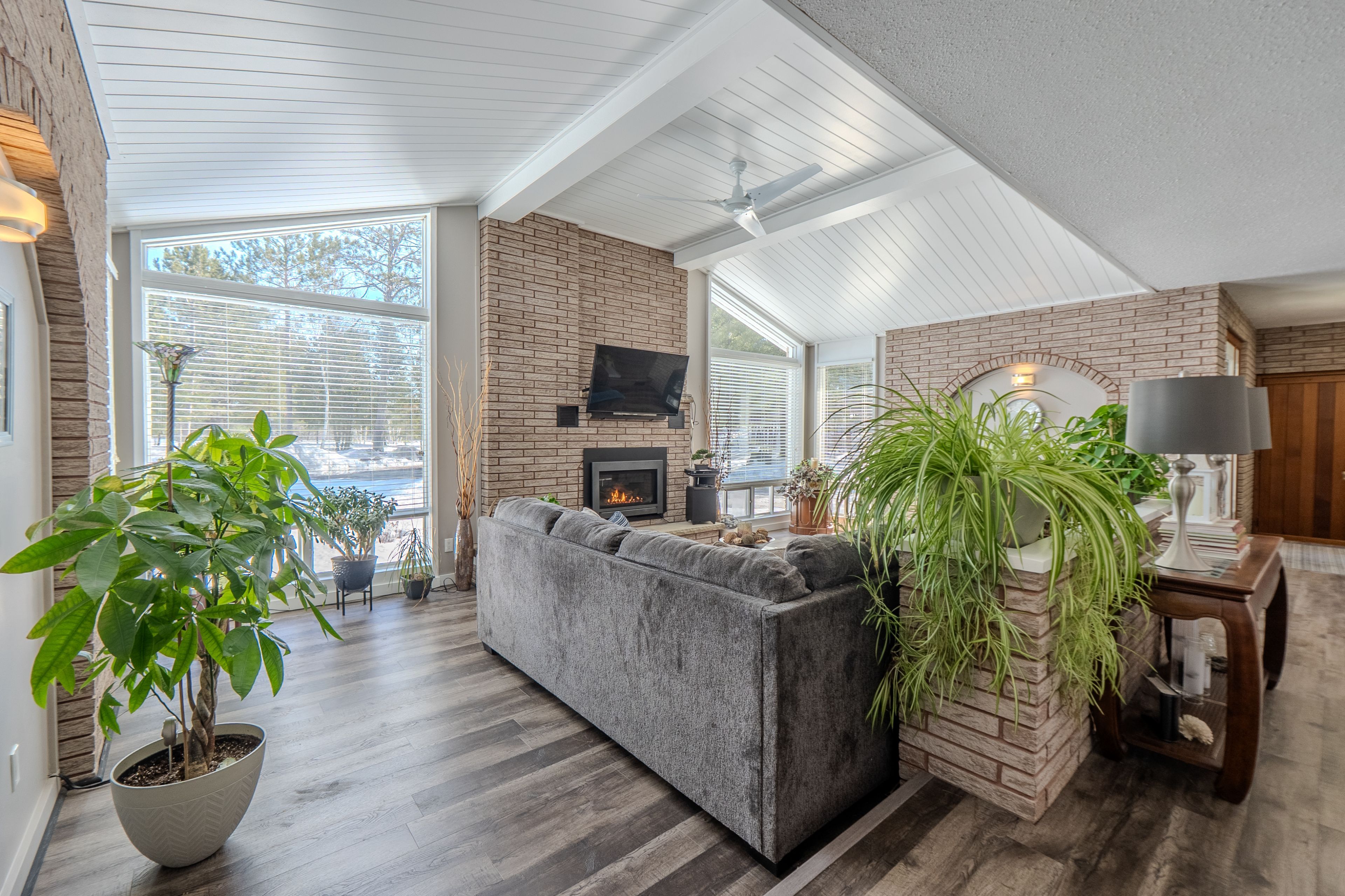 Escape to your own private 5. 6-acre country retreat on the peaceful outskirts of lavigne. This charming all-brick ranch-style bungalow offers the perfect blend of comfort, space, and natural beauty. Step into a bright and welcoming living room featuring vaulted ceilings and large windows that flood the home with natural light. The main level has been tastefully refreshed with new flooring, fresh paint, and updated bathrooms, giving the home a clean, modern feel. The open-concept kitchen and dining area create an ideal space for family living and entertaining, with garden doors leading to a spacious deck and gazebo - perfect for outdoor dining, relaxing, or enjoying the tranquil surroundings. The main floor features three comfortable bedrooms, including a generous primary suite complete with a private 3-piece ensuite. The full, partially finished basement adds valuable living space, offering a large recreation room with a cozy wood fireplace, a private office, and an expansive utility/workshop area with walkout access to the attached insulated double garage. Outside, enjoy summer days in the beautiful in-ground pool, surrounded by mature forest and open pastures. This exceptional property provides privacy, and the serenity of country living while still being close to local amenities. A true country oasis with room to relax, entertain, and enjoy nature.