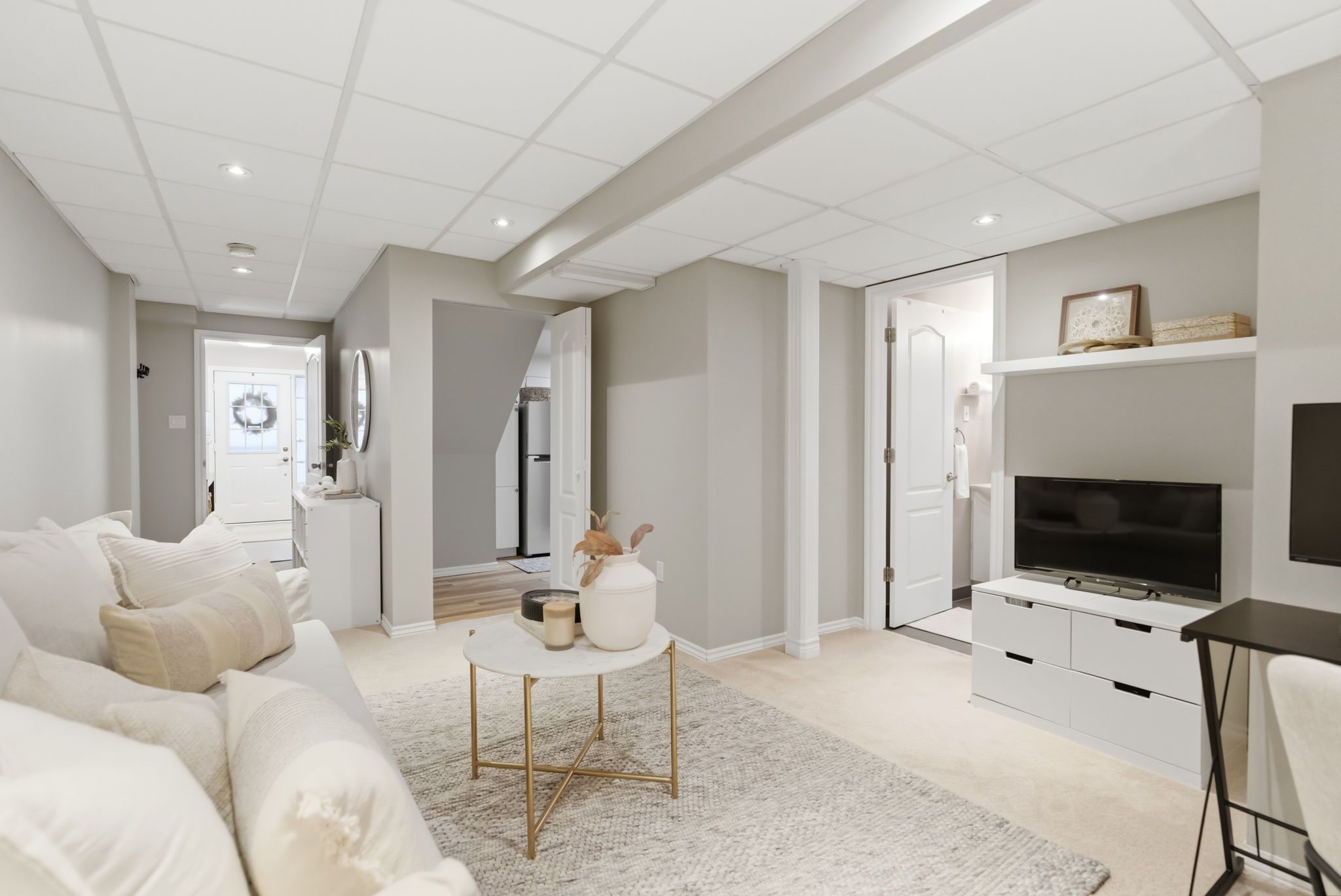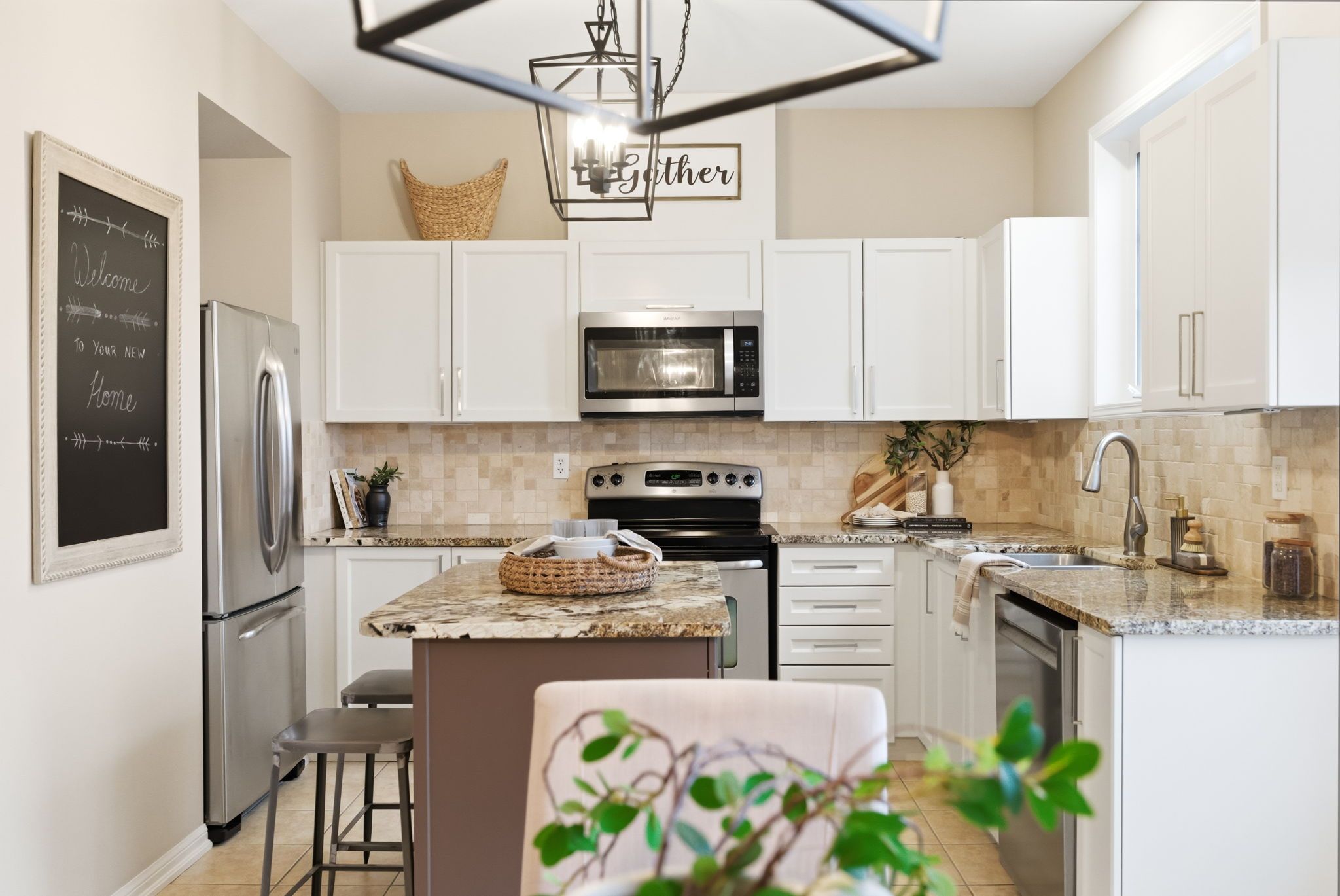 • Updated chef's kitchen features quartz counters and ample storage solutions.