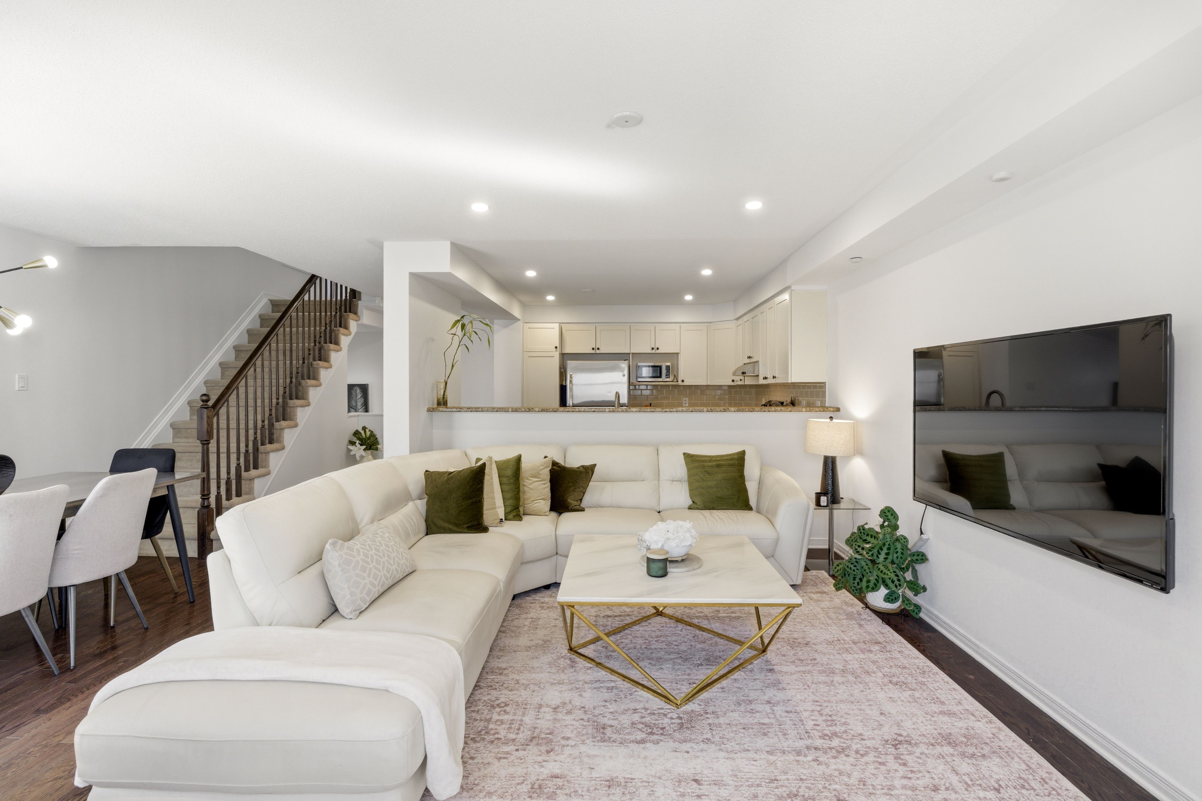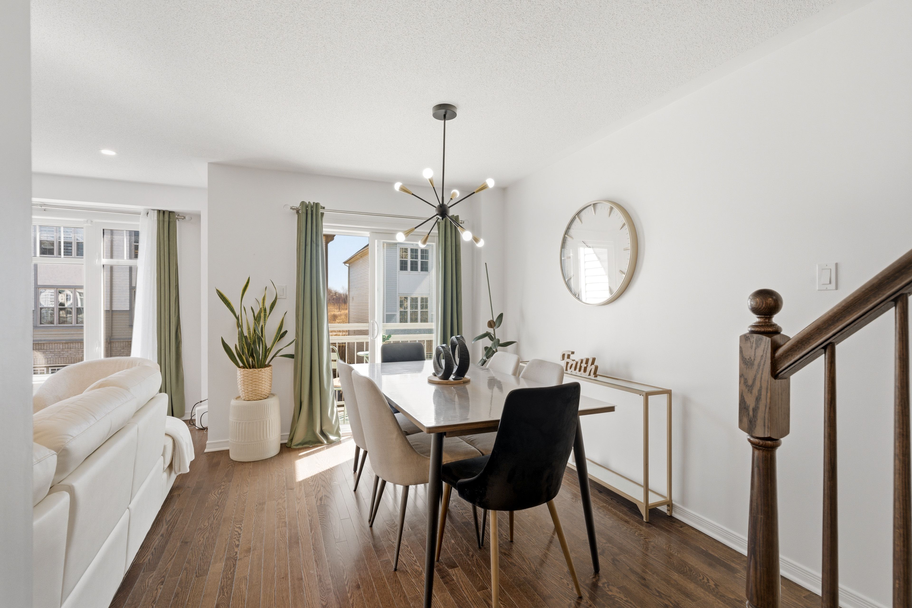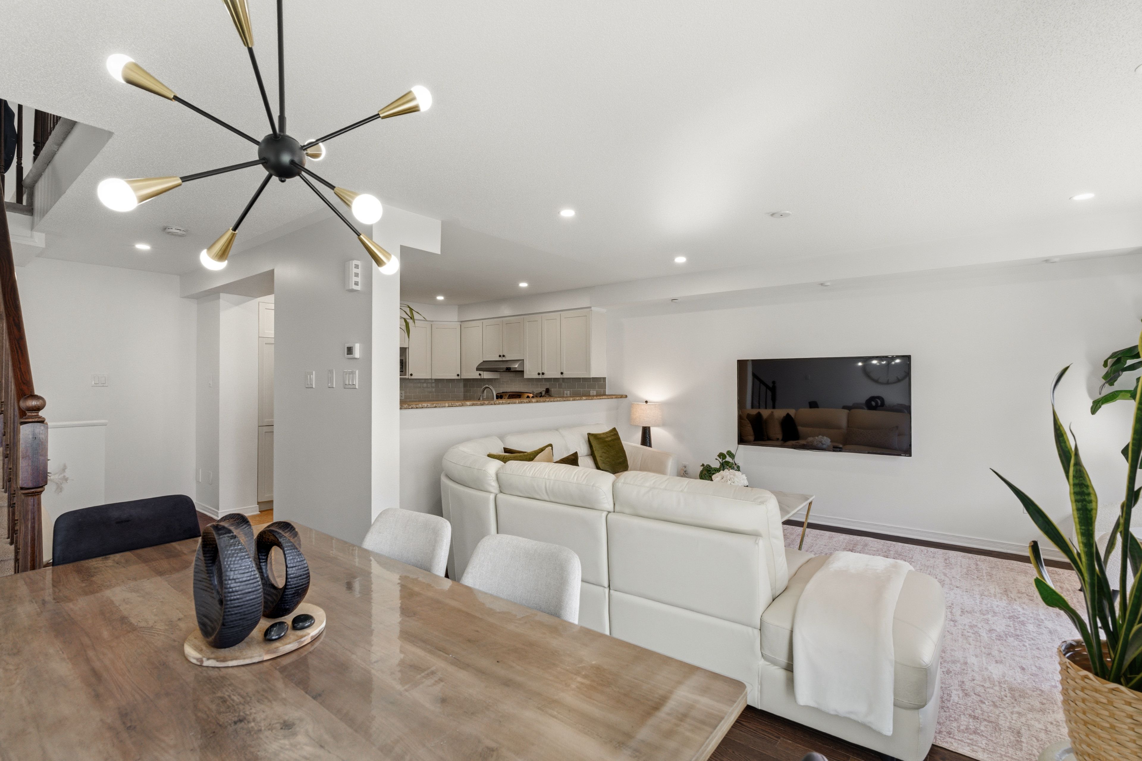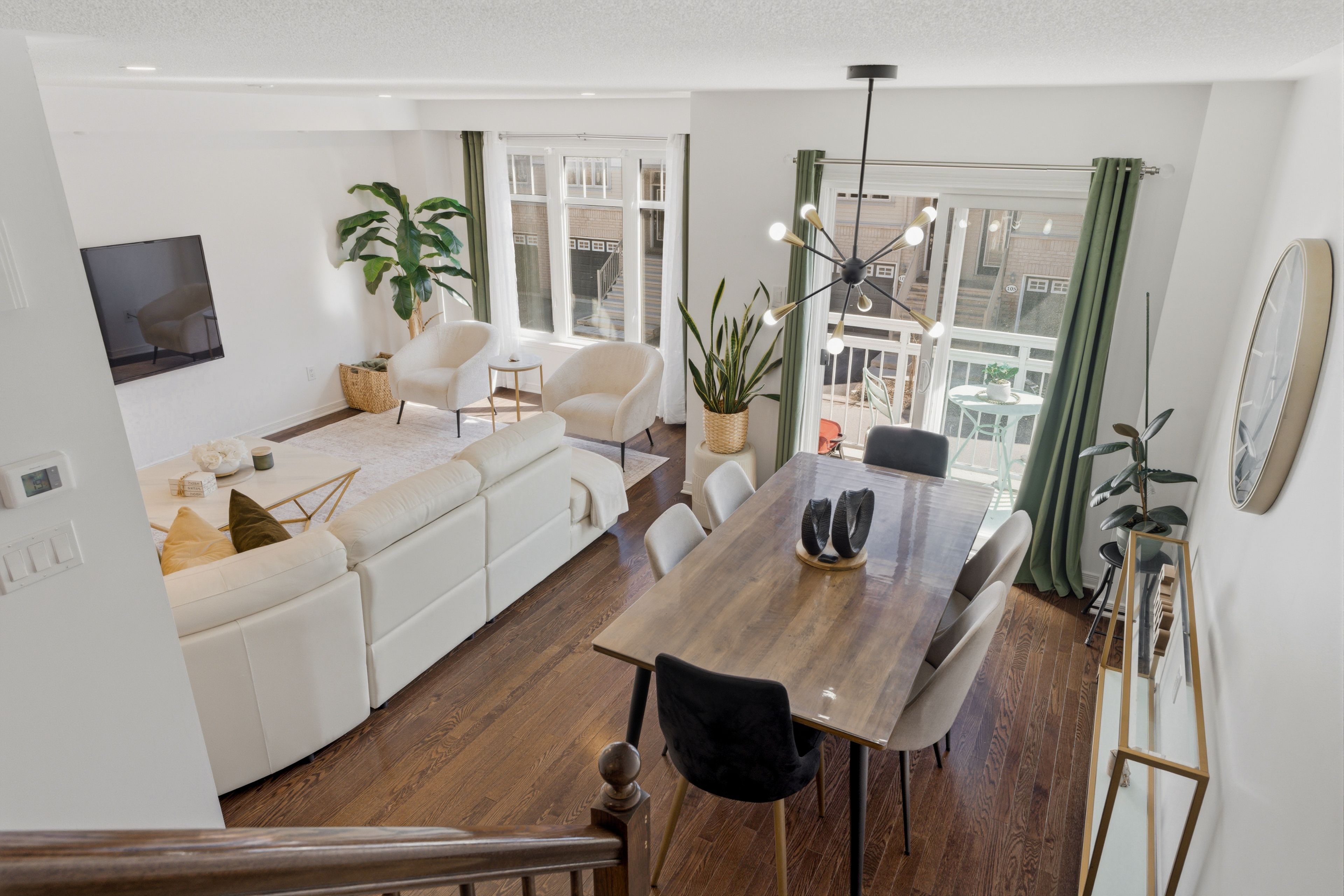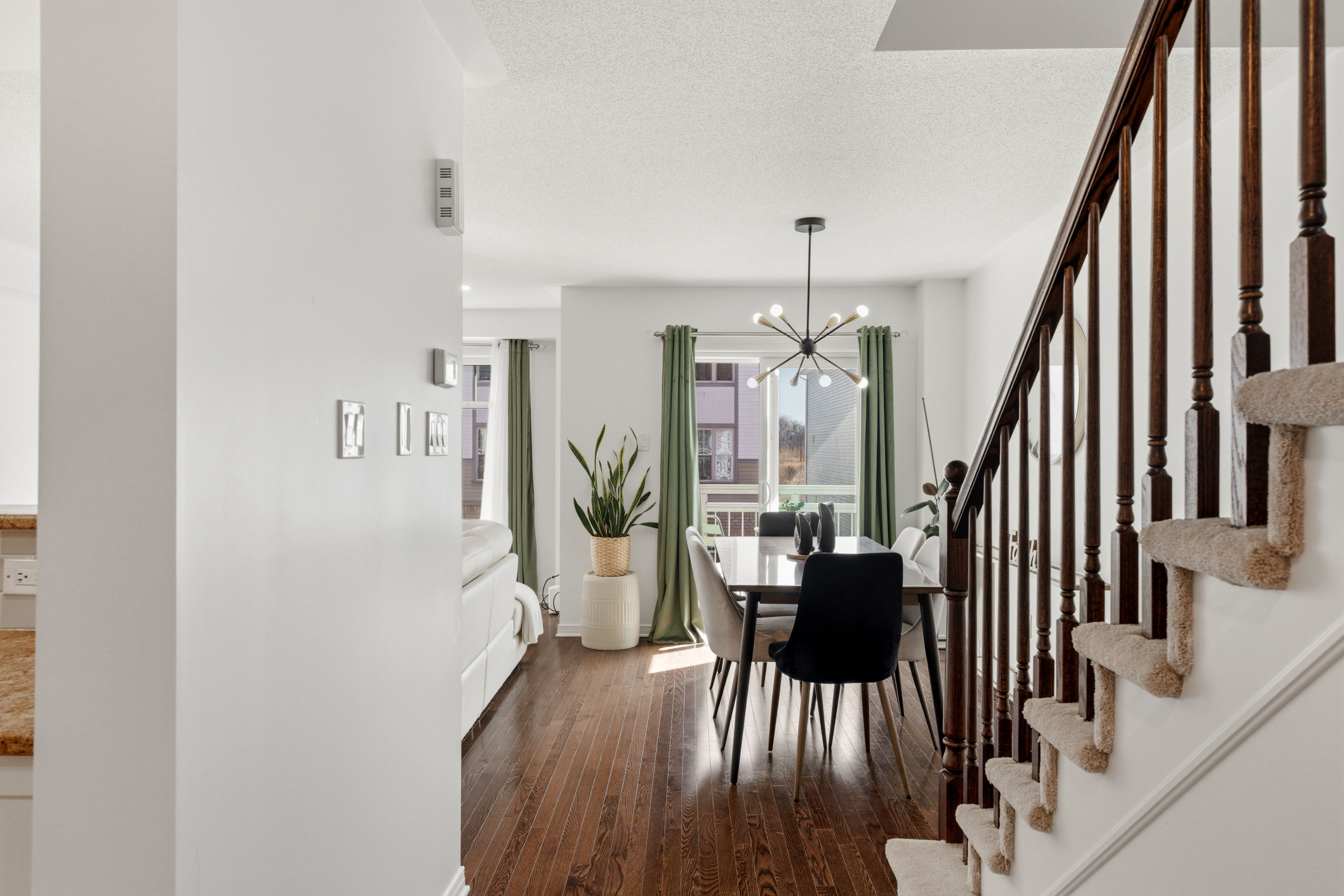 • Open-concept living and dining area with hardwood flooring.