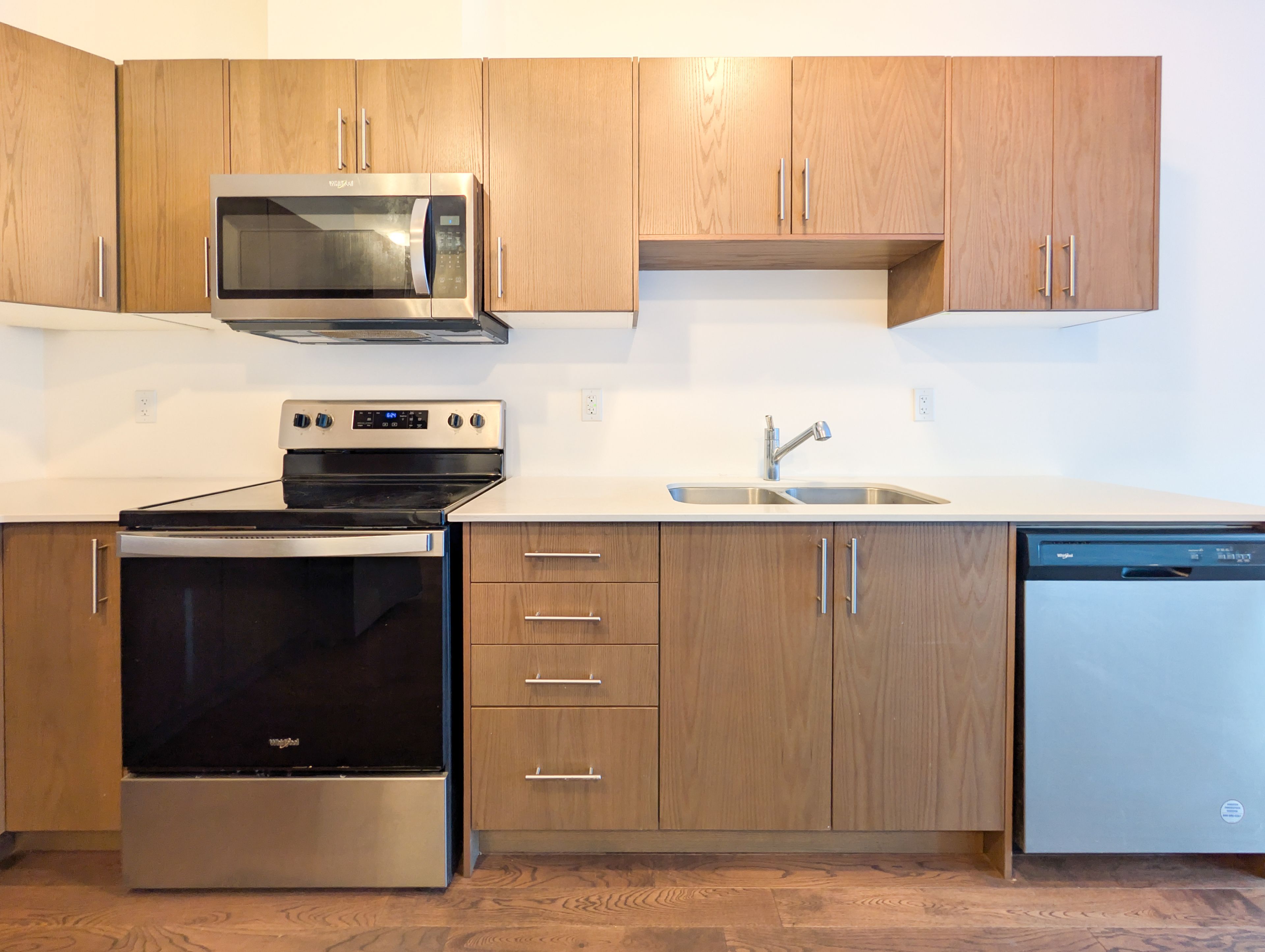 • High-end kitchen featuring stainless steel appliances and hardwood flooring.
