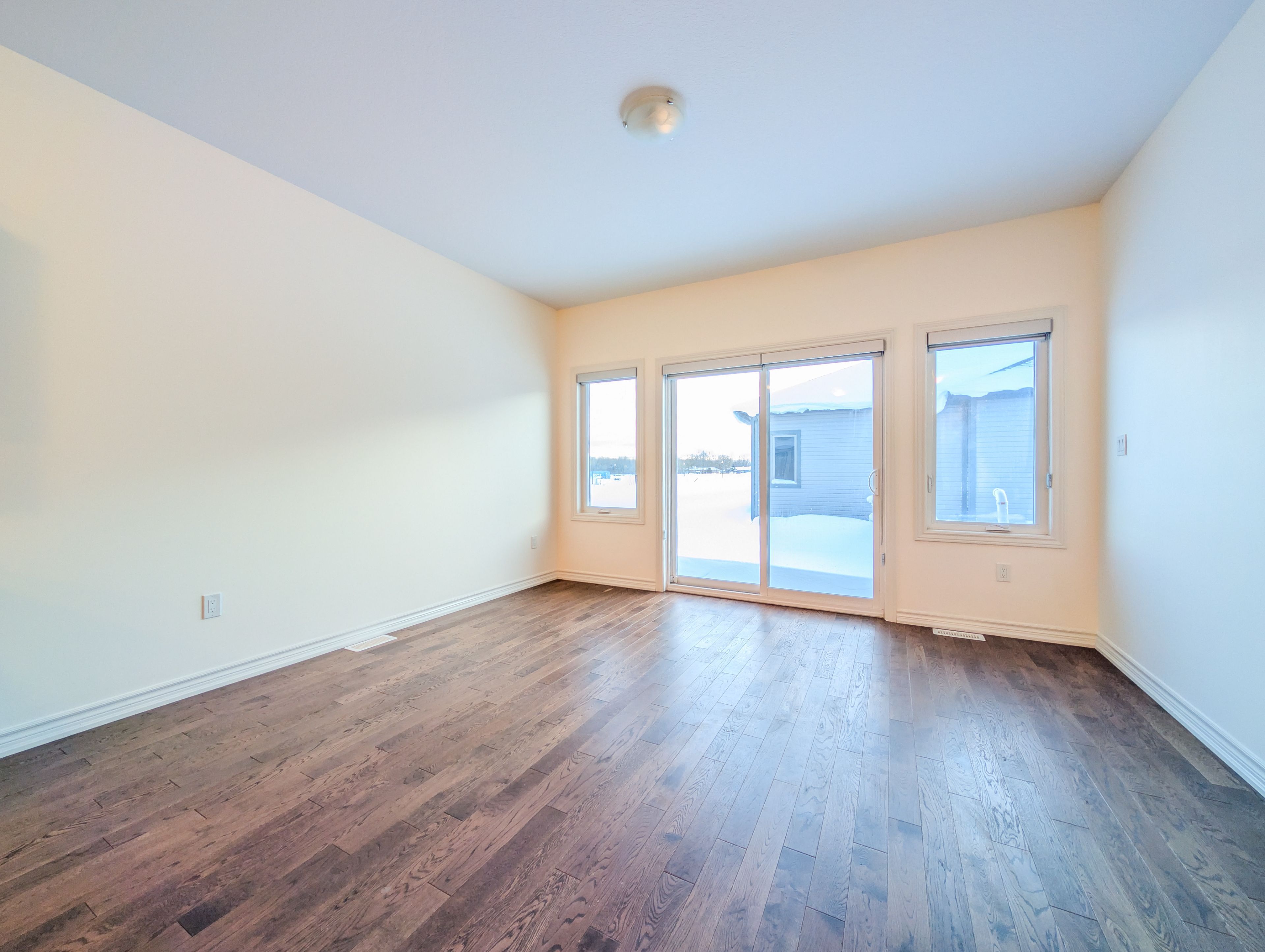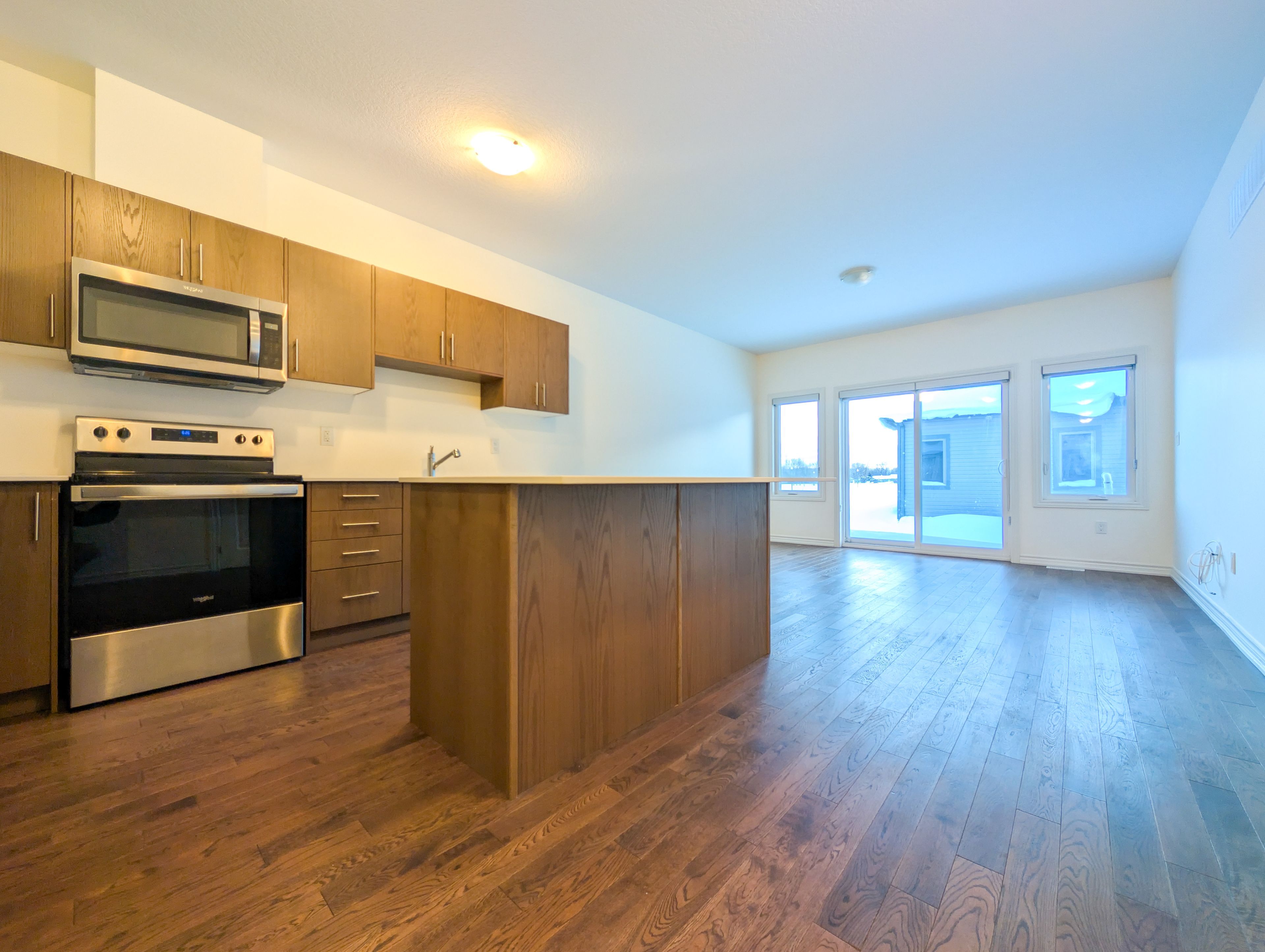 Introducing an exquisite bungalow townhome in the newly developed atwood community, showcasing an array of luxurious residences. This pristine home offers a fresh design with two generously sized bedrooms, two bathrooms, and an open concept layout that bathes the interior in abundant natural light. With 9 ft ceilings throughout, hardwood flooring, and a high-end kitchen boasting stainless steel appliances. The living room is a bright and airy space. This property also boasts a private backyard on a deep lot, affording picturesque views of a serene pond. Upgraded washrooms and a spacious basement with large windows and a bathroom rough-in add further allure to this remarkable home. Conveniently located just minutes away from parks, trails, schools, and in close proximity to listowel.