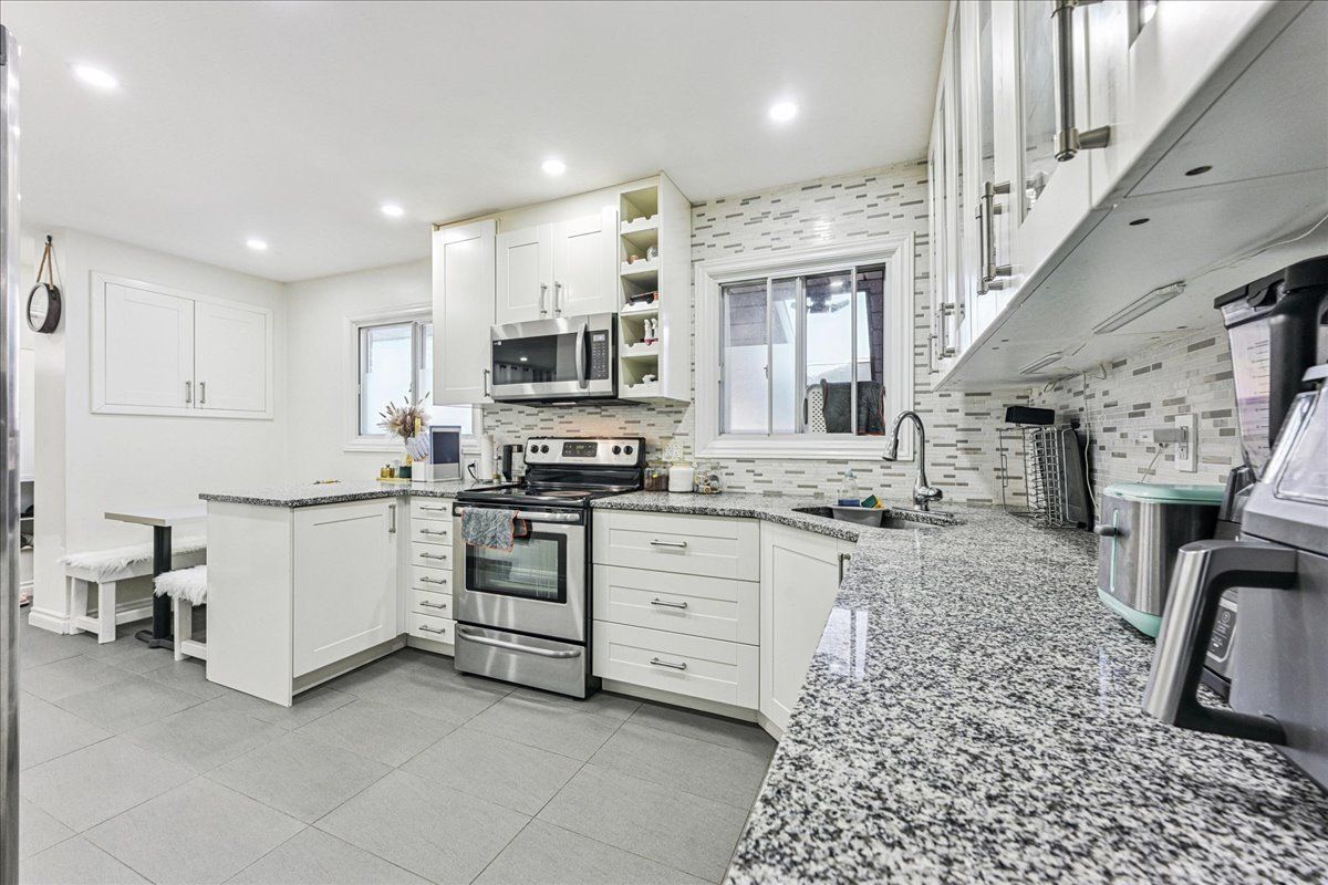 Extremely deceiving from the outside. With approximately 2,800 sq. Ft. Of total living space, there's room for everyone. This home offers 4 bedrooms, 3 bathrooms and a separate studio in-law suite. Step inside and prepare to be impressed-this beautifully updated bungalow offers far more than meets the eye. From the moment you enter, you're welcomed by a bright and spacious living room featuring gleaming hardwood floors, modern pot lighting, and an oversized picture window that fills the space with natural light. The stunning eat-in kitchen is designed for both style and function, showcasing abundant cabinetry, granite countertops, a built-in dining nook with bench seating, and stainless-steel appliances. The main level also offers two large bedrooms and an expansive spa-inspired bathroom complete with a freestanding tub and separate glass shower. Toward the back of the home, the floor plan opens into an airy dining area and a generous family room accented with hardwood flooring, pot lights, and a warm gas fireplace-an ideal setting for gatherings or quiet evenings in. This home provides exceptional versatility with two separate entrances to the lower level. A private side entrance leads to a self-contained in-law suite featuring its own kitchen, open living/bedroom layout with gas fireplace, and a 3-piece bathroom. The second staircase accesses two additional spacious bedrooms and another full 3-piece bath. Outside, enjoy a fully fenced backyard and ample parking with space for up to seven vehicles. Located in a quiet, family-friendly neighbourhood close to schools, parks, shopping, and major highways, this property offers both convenience and comfort. This is truly a home you must experience in person-its size, layout, and upgrades will surprise and delight you. Tenants would like to stay, if possible.