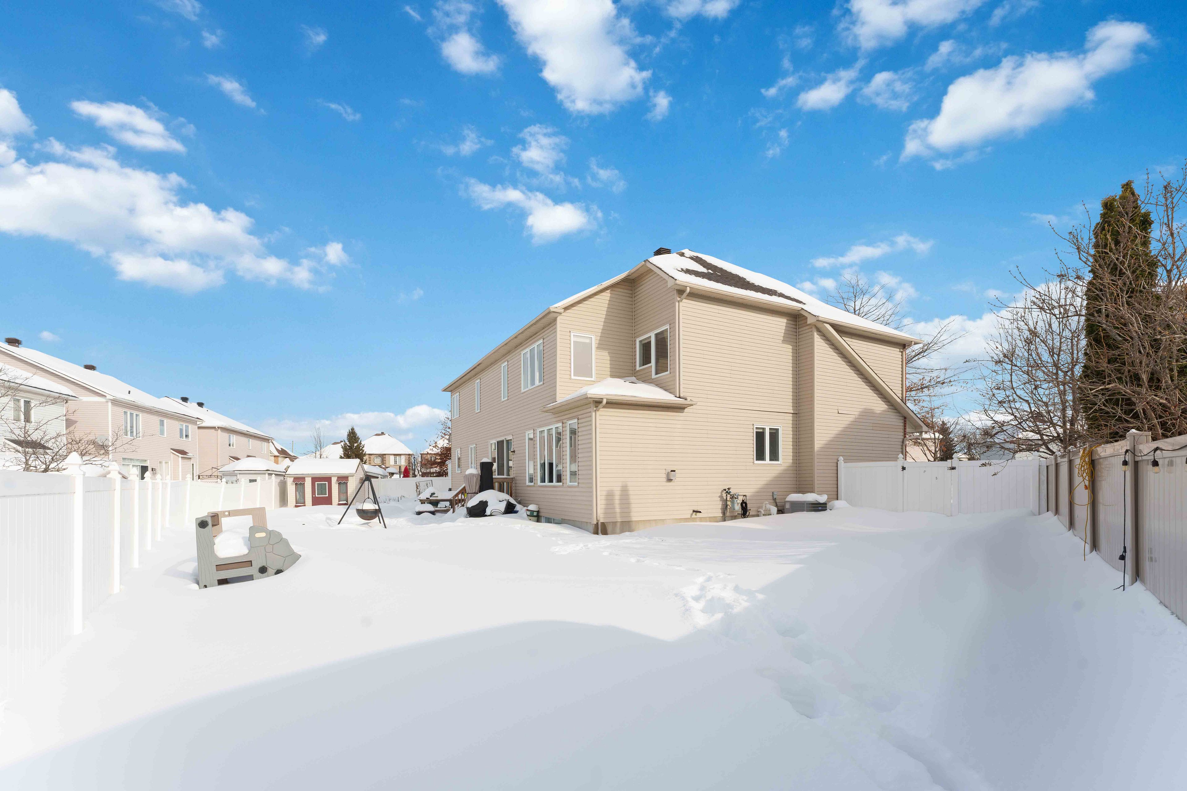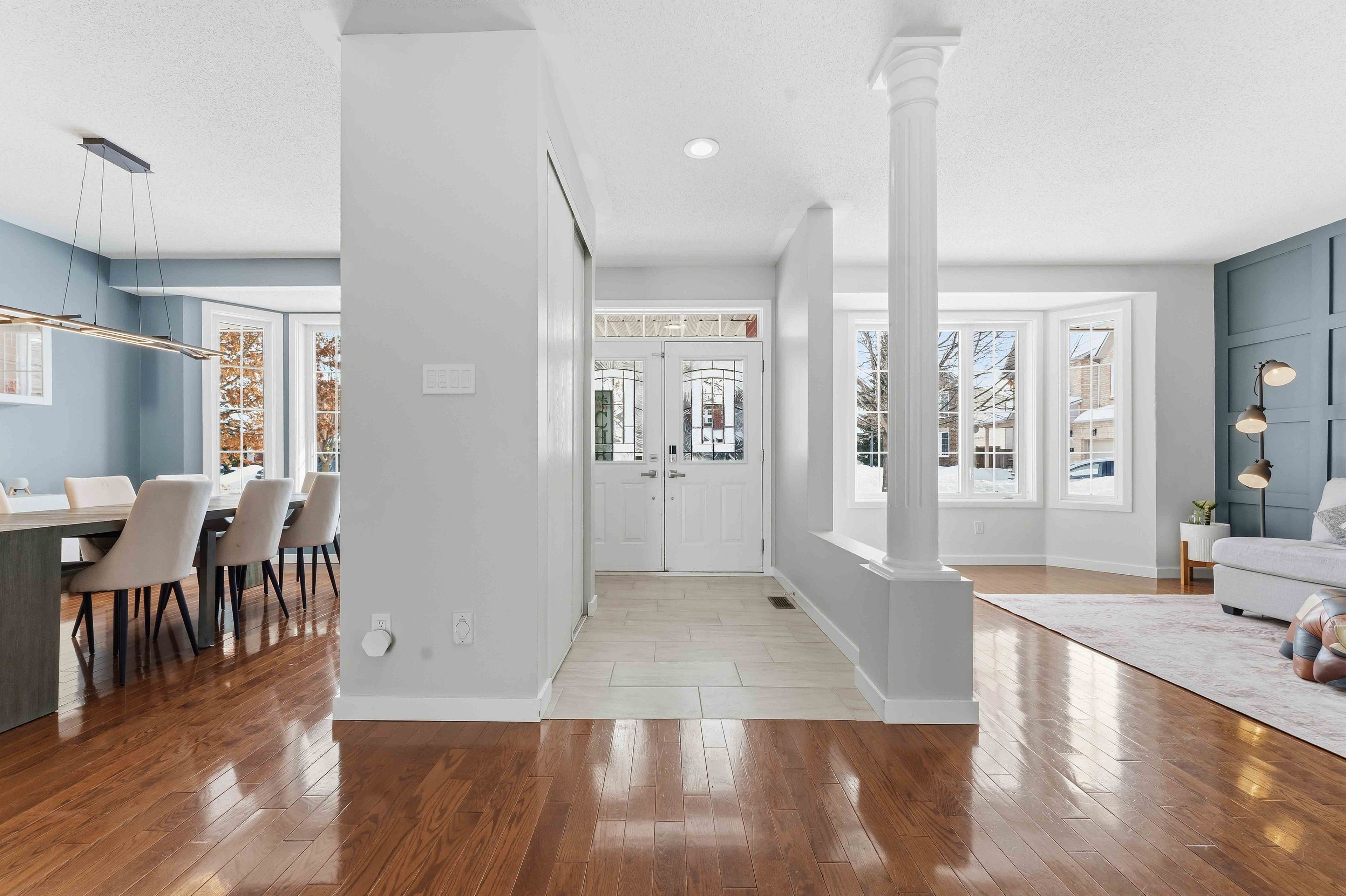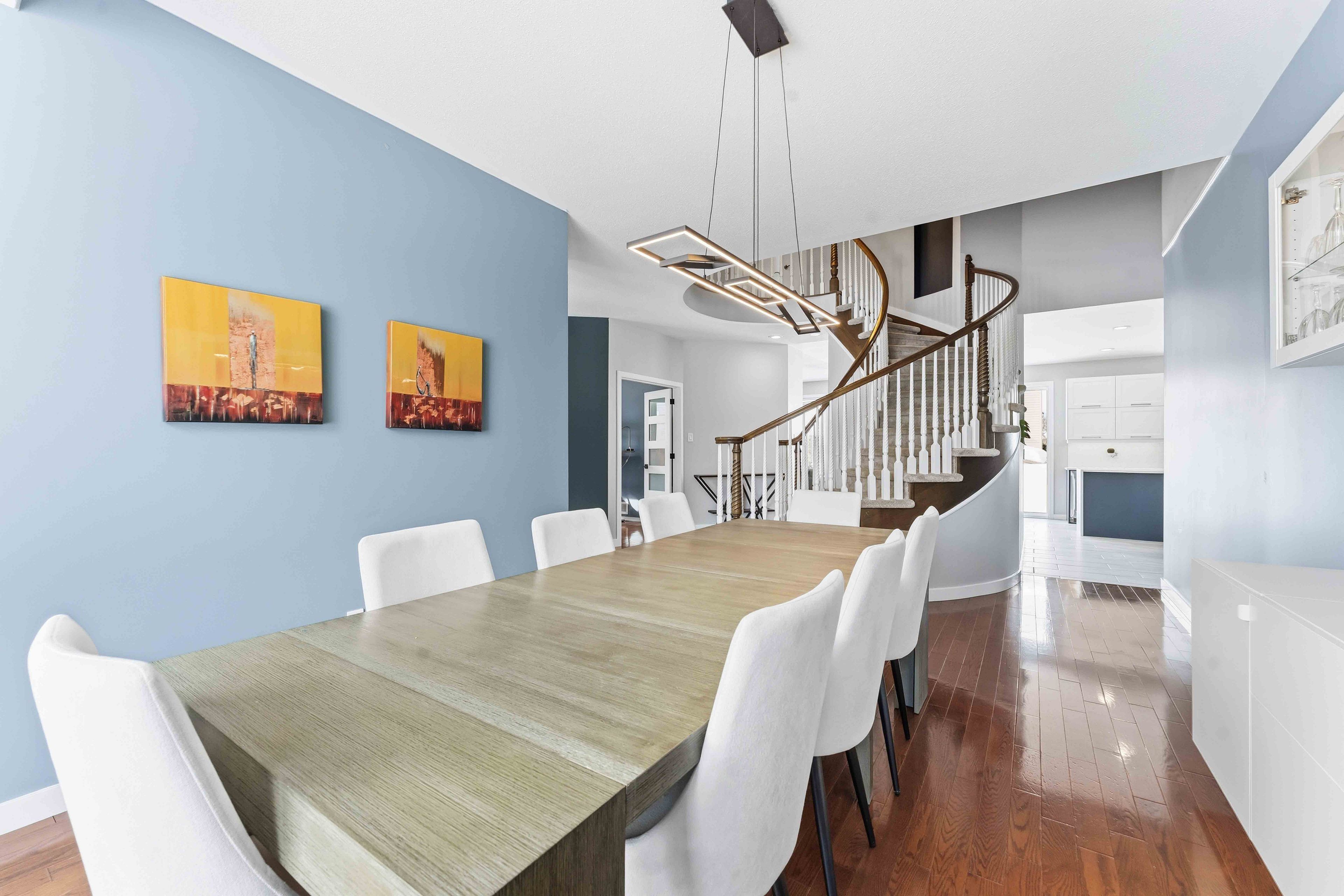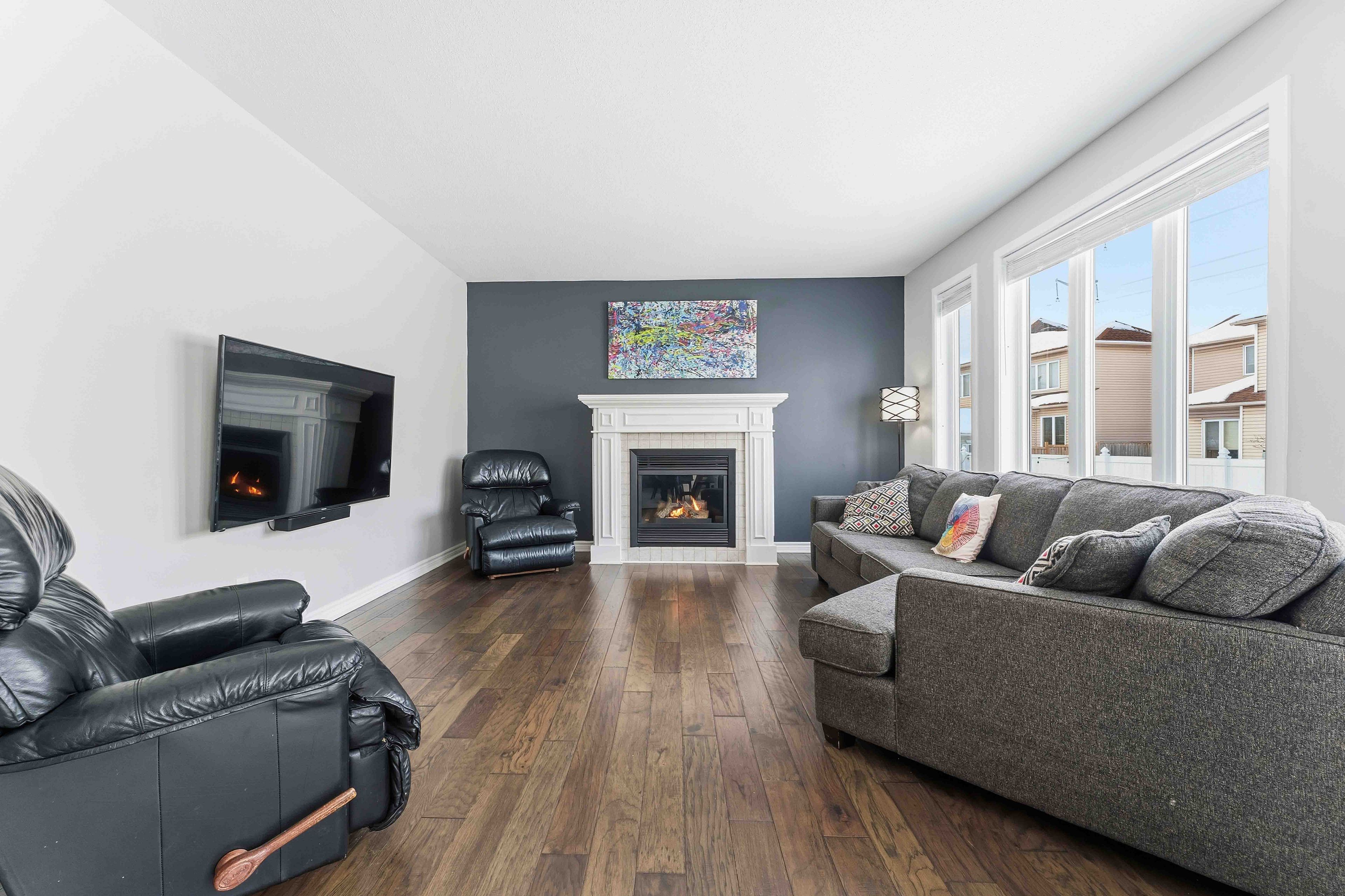 Rare opportunity to own a spacious 4+1 bedroom home on a massive pie-shaped lot in one of avalon's only cul-de-sac! With a double car garage, parking for 4 vehicles and offering over 4,000 square feet of beautifully designed living space, this impressive minto carolina ii model delivers an exceptional layout ideal for entertaining and growing families alike. Full brick frontage, a grand and welcoming foyer showcases a stunning circular staircase, along with formal living and dining rooms featuring rich hardwood flooring and large windows that flood the home with natural light. A convenient main floor den provides the perfect home office or flex space. The main level also offers a functional mudroom/laundry room. The beautifully upgraded kitchen is a true showstopper, complete with quartz countertops, a waterfall island, stainless steel appliances, ample cabinetry and counter space, and a bright eating area. The kitchen flows seamlessly into the inviting family room highlighted by a cozy gas fireplace-perfect for everyday living and entertaining. Upstairs, you'll find four generously sized bedrooms, including a spacious primary retreat with a separate sitting area, walk-in closet, and luxurious 5-piece ensuite bathroom. Three sizeable guest bedrooms and a full bathroom complete this level. The fully finished basement expands your living space even further with vinyl flooring throughout, a large family room with pot lights, a versatile loft/den area, an additional bedroom, and plenty of storage space-ideal for guests, teens, or multi-generational living. Step outside to your oversized, fully fenced backyard oasis featuring interlock patio stones, a storage shed, and endless room to accommodate a deck, pool, play structure, and more. Located in a quiet, family-friendly neighbourhood close to parks, transit, and local amenities, this is a rare opportunity you won't want to miss. Welcome home!