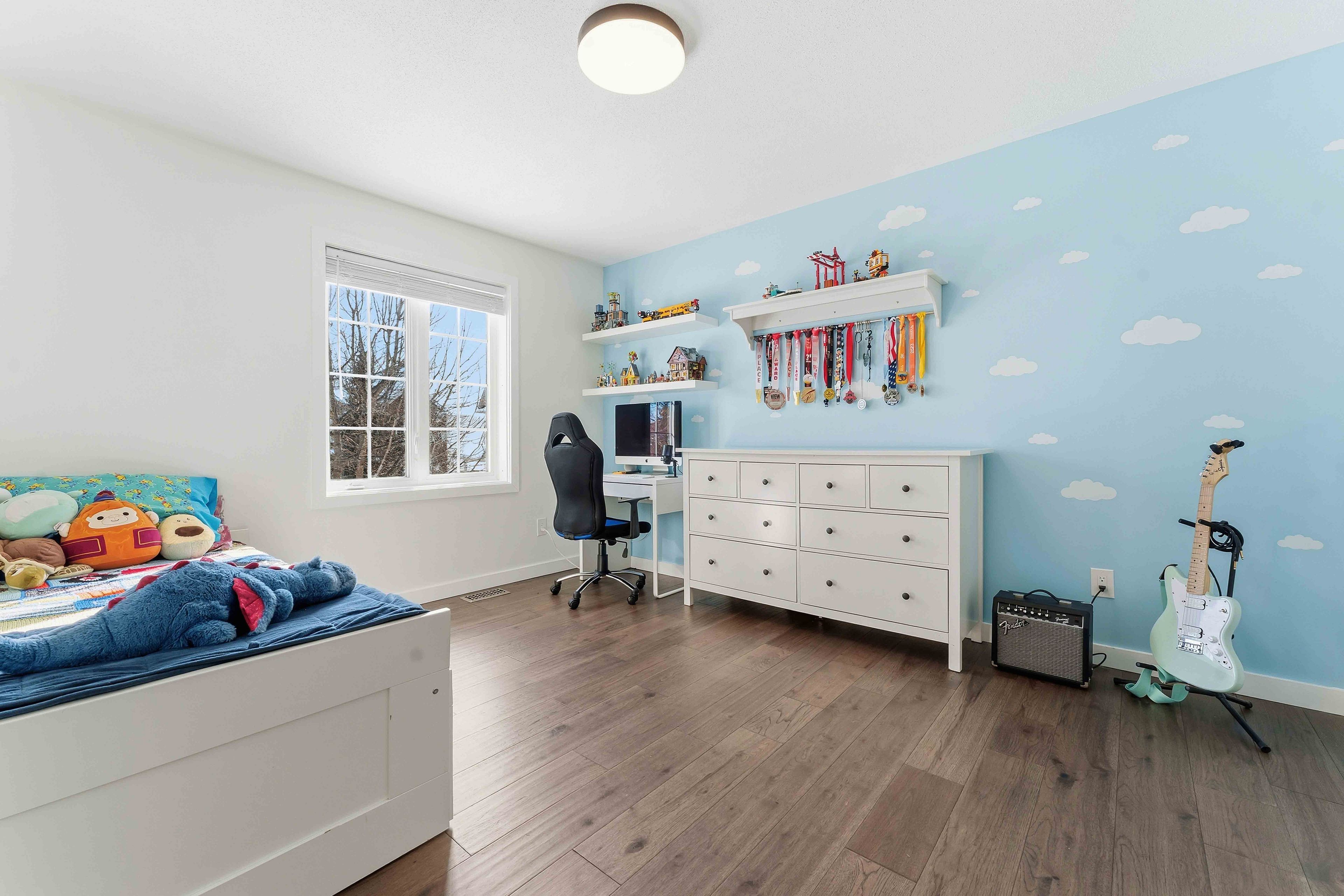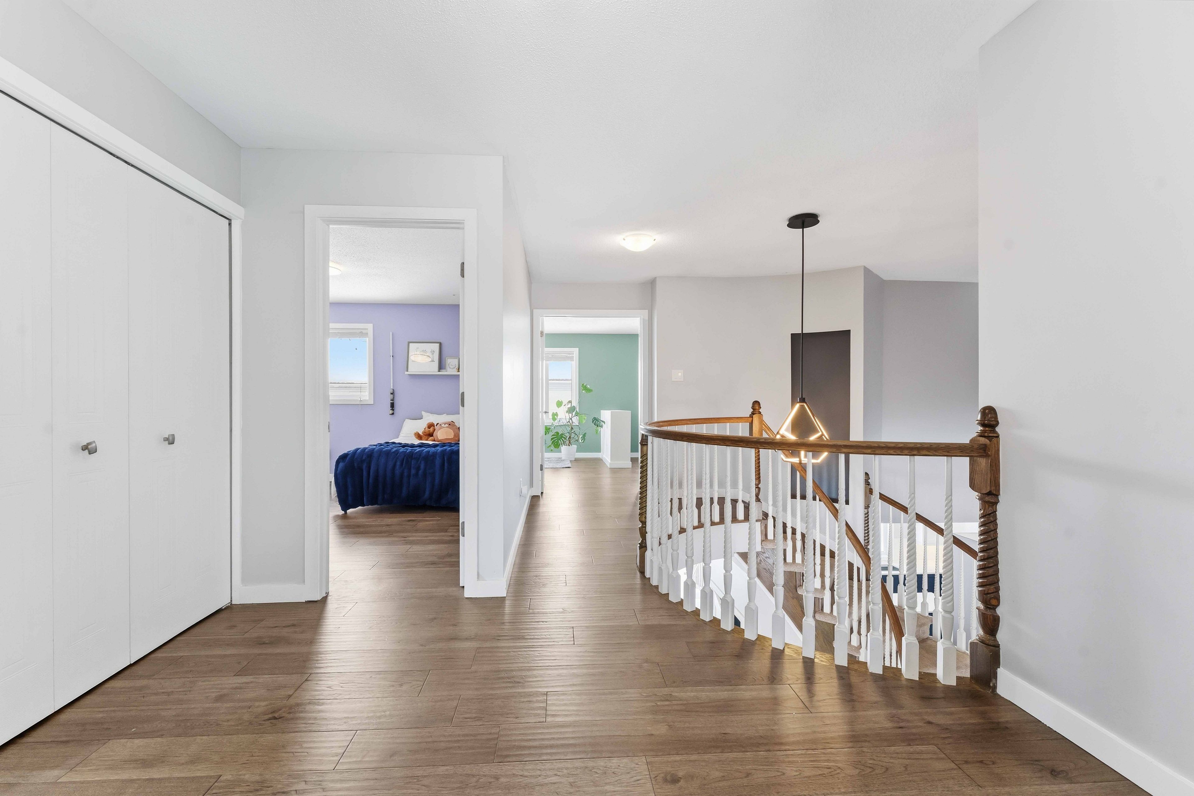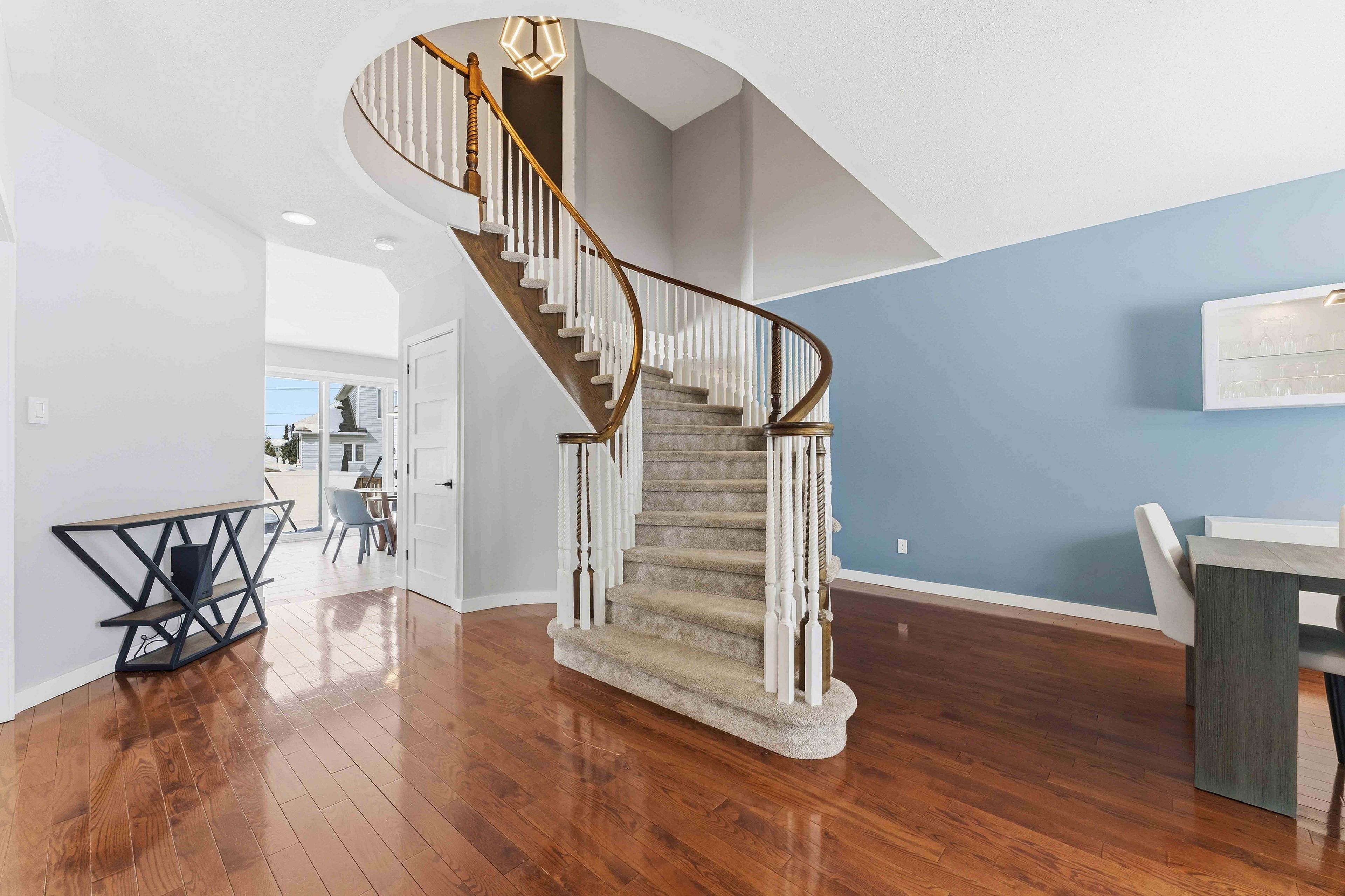 Rare opportunity to own a spacious 4+1 bedroom home on a massive pie-shaped lot in one of avalon's only cul-de-sac! With a double car garage, parking for 4 vehicles and offering over 4,000 square feet of beautifully designed living space, this impressive minto carolina ii model delivers an exceptional layout ideal for entertaining and growing families alike. Full brick frontage, a grand and welcoming foyer showcases a stunning circular staircase, along with formal living and dining rooms featuring rich hardwood flooring and large windows that flood the home with natural light. A convenient main floor den provides the perfect home office or flex space. The main level also offers a functional mudroom/laundry room. The beautifully upgraded kitchen is a true showstopper, complete with quartz countertops, a waterfall island, stainless steel appliances, ample cabinetry and counter space, and a bright eating area. The kitchen flows seamlessly into the inviting family room highlighted by a cozy gas fireplace-perfect for everyday living and entertaining. Upstairs, you'll find four generously sized bedrooms, including a spacious primary retreat with a separate sitting area, walk-in closet, and luxurious 5-piece ensuite bathroom. Three sizeable guest bedrooms and a full bathroom complete this level. The fully finished basement expands your living space even further with vinyl flooring throughout, a large family room with pot lights, a versatile loft/den area, an additional bedroom, and plenty of storage space-ideal for guests, teens, or multi-generational living. Step outside to your oversized, fully fenced backyard oasis featuring interlock patio stones, a storage shed, and endless room to accommodate a deck, pool, play structure, and more. Located in a quiet, family-friendly neighbourhood close to parks, transit, and local amenities, this is a rare opportunity you won't want to miss. Welcome home!