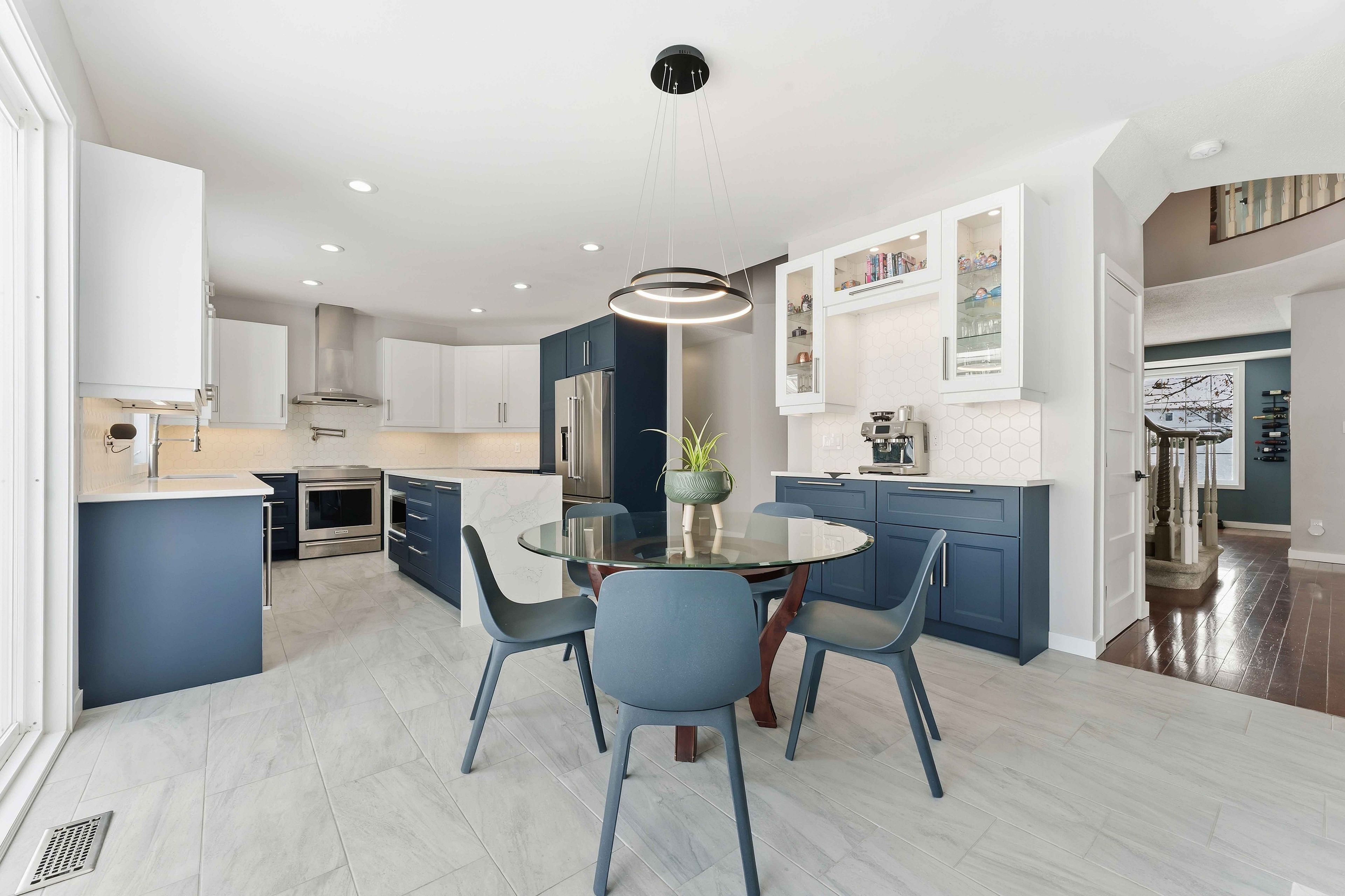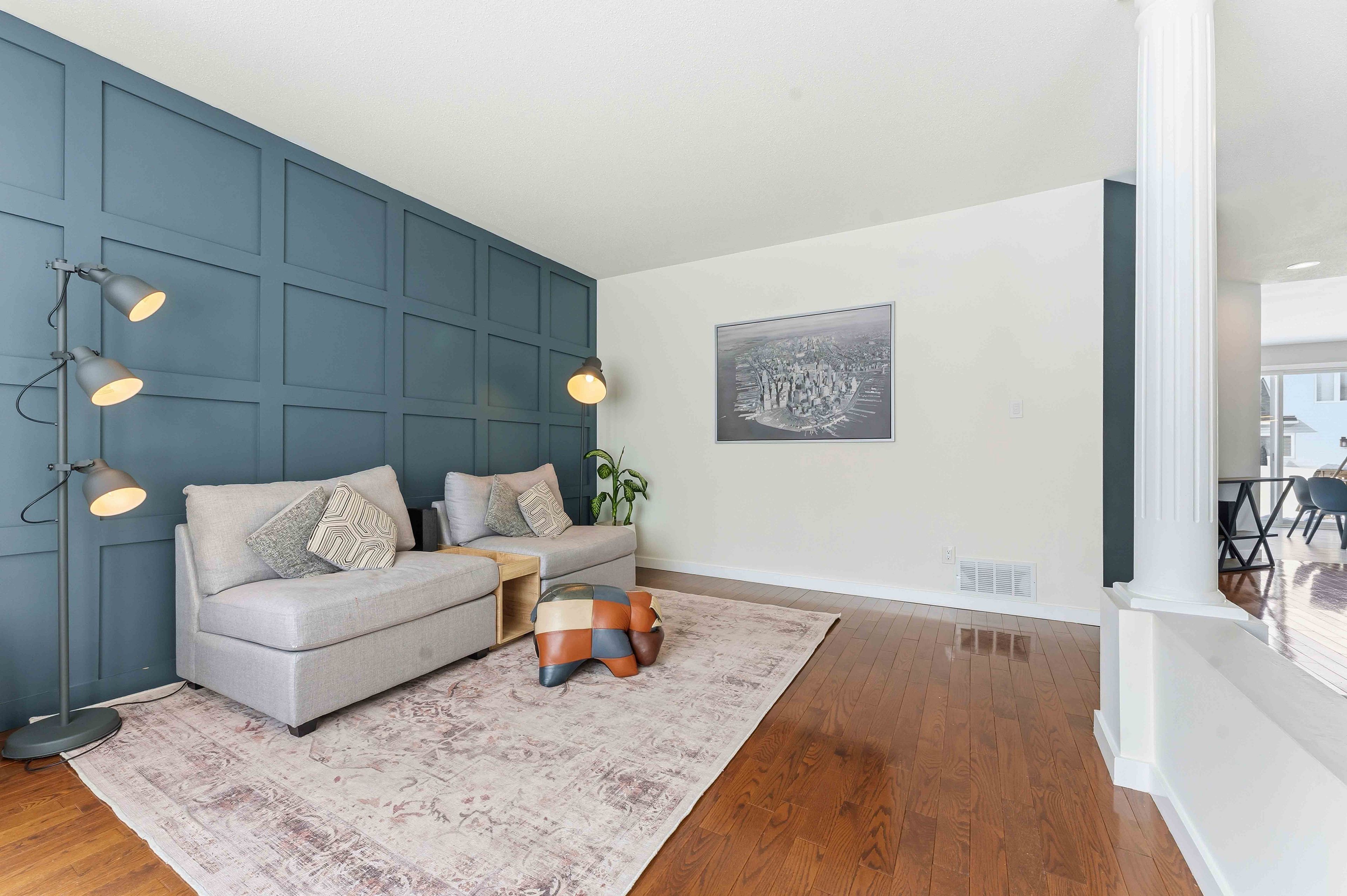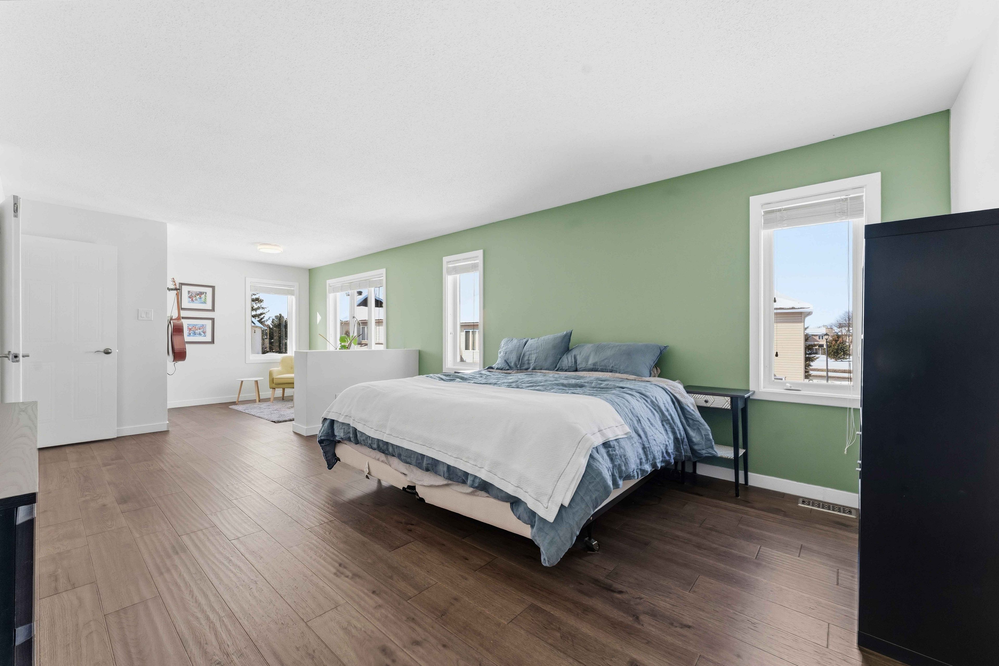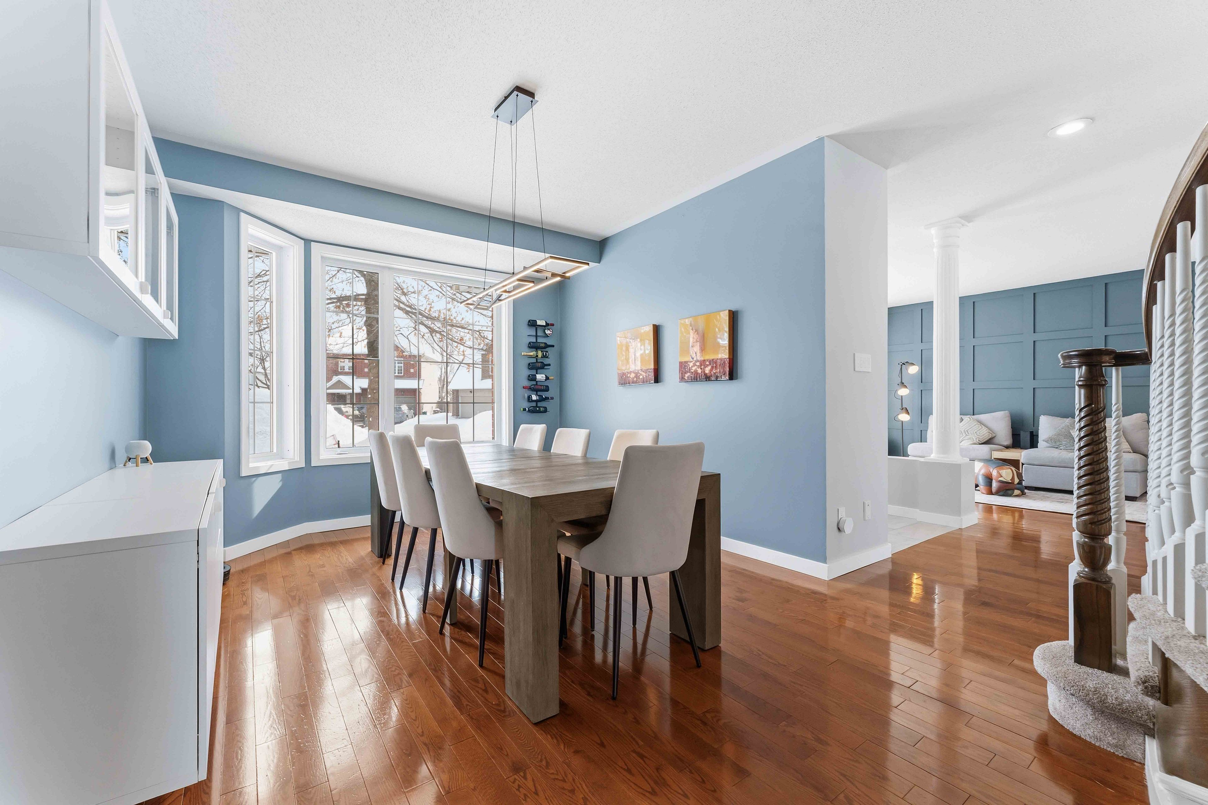 Rare opportunity to own a spacious 4+1 bedroom home on a massive pie-shaped lot in one of avalon's only cul-de-sac! With a double car garage, parking for 4 vehicles and offering over 4,000 square feet of beautifully designed living space, this impressive minto carolina ii model delivers an exceptional layout ideal for entertaining and growing families alike. Full brick frontage, a grand and welcoming foyer showcases a stunning circular staircase, along with formal living and dining rooms featuring rich hardwood flooring and large windows that flood the home with natural light. A convenient main floor den provides the perfect home office or flex space. The main level also offers a functional mudroom/laundry room. The beautifully upgraded kitchen is a true showstopper, complete with quartz countertops, a waterfall island, stainless steel appliances, ample cabinetry and counter space, and a bright eating area. The kitchen flows seamlessly into the inviting family room highlighted by a cozy gas fireplace-perfect for everyday living and entertaining. Upstairs, you'll find four generously sized bedrooms, including a spacious primary retreat with a separate sitting area, walk-in closet, and luxurious 5-piece ensuite bathroom. Three sizeable guest bedrooms and a full bathroom complete this level. The fully finished basement expands your living space even further with vinyl flooring throughout, a large family room with pot lights, a versatile loft/den area, an additional bedroom, and plenty of storage space-ideal for guests, teens, or multi-generational living. Step outside to your oversized, fully fenced backyard oasis featuring interlock patio stones, a storage shed, and endless room to accommodate a deck, pool, play structure, and more. Located in a quiet, family-friendly neighbourhood close to parks, transit, and local amenities, this is a rare opportunity you won't want to miss. Welcome home!