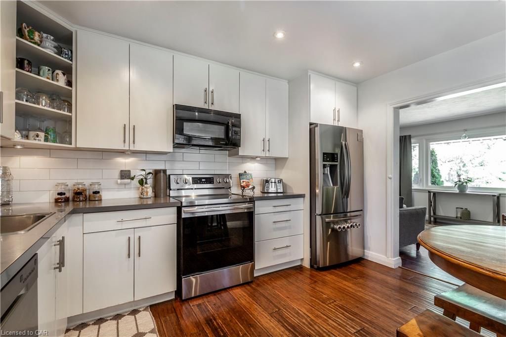107 ellis cres - for sale! Beautifully updated bungalow filled with natural light and move-in ready! Featuring a spacious living room with hardwood floors and a modern kitchen with stainless steel appliances. The main floor offers three generously sized bedrooms, a full bathroom, convenient laundry, and a stunning sunroom/family room-perfect for relaxing or entertaining. The fully finished basement adds incredible versatility with two additional bedrooms, a large recreation room, living area, two kitchens, and two full bathrooms-ideal for extended family or in-law potential. Includes a single attached garage and ample storage throughout. Enjoy the gorgeous sunroom and the unbeatable location close to all amenities, schools, shopping, and transit.