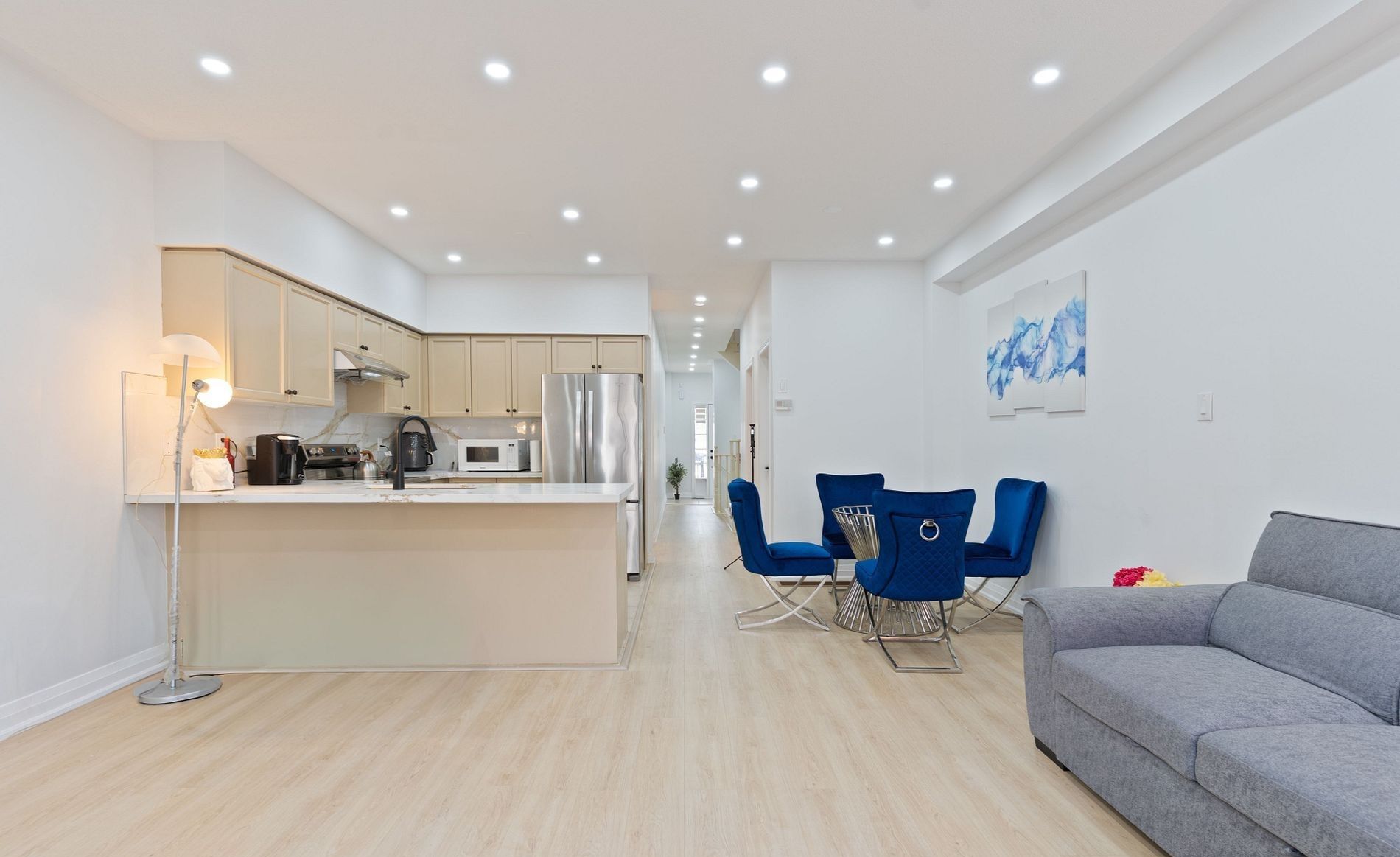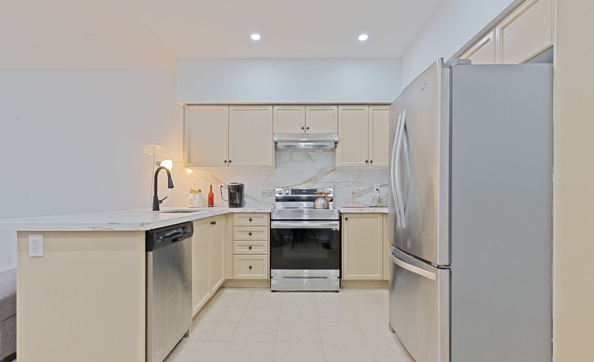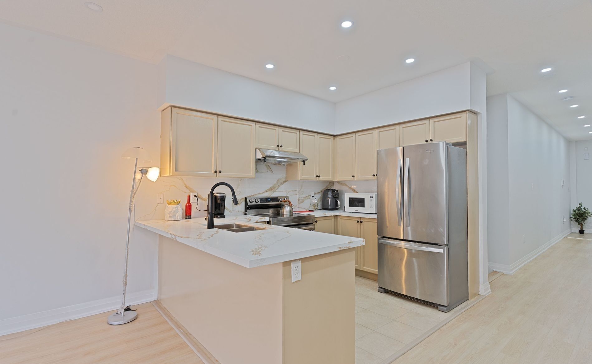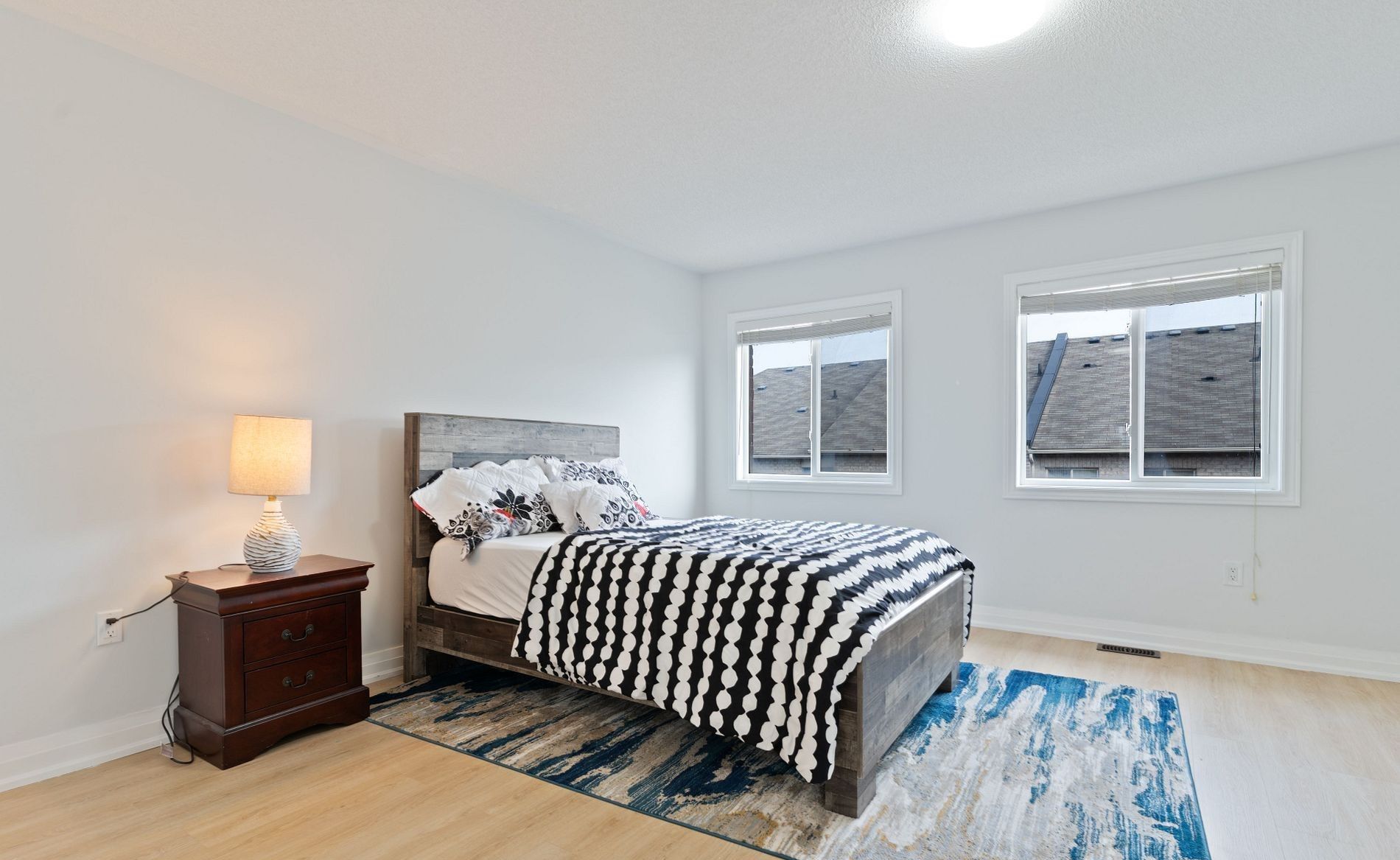 Welcome to this beautiful freehold townhouse, perfectly situated in a highly desirable location! Facing a main intersection and just a short walk to bus stops, plazas, and the mount pleasant go station, this home offers unmatched convenience for commuters and families alike. This upgraded and well-maintained 3-bedroom property boasts a fantastic open-concept layout, featuring 9-ft ceilings, pot lights, and new laminate flooring throughout the main and second levels. The modern kitchen is equipped with stainless steel appliances, upgraded countertops, and plenty of space for cooking and entertaining. Upstairs, you'll find spacious bedrooms, each complete with his and her closets. The bathrooms have been thoughtfully upgraded, including a stylish 3-piece ensuite enhanced with a new glass bathtub door. Fresh paint and contemporary light fixtures add a bright, welcoming feel throughout the home. The fully finished basement provides even more versatility, offering a 3-piece washroom and ample storage space-ideal for guests, a home office, or recreation. Step outside to a wonderful backyard featuring an oversized deck, perfect for gatherings, barbecues, or relaxing outdoors. The extended driveway offers additional parking for your convenience. This move-in ready home is an excellent choice for families, first-time buyers, or investors seeking quality, space, and exceptional convenience in a prime location.
