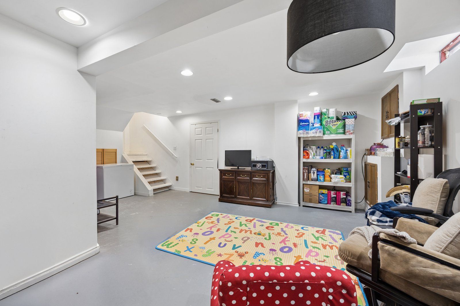 • Partially finished basement ready for recreation, office, or gym use.