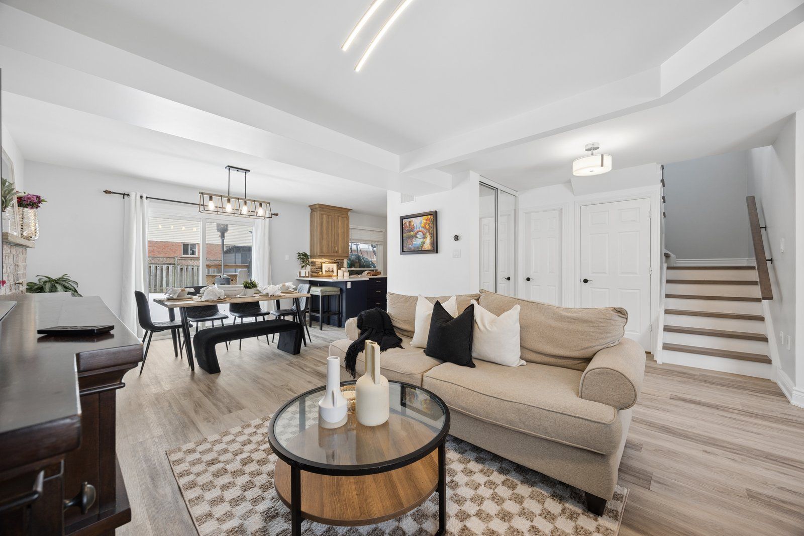Set in a quiet, established, family-friendly neighbourhood, this updated detached home offers 3+1 bedrooms and 3 bathrooms complemented by a partially finished basement. The main floor features an open-concept layout with smooth ceilings and updated flooring, creating a seamless flow through the principal rooms and excellent natural light. This home delivers $200k in upgrades (2022): a brand-new designer kitchen, three custom-designed bathrooms, new stairs and flooring, and a custom primary bedroom closet. The home was repainted (2025) and the roof replaced (2022). The kitchen serves as a functional centerpiece with quartz countertops, large pantry storage cabinets, a brand-new stove (2026). Updated appliances include a kitchenaid refrigerator (2020) and a bosch dishwasher (2020) - well-equipped for everyday cooking and entertaining. Outdoor living extends the home's versatility with interlocking stone in the front and back, a lawned backyard, a 14x20 deck (2022), a 10x12 gazebo, and a brand-new shed (2022) - organized, usable areas for dining, play, and seasonal enjoyment. Brand new garage door (2019). The partially finished basement provides additional flexible living space - ideal for a recreation area, media room, home office, gym, or playroom - and is adaptable to evolving household needs. Mechanicals: furnace, water heater, and air conditioner are owned in full. With its open-concept main floor, designer finishes, and thoughtfully upgraded interior and exterior spaces, 107 hemingford place presents a move-in-ready opportunity in a desirable whitby community - offering a combination of modern design and practical function.