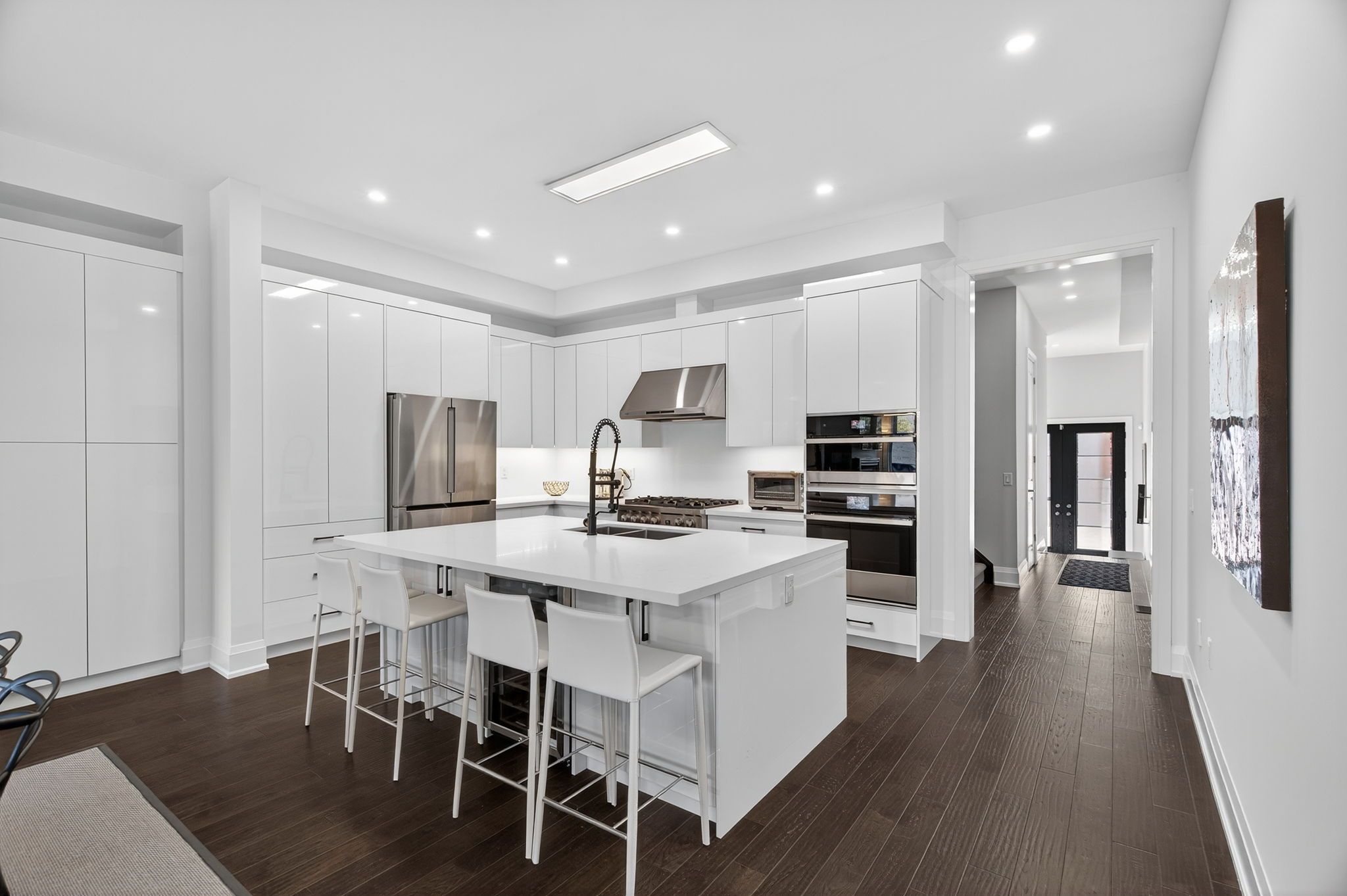 Welcome to 107 hesperus, showcasing amazing designer finishes and modern construction in the heart of prime thornhill woods. Built in 2018, this stunning 4+1 bedroom home features 10-foot ceilings on the main floor and 9-foot ceilings on the second floor, with designer finishing and attention to detail throughout. The main floor offers a great open-concept layout combining the kitchen, dining room, and large family room overlooking private scenic views. The newly built custom kitchen features extended cabinetry, quartz countertops, with all new high-end stainless steel appliances (2023) including a six-burner gas cooktop, double wall ovens, oversized island with wine fridge, and quartz backsplash. The family room includes a custom mantle, gas fireplace, and automatic blinds, with a walkout to a private backyard oasis offering a large deck with privacy walls on both sides and a gated staircase leading to a beautifully finished patio, all backing onto protected greenery for the ultimate retreat. Upstairs offers four spacious bedrooms plus a media nook/den, ideal for a home office or study area. The primary suite boasts his and hers walk-in closets with built-in organizers and a luxurious five-piece ensuite with double sinks, glass shower, and soaker tub overlooking conservation land that will never be built on. Amazing private backyard - fully landscaped front and backyard. Additional highlights include smooth ceilings throughout, a second-floor laundry room, wrought-iron staircase, double linen closet, and direct garage access with ample storage. The basement is framed and ready for your finishing touch. Located close to top-rated schools, parks, nature trails, and all the best amenities vaughan has to offer, this home blends elegance, comfort, and convenience in one perfect package.