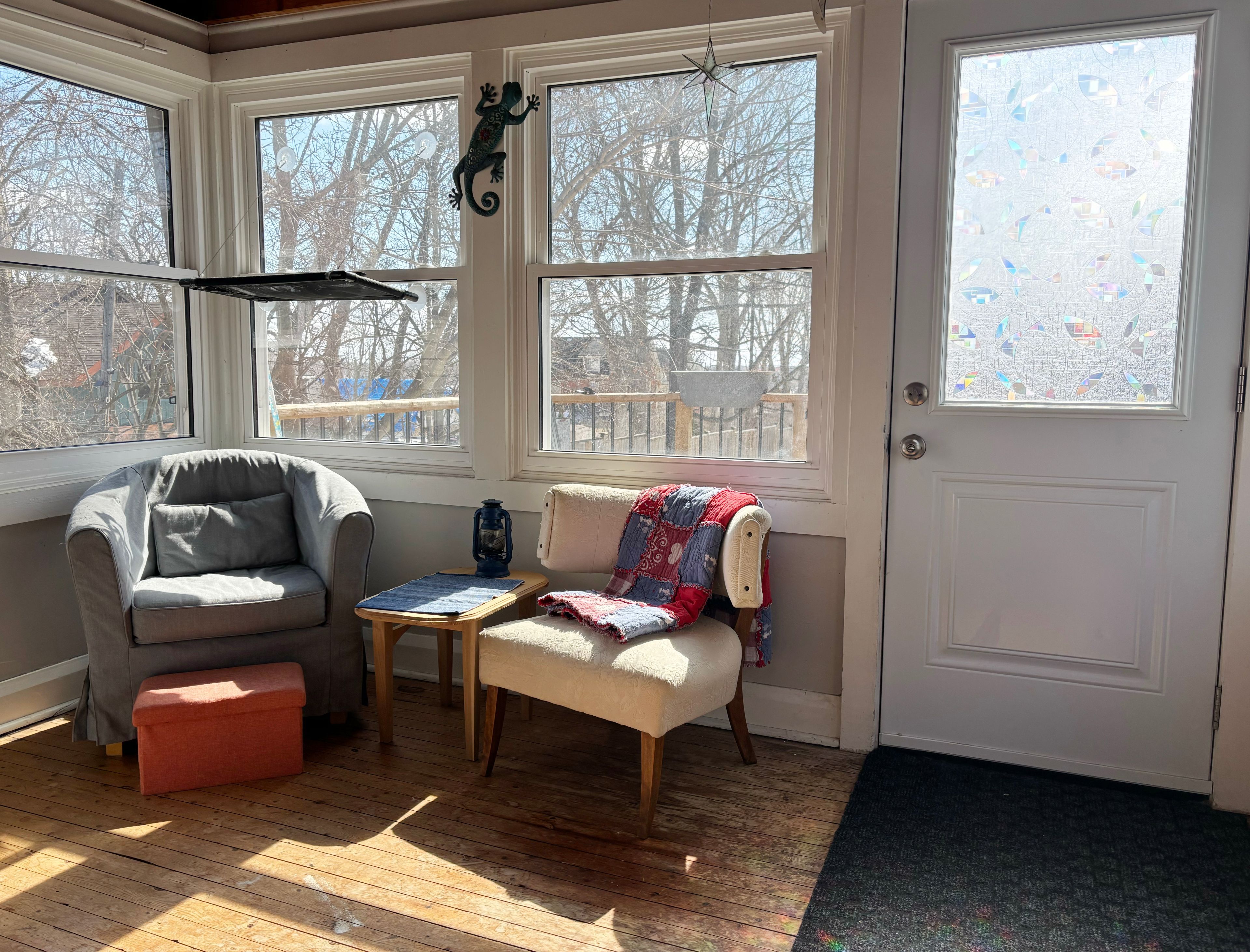 • Bright sunroom overlooks a large, fully fenced backyard for outdoor enjoyment.