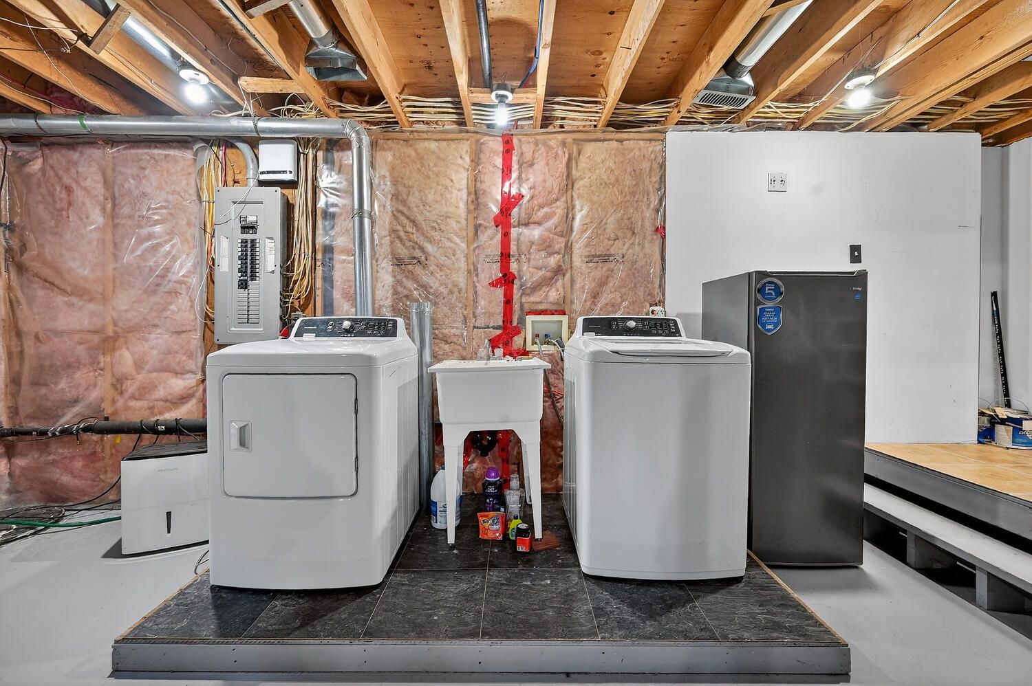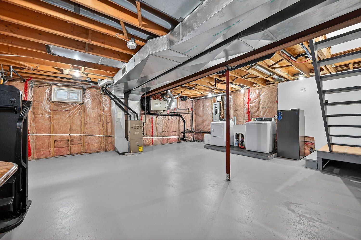 • Large unfinished basement with potential for custom living space.