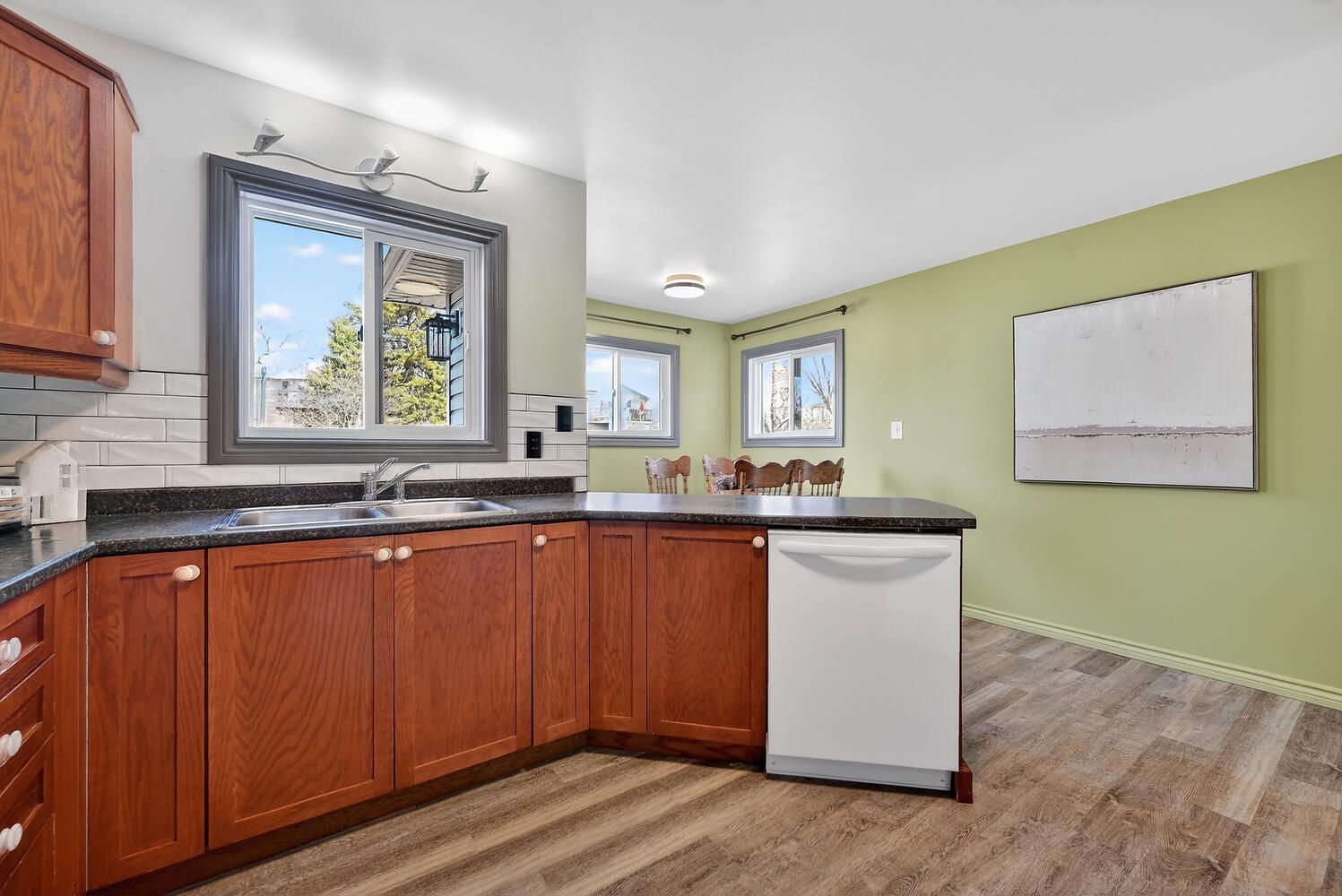 • Spacious kitchen with ample storage and eat-in counter.