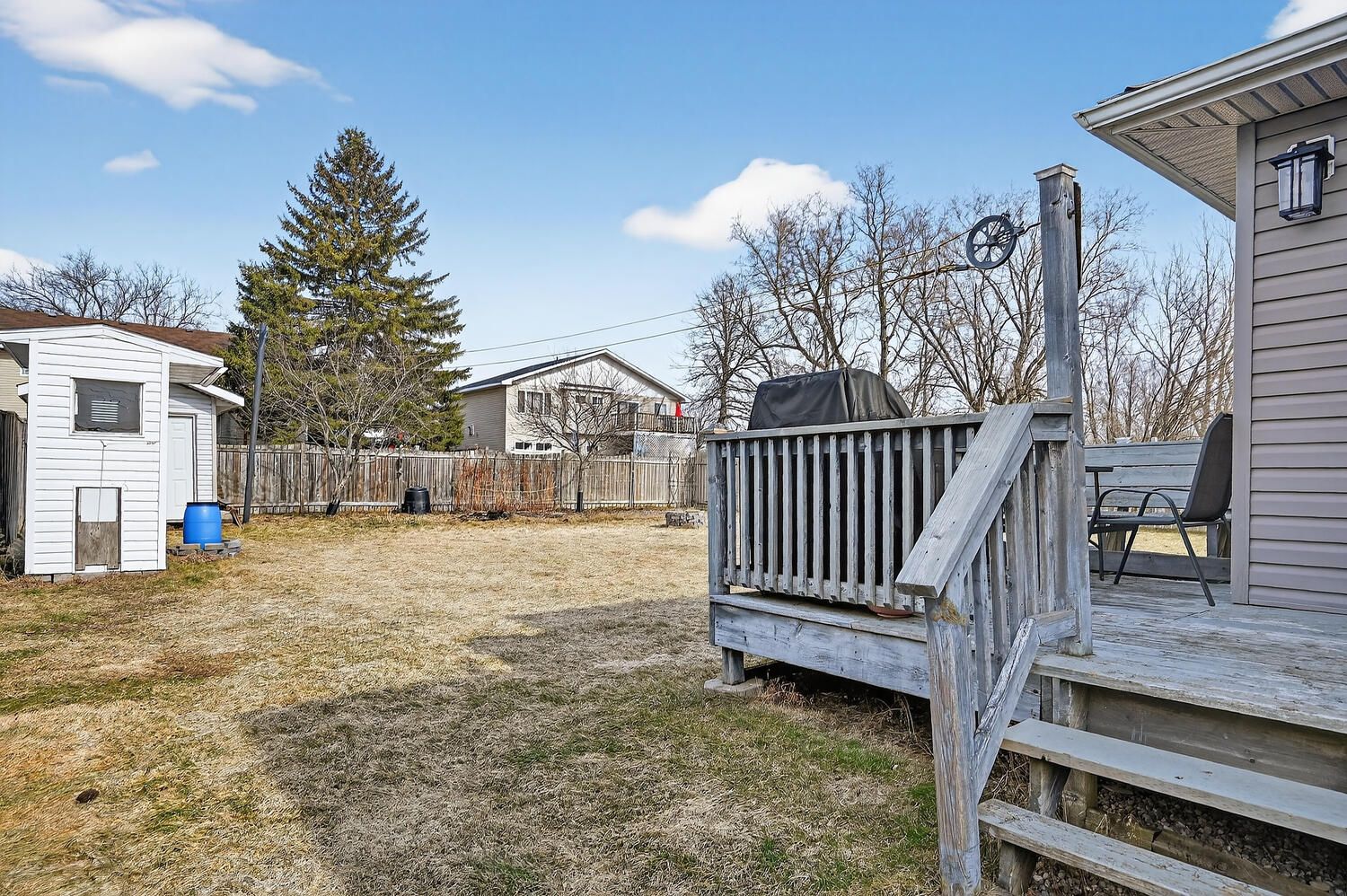 • Private fenced backyard with mature trees and easy access.