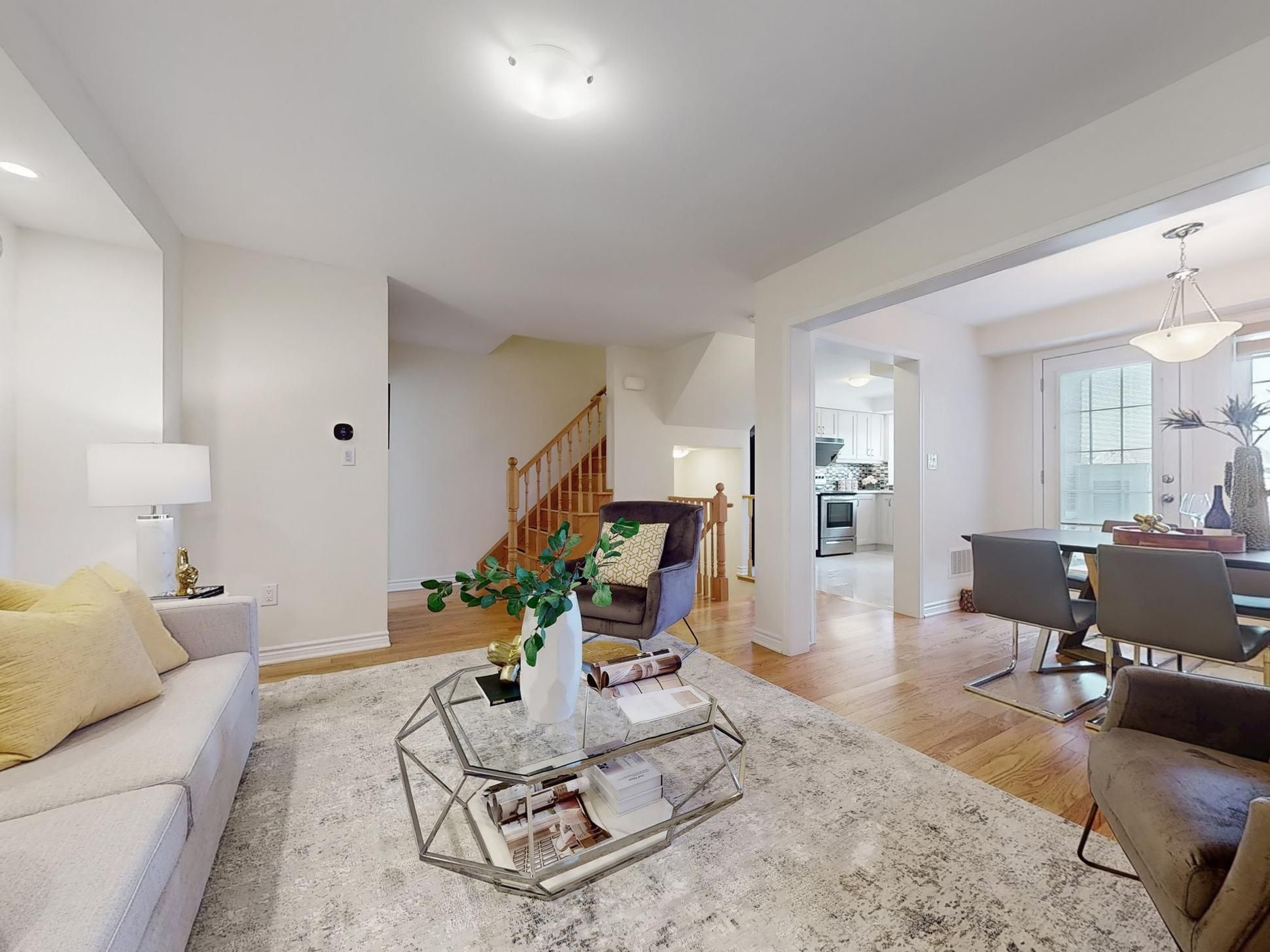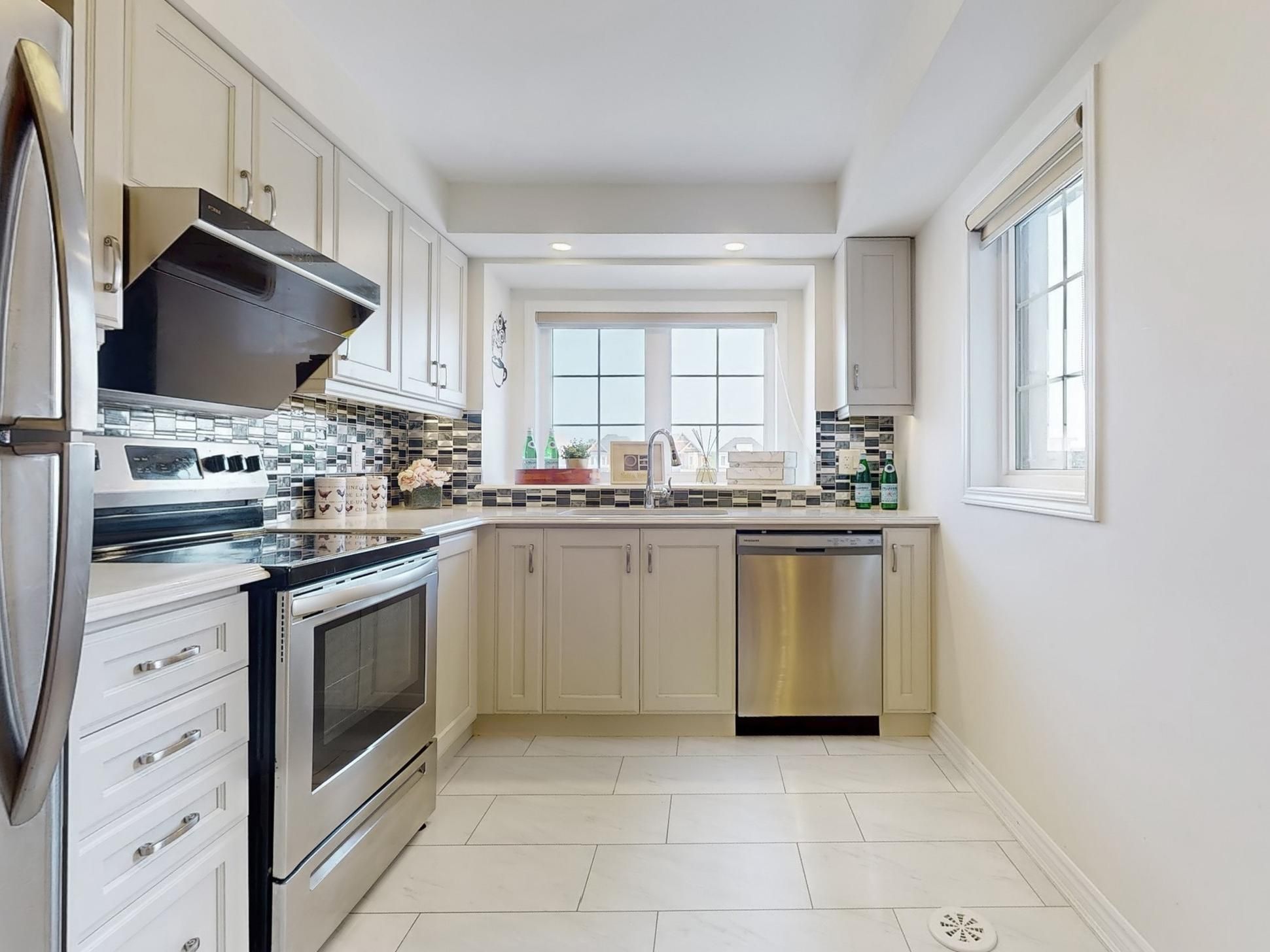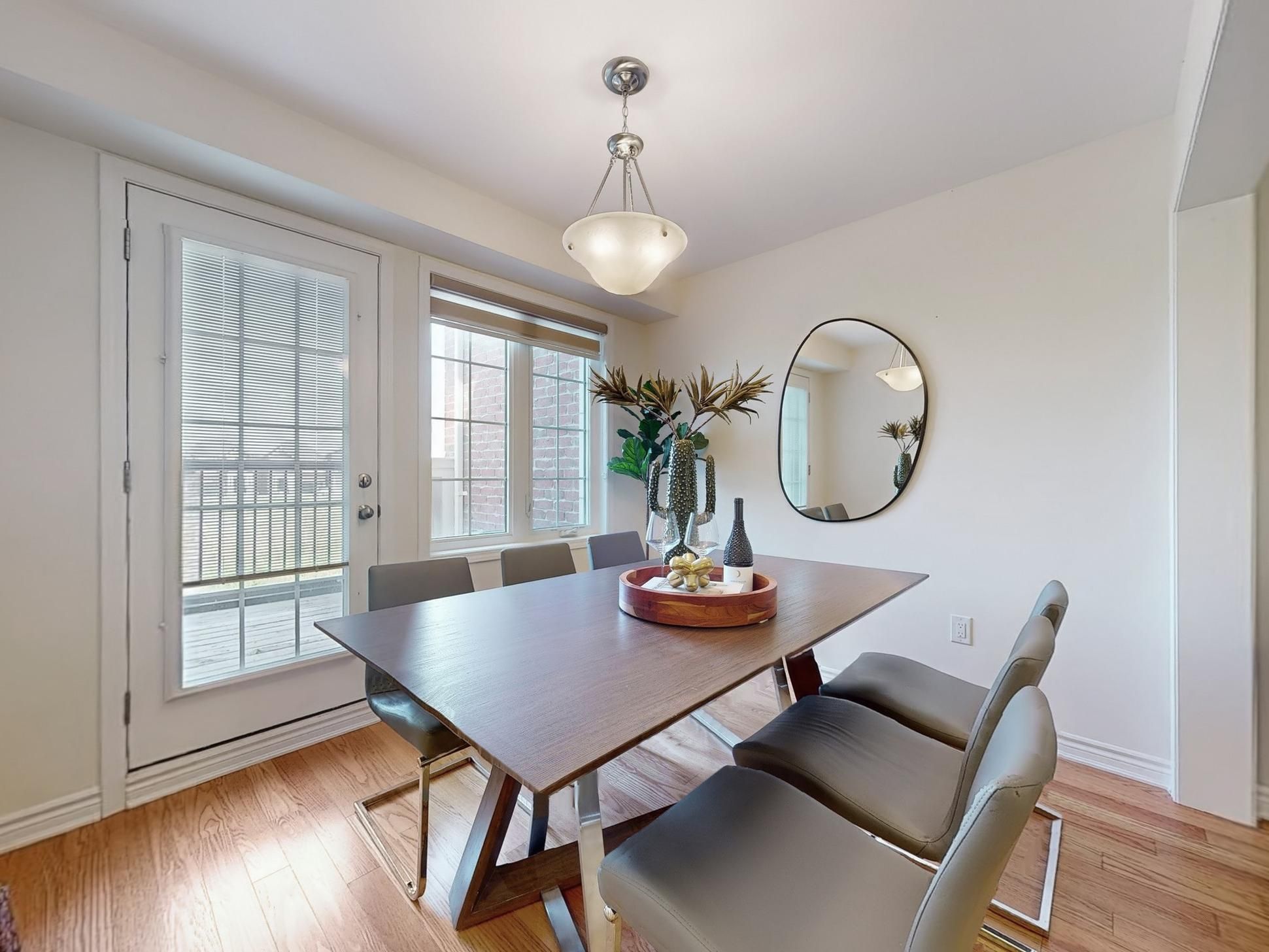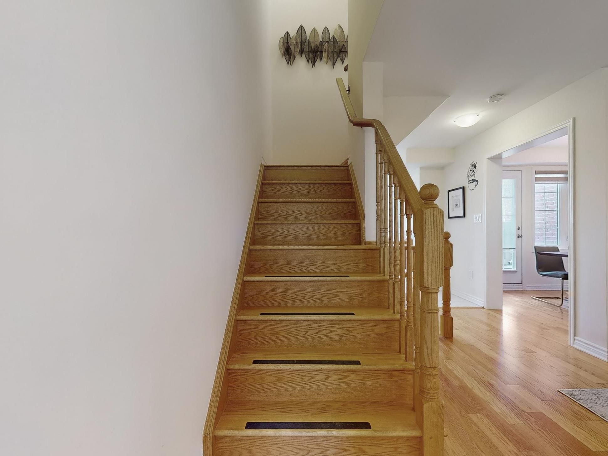 Location! Location! Location! Discover modern elegance in this beautifully upgraded 3-storey freehold townhome by mattamy homes, nestled in the prestigious richmond green community. Backing onto a ravine with no rear neighbours, this home offers exceptional privacy and serene views. Featuring a functional, open-concept layout with 2 spacious bedrooms, 3 bathrooms, upper floor laundry, and direct access to garage. The primary bedroom boasts french doors and a large walk-in closet. Enjoy 9-ft ceilings and hardwood floors throughout above grade, with a bright great room and dining area enhanced by led pot lights. The modern kitchen showcases quartz countertops, glass backsplash, under-cabinet lighting, and a premium fotile range hood. Pride of ownership-owner-occupied, never rented, and meticulously maintained. Unbeatable location: steps to richmond green secondary school, and just minutes to hwy 404/407, costco, home depot, parks, restaurants, and shopping plazas. Key highlights: 1) no maintenance fees; 2) private driveway fits 2 cars; 3) upgraded ceramic flooring on ground level; 4) oak staircase with upgraded railings; 5) high-end washer & dryer included