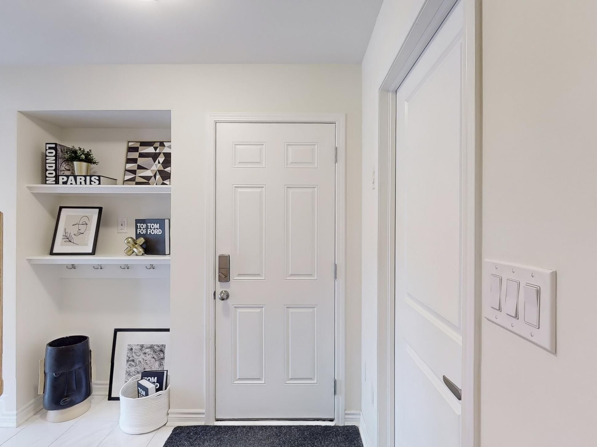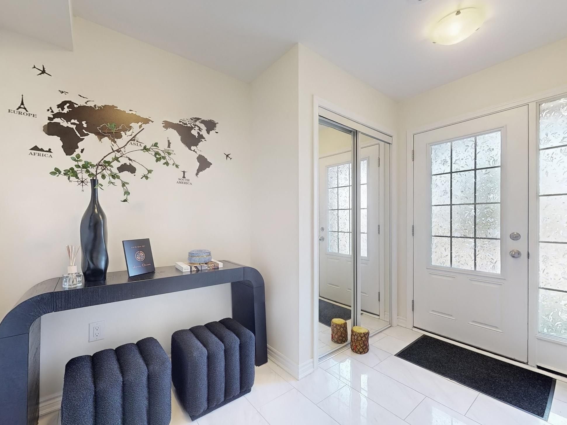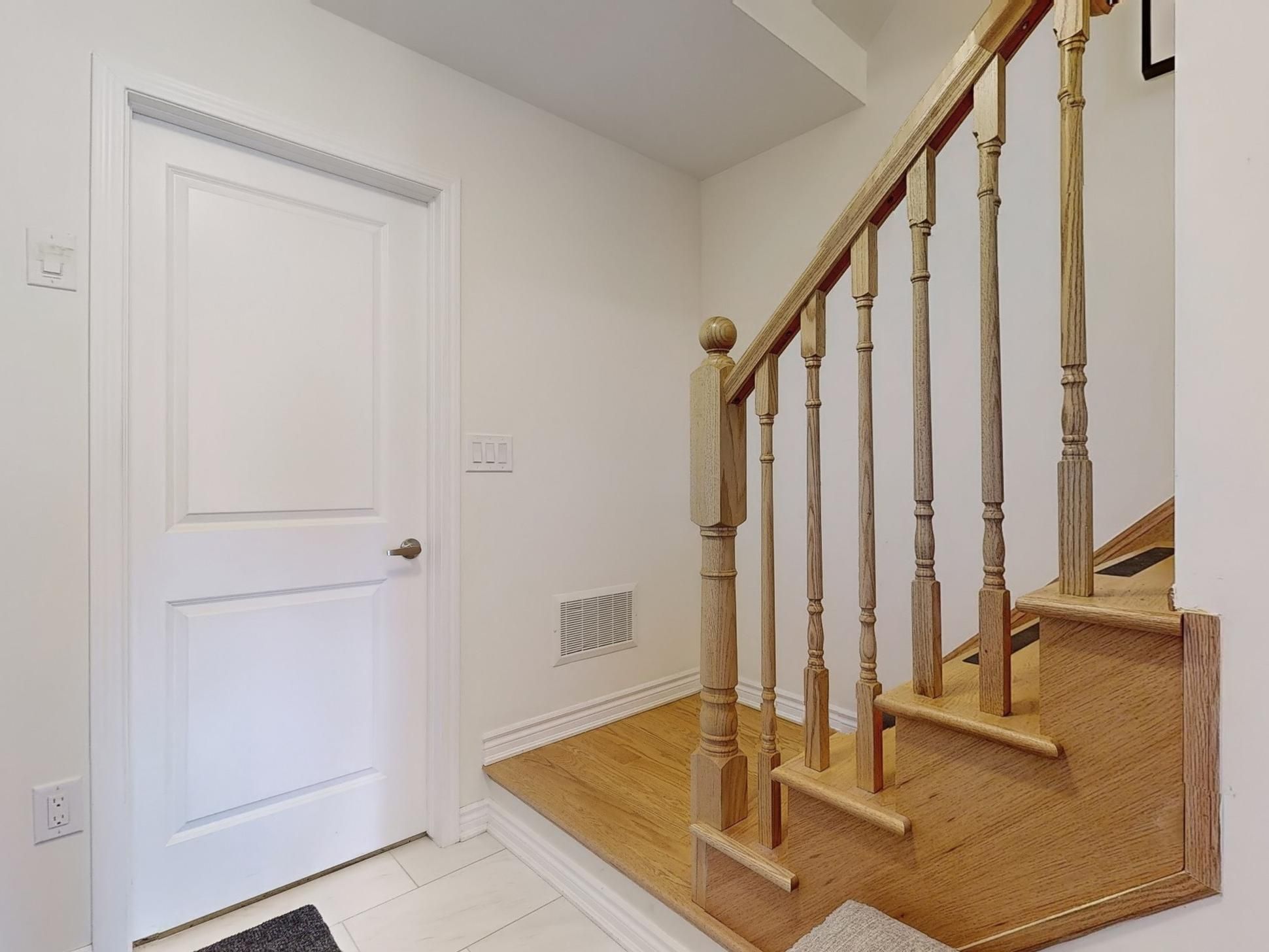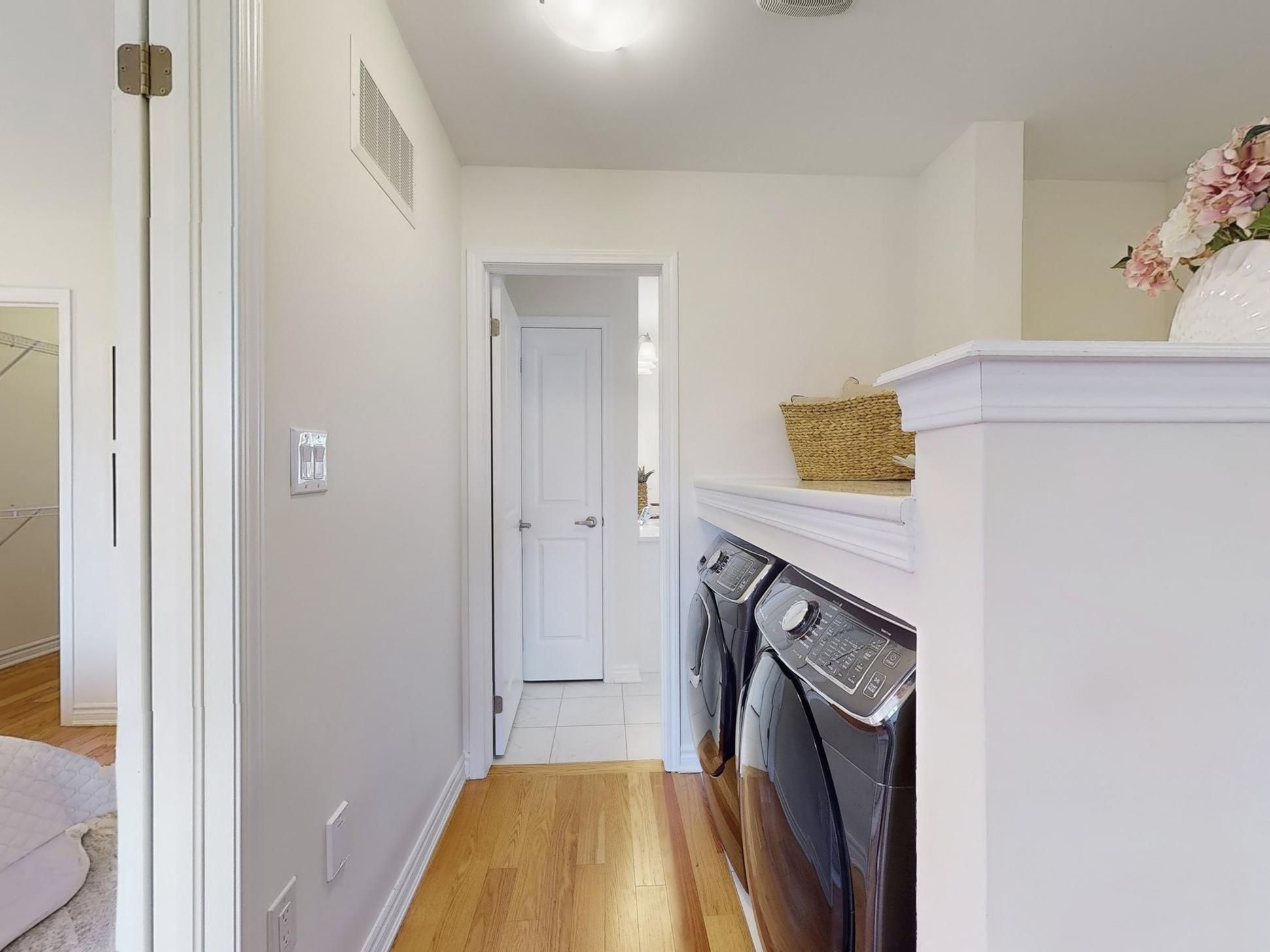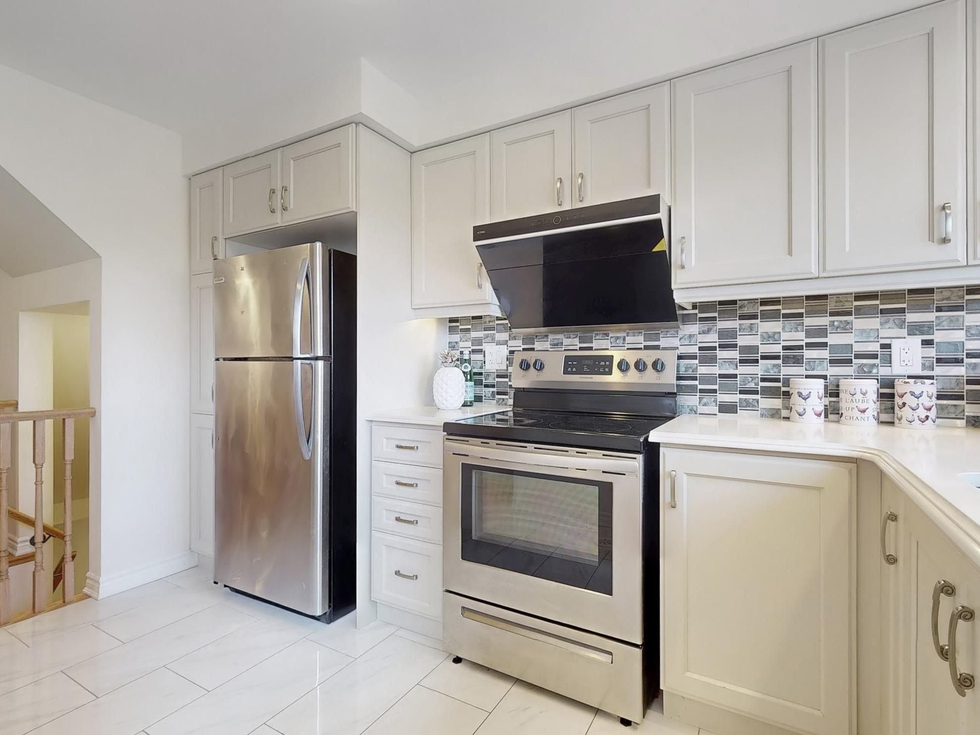 Location! Location! Location! Discover modern elegance in this beautifully upgraded 3-storey freehold townhome by mattamy homes, nestled in the prestigious richmond green community. Backing onto a ravine with no rear neighbours, this home offers exceptional privacy and serene views. Featuring a functional, open-concept layout with 2 spacious bedrooms, 3 bathrooms, upper floor laundry, and direct access to garage. The primary bedroom boasts french doors and a large walk-in closet. Enjoy 9-ft ceilings and hardwood floors throughout above grade, with a bright great room and dining area enhanced by led pot lights. The modern kitchen showcases quartz countertops, glass backsplash, under-cabinet lighting, and a premium fotile range hood. Pride of ownership-owner-occupied, never rented, and meticulously maintained. Unbeatable location: steps to richmond green secondary school, and just minutes to hwy 404/407, costco, home depot, parks, restaurants, and shopping plazas. Key highlights: 1) no maintenance fees; 2) private driveway fits 2 cars; 3) upgraded ceramic flooring on ground level; 4) oak staircase with upgraded railings; 5) high-end washer & dryer included