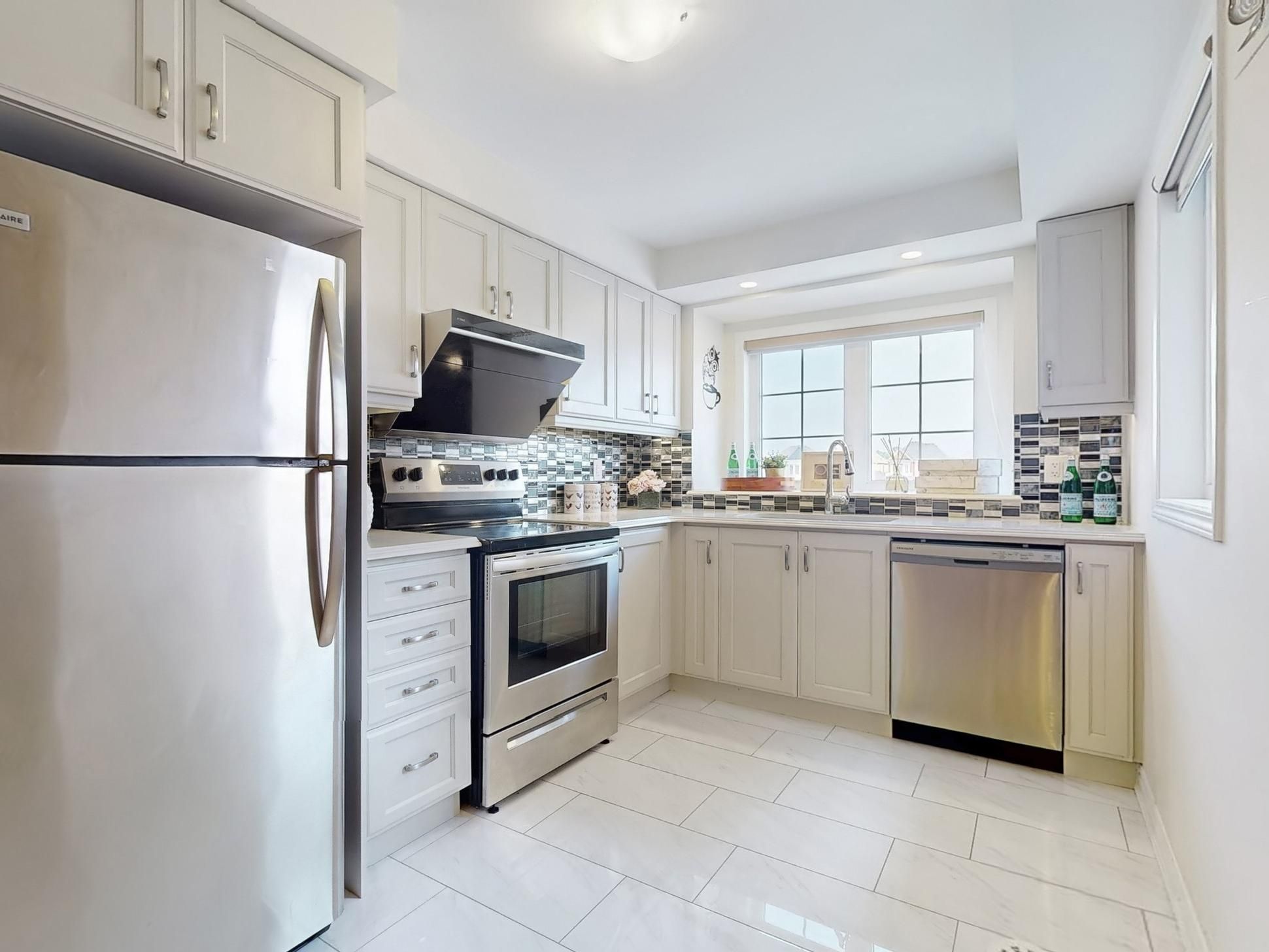 • Modern kitchen features quartz countertops and premium Fotile range hood.