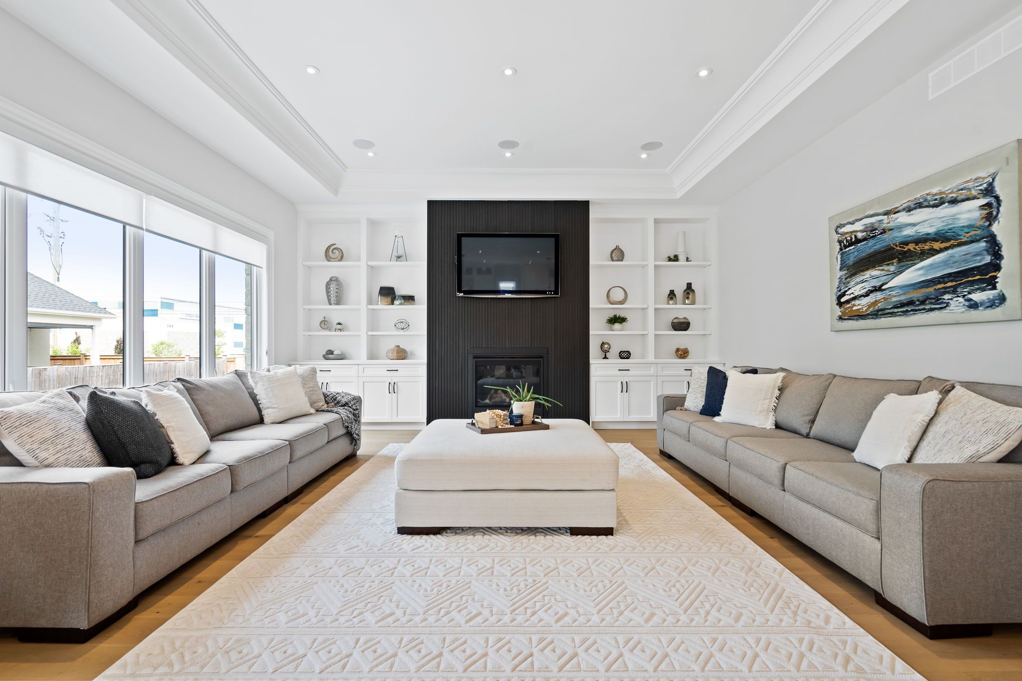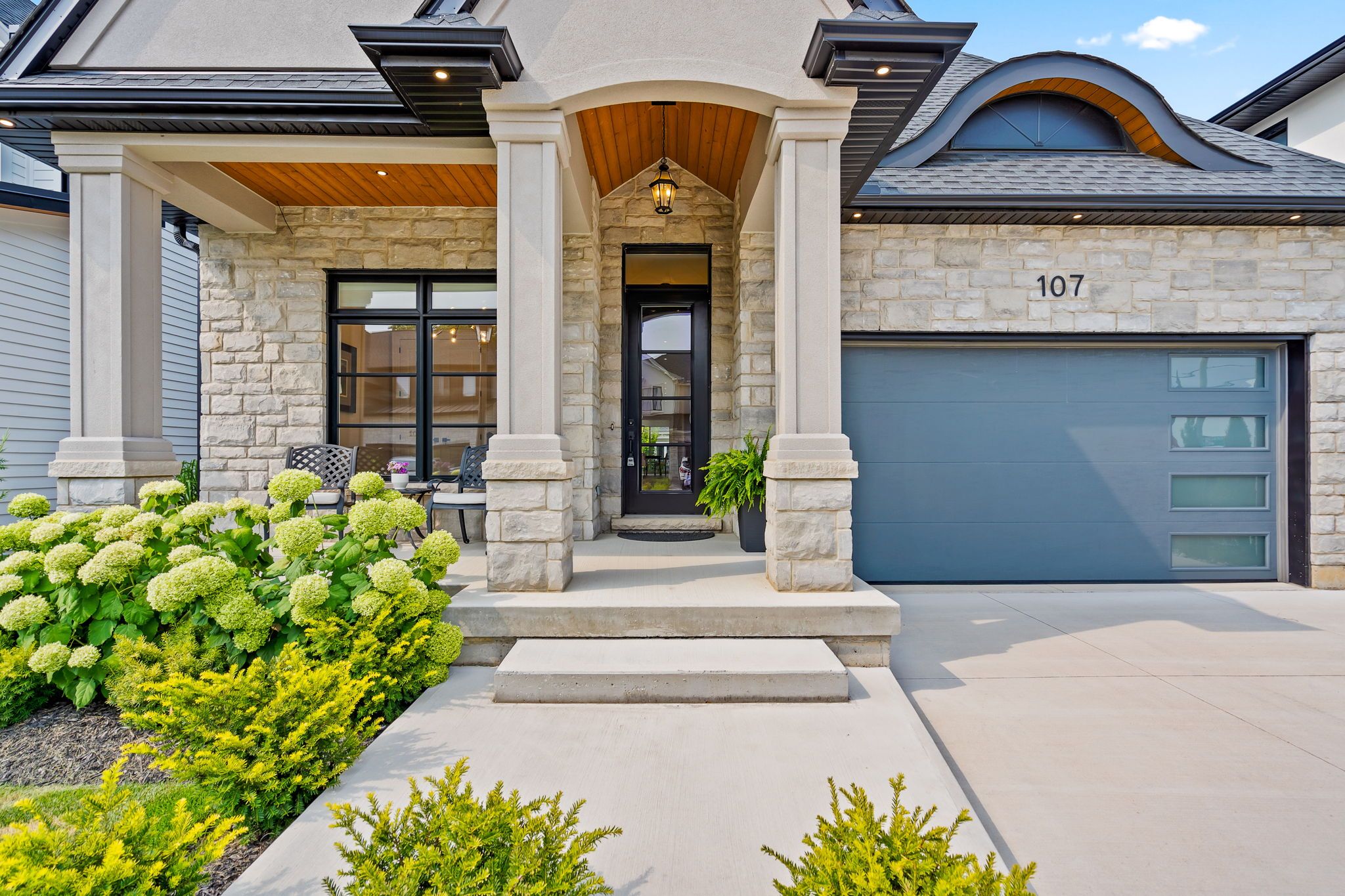 Discover low-maintenance luxury living in this beautifully designed bungalow, perfectly situated between niagara-on-the-lake's vineyards and the amenities of niagara falls. This home offers the ideal blend of style, function, and comfort for today's modern buyer. Step inside to soaring ceilings, elegant panel detailing. The chef-inspired kitchen features quartz countertops, custom built-in cabinetry, and a premium thermador gas stove, perfect for entertaining. With 5 spacious bedrooms, a bonus room ideal for a home gym or office, and two full kitchens (including one in the finished basement), the layout is ideal for multi-generational living or hosting guests. Relax by one of two gas fireplaces or enjoy the outdoors on the covered patio. Notable features: engineered hardwood flooring throughout, heated floors in all bathrooms, motorized electric blinds, second kitchen in basement, ac (2022), hvac (2022), roof (2022) in-ground sprinkler system, double garage + driveway parking