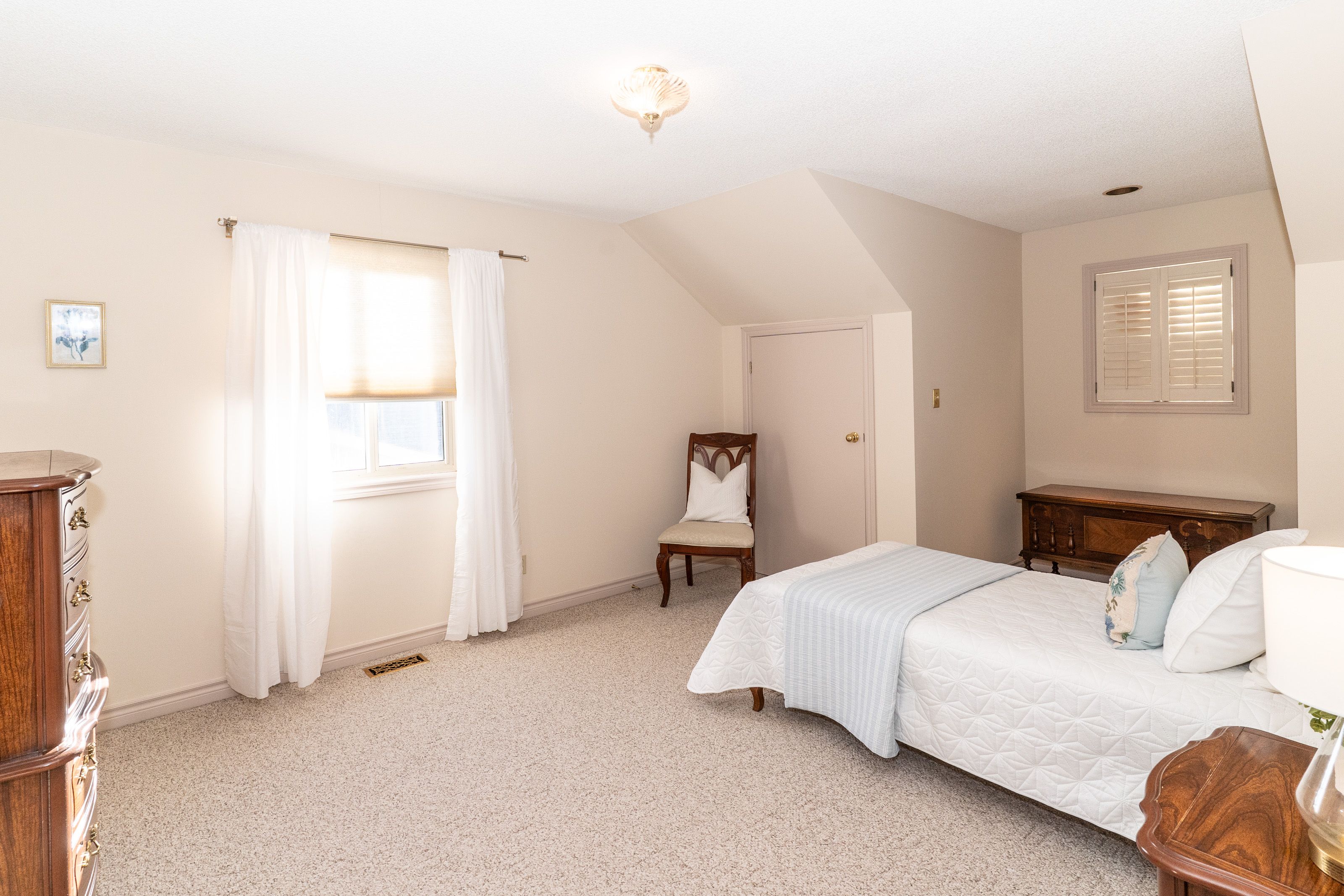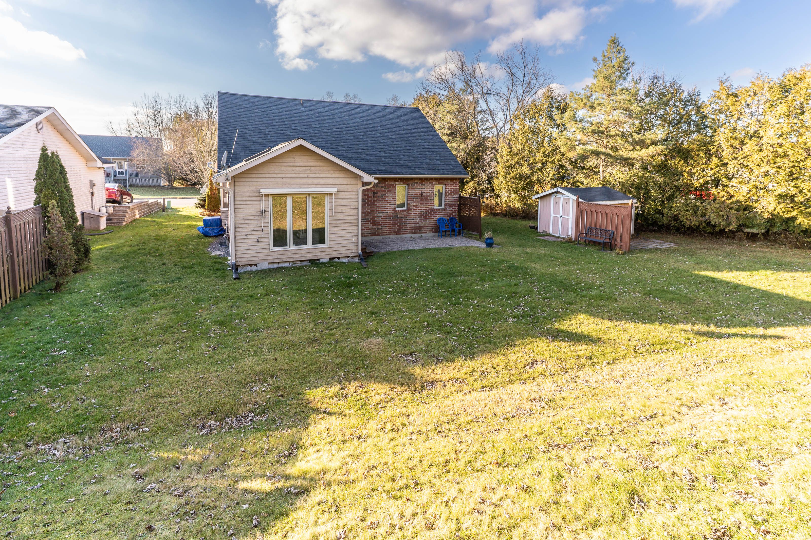 Charming & well maintained in-town home located only minutes from downtown bracebridge! This wonderful 3 bed/2 bath home features a welcoming entrance foyer into bright & cheery main floor offering; inside access to the single car attached garage, living room & formal dining with hardwood floors & gas fireplace, kitchen w/stainless appliances & ample cupboard space, main floor primary bedroom, 4pc bath & a lovely 3 season sunroom with cathedral ceilings & walkout to the back yard patio. 2nd floor features 2 generously sized bedrooms w/dormers & a 4pc bathroom. Basement has a finished rec room area with a free standing gas fireplace & a large utility/laundry room with lots of storage space. Forced air gas heating, central air conditioning, on demand hot water, central vac & town services make this lovely home a wonderful low maintenance option for you and your family.