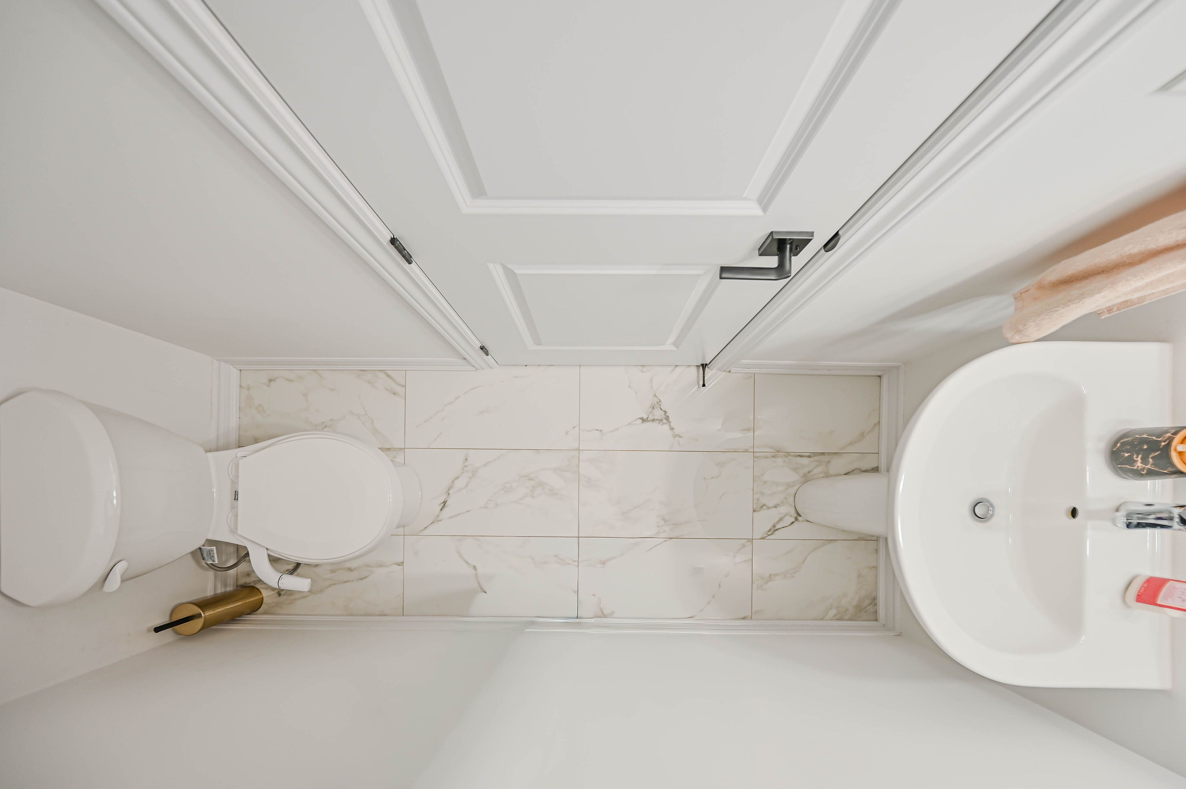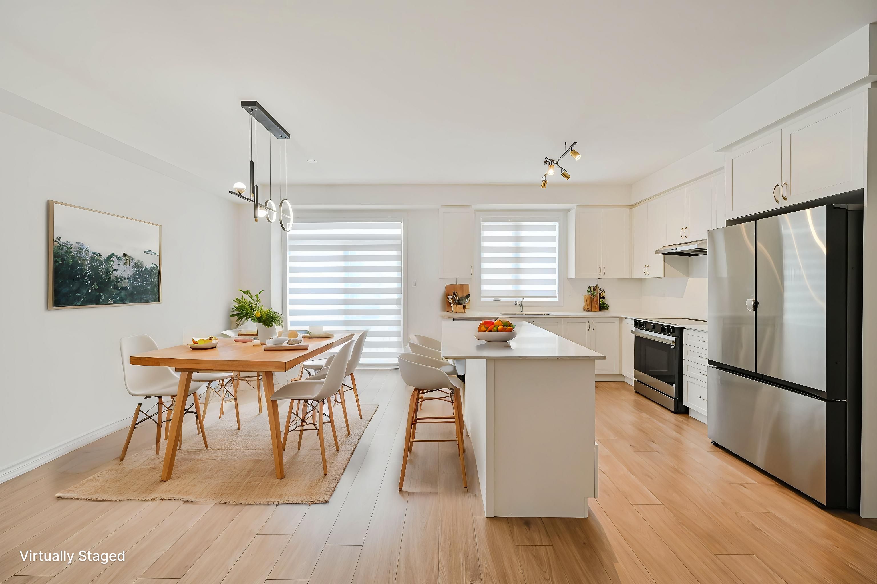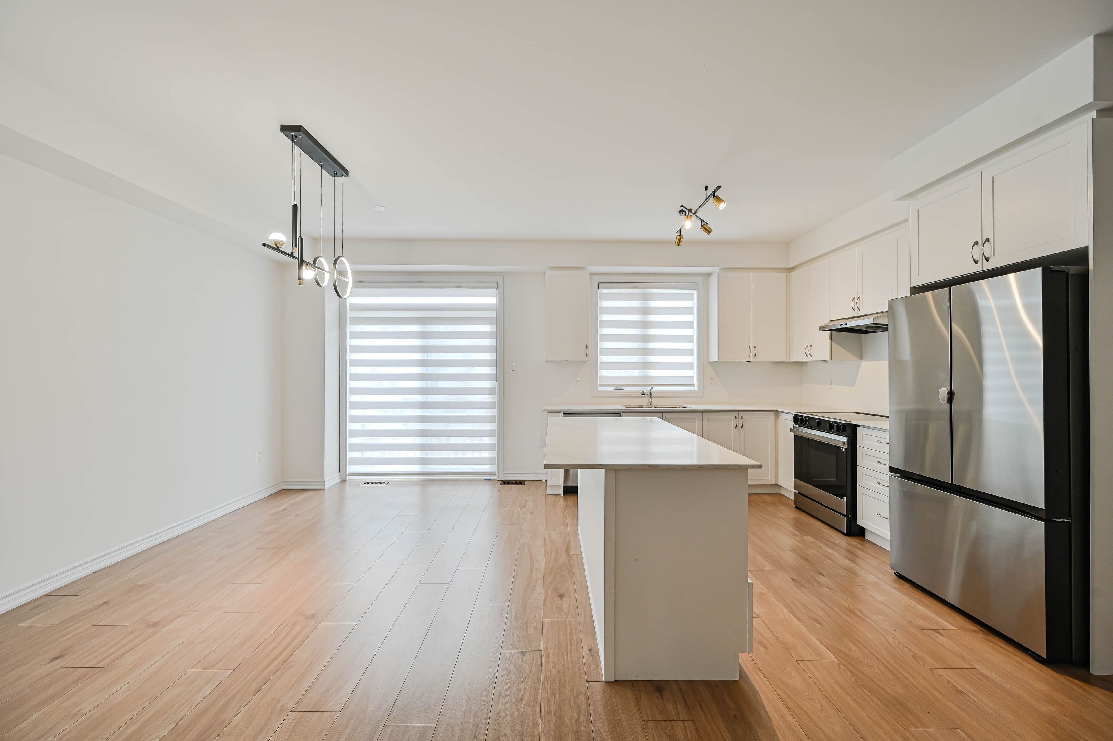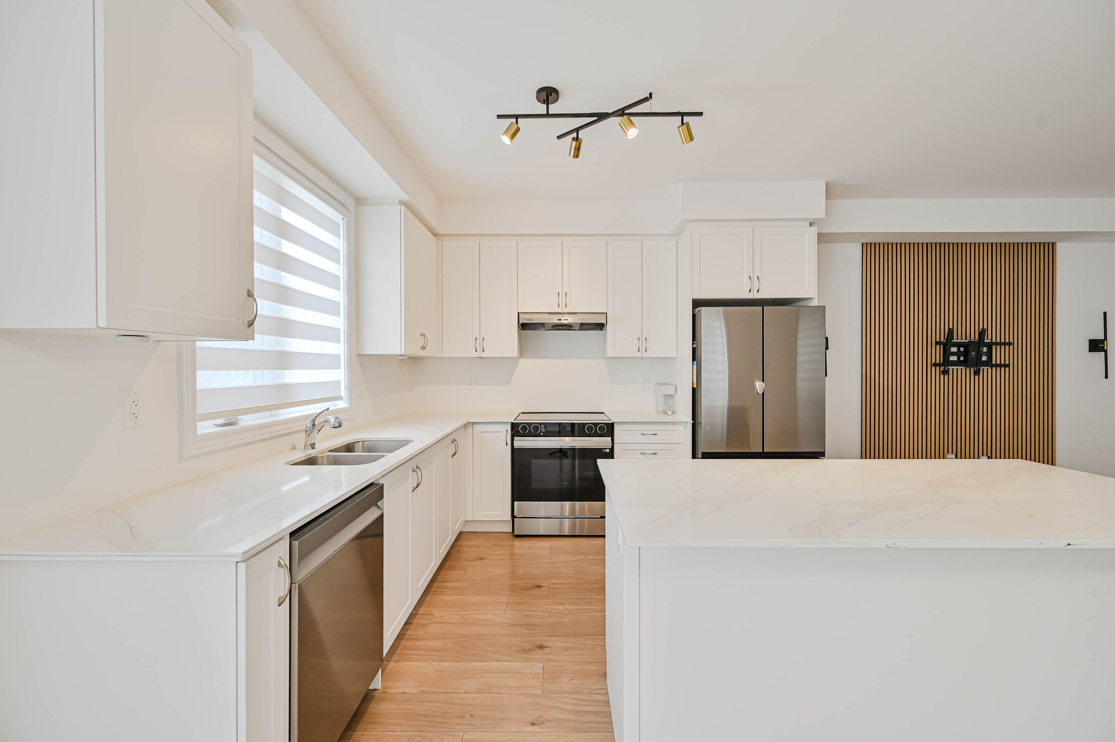 • Sophisticated kitchen with quartz countertops and modern cabinetry.