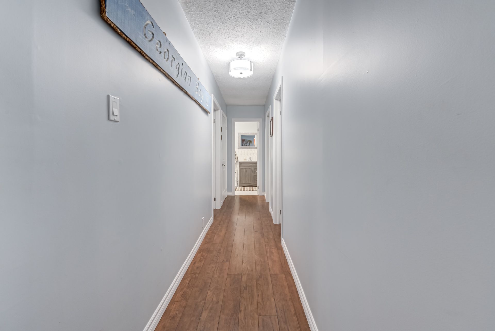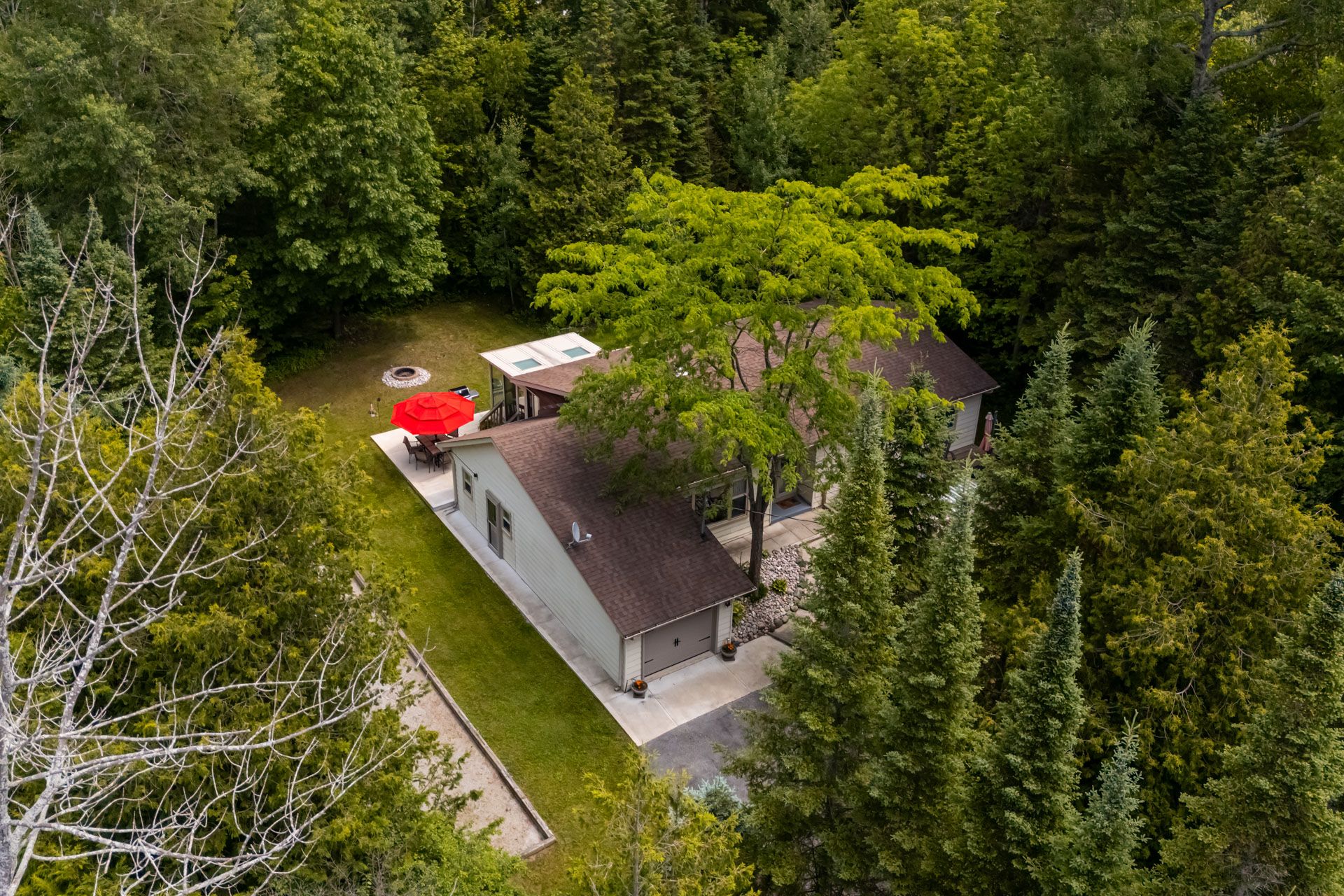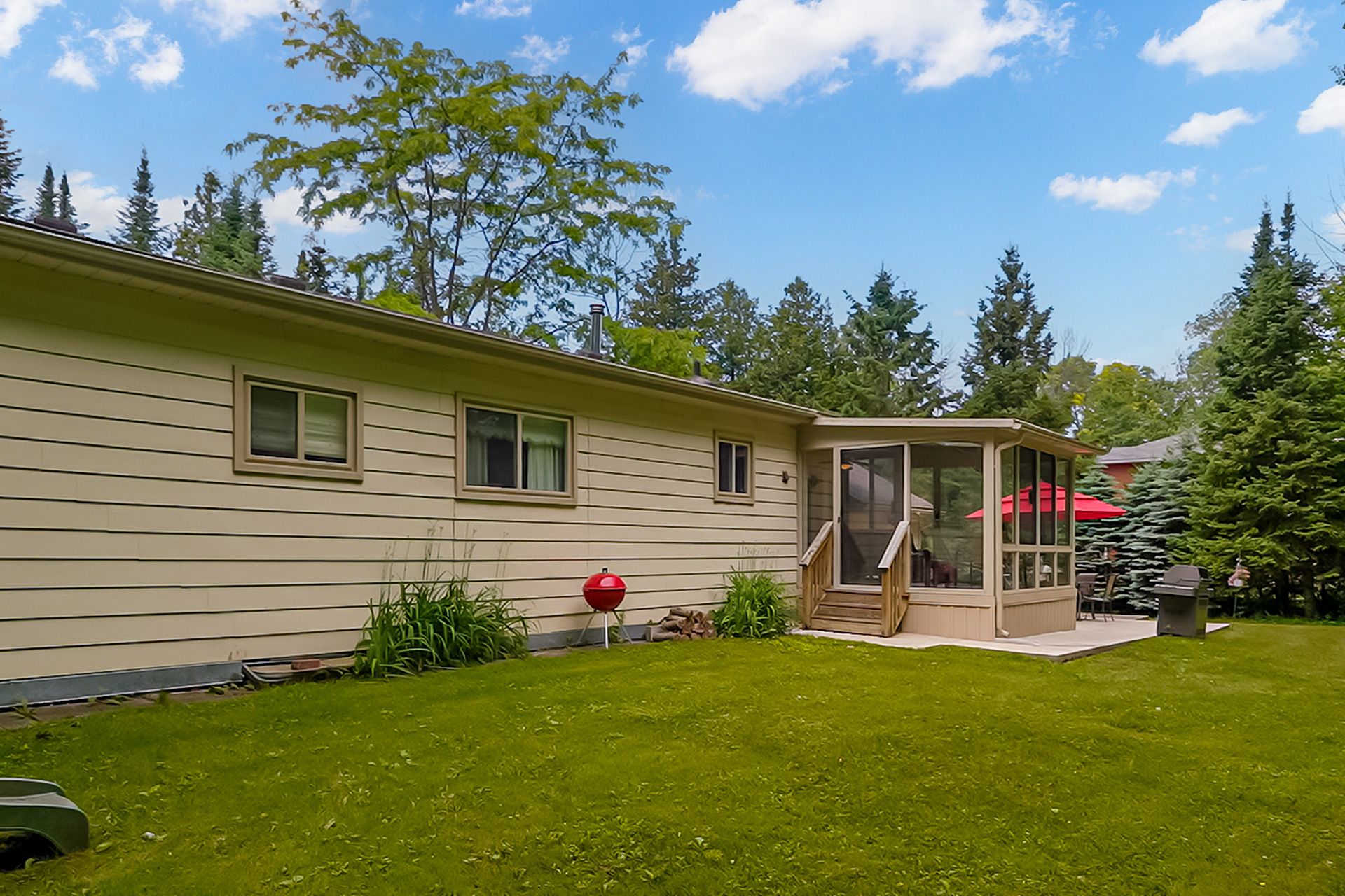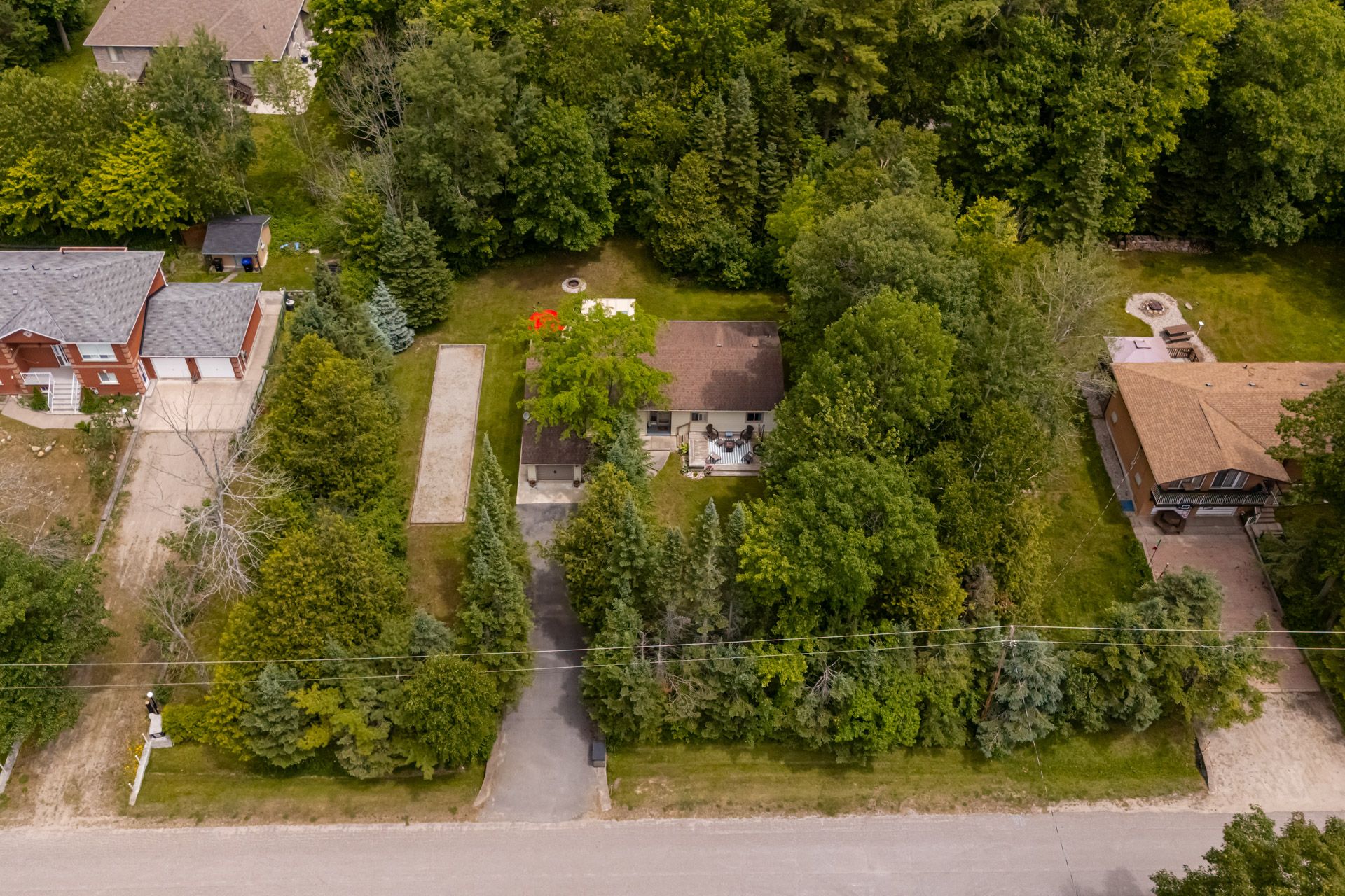 Welcome to 107 nicole blvd, a stunning year-round retreat nestled in the sought after tiny beaches community just steps from beautiful bluewater beach on georgian bay and the scenic boardwalk. This charming home sits on an extra wide 135-ft frontage 0. 46 acre lot, offering unparalleled privacy with mature evergreens and an expansive front and backyard - perfect for outdoor entertaining, complete with a bocce court and a large front deck. Inside, laminate flooring flows throughout the spacious layout. A generous size foyer opens into a sun-filled living room featuring a large picture window overlooking the front yard. The large open concept kitchen is equipped with updated countertops, dishwasher, and a rare wood-burning stove. The adjacent dining room leads into a stunning sunroom with floor to ceiling windows, skylights, and backyard access - ideal for both lounging and entertaining. The luxurious primary suite offers an oversized spa-like ensuite with in-suite laundry. Three additional bedrooms are bright and spacious, each with tons of natural light. Enjoy direct access from the 1-car garage into the home and an extra long private double driveway with parking for 6+ vehicles. Full unfinished basement with large windows. 30 minutes north/west of barrie. Located within 15 minutes to booming wasaga beach, with major new developments funded by the provincial government underway this is a rare opportunity to invest in a beautiful, private oasis steps from the water.