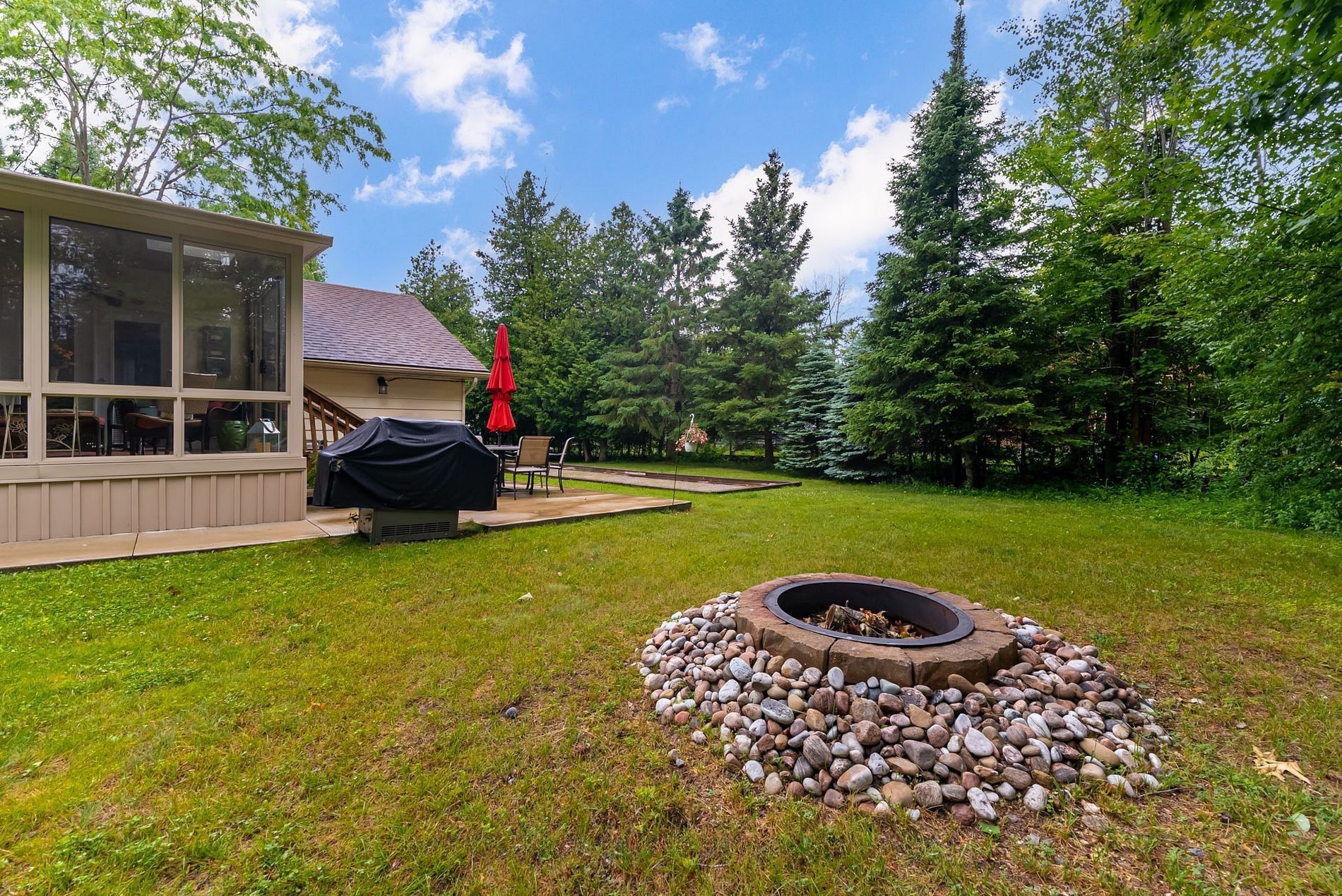 • Spacious 0.46-acre lot with mature evergreens and ample outdoor space.