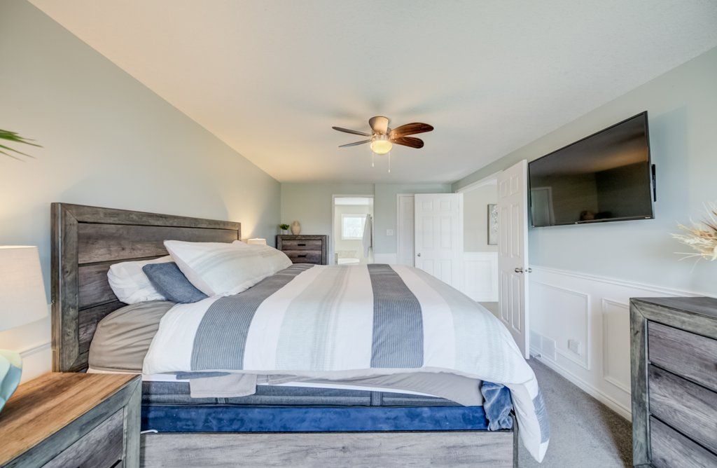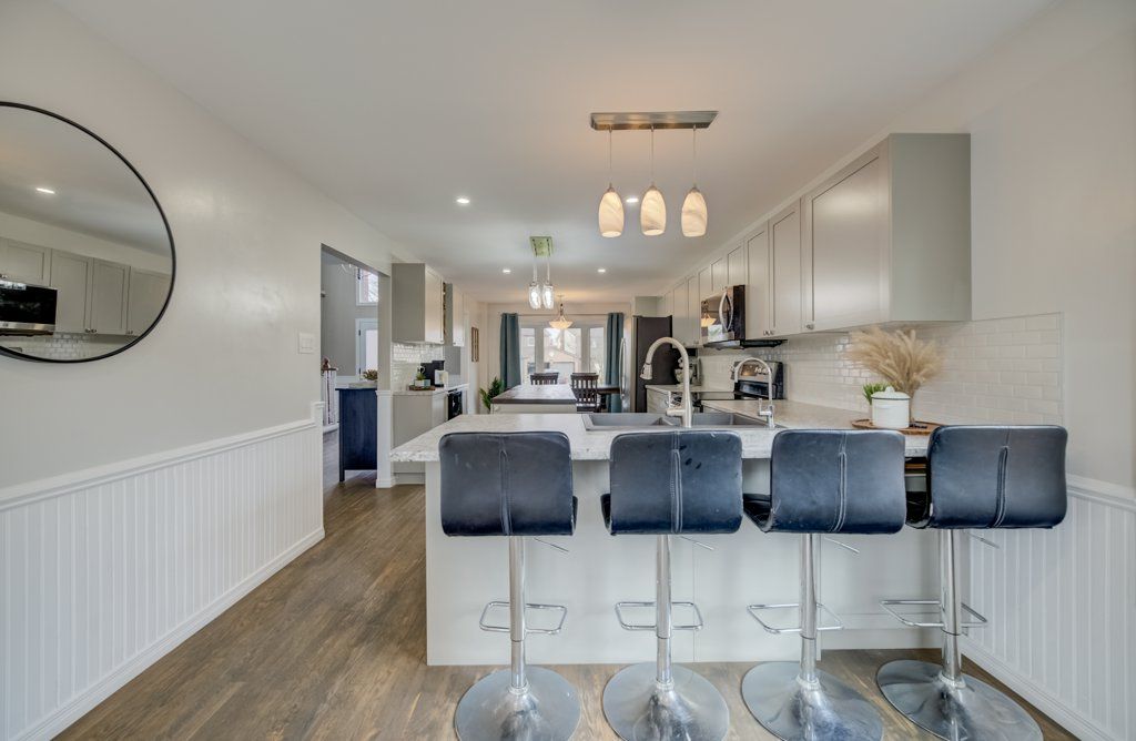 Located in the desirable forest heights neighbourhood, this beautifully updated 4-bedroom, 4-bathroom home offers the perfect blend of space and modern style for families of all sizes. An impressive entrance welcomes you with a bright, spacious foyer, soaring ceilings, and a stunning curved staircase, while classic wainscoting and sleek black-framed windows and doors add timeless elegance with a contemporary touch. The main floor features a bright, updated kitchen with stainless steel appliances, centre island, and coffee station with beverage fridge, along with an eat-in area and walkout to backyard. Sunken multi-purpose room with private french doors currently used as a home office as well as family room with gas fireplace and an additional walkout to deck. Upstairs offers a spacious primary bedroom with a private ensuite with glass shower and soaker tub, plus three additional bedrooms and a fully renovated family bathroom. The fully finished lower level adds a large rec room with second fireplace and bathroom makes an ideal in law suite. Outside, enjoy a private, fully fenced backyard with mature trees, a large deck perfect for entertaining.