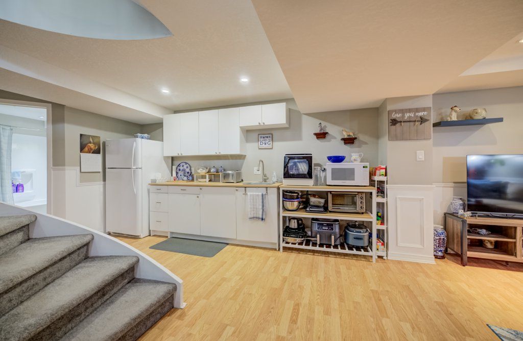 • Modern kitchen with stainless steel appliances and convenient coffee station.