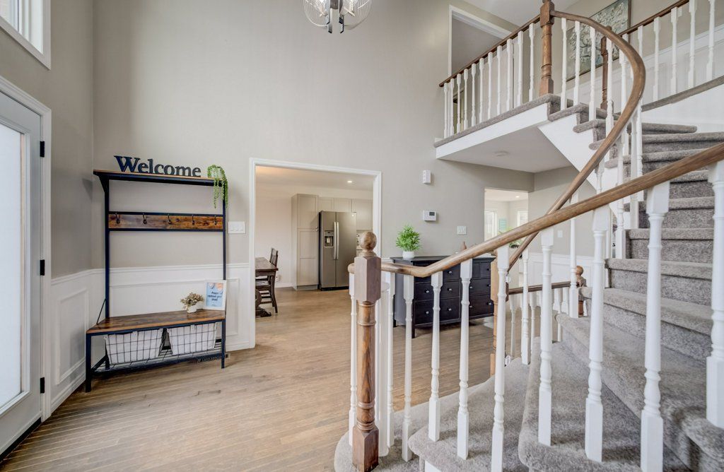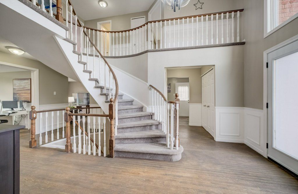 • Spacious foyer with soaring ceilings and a striking curved staircase.