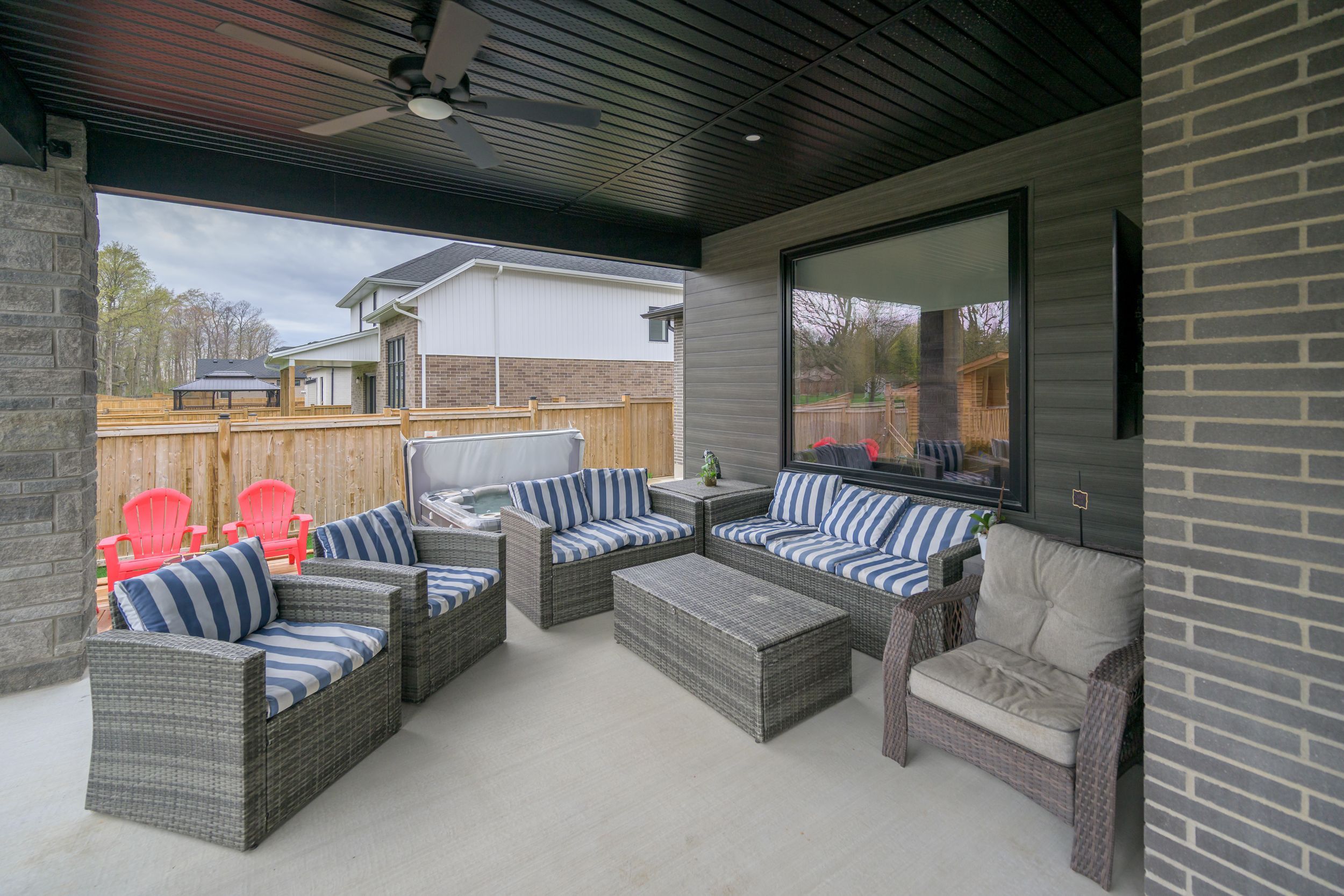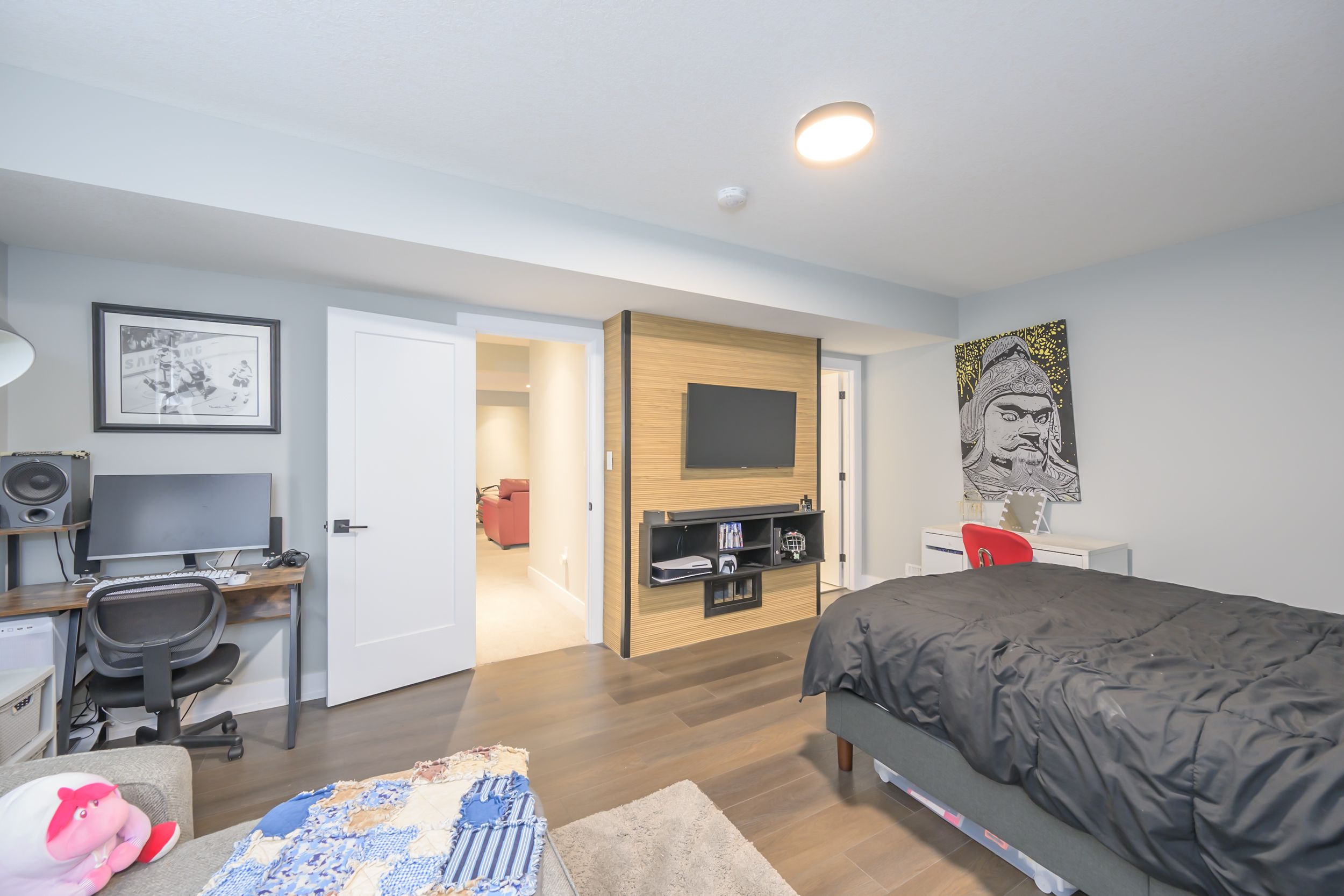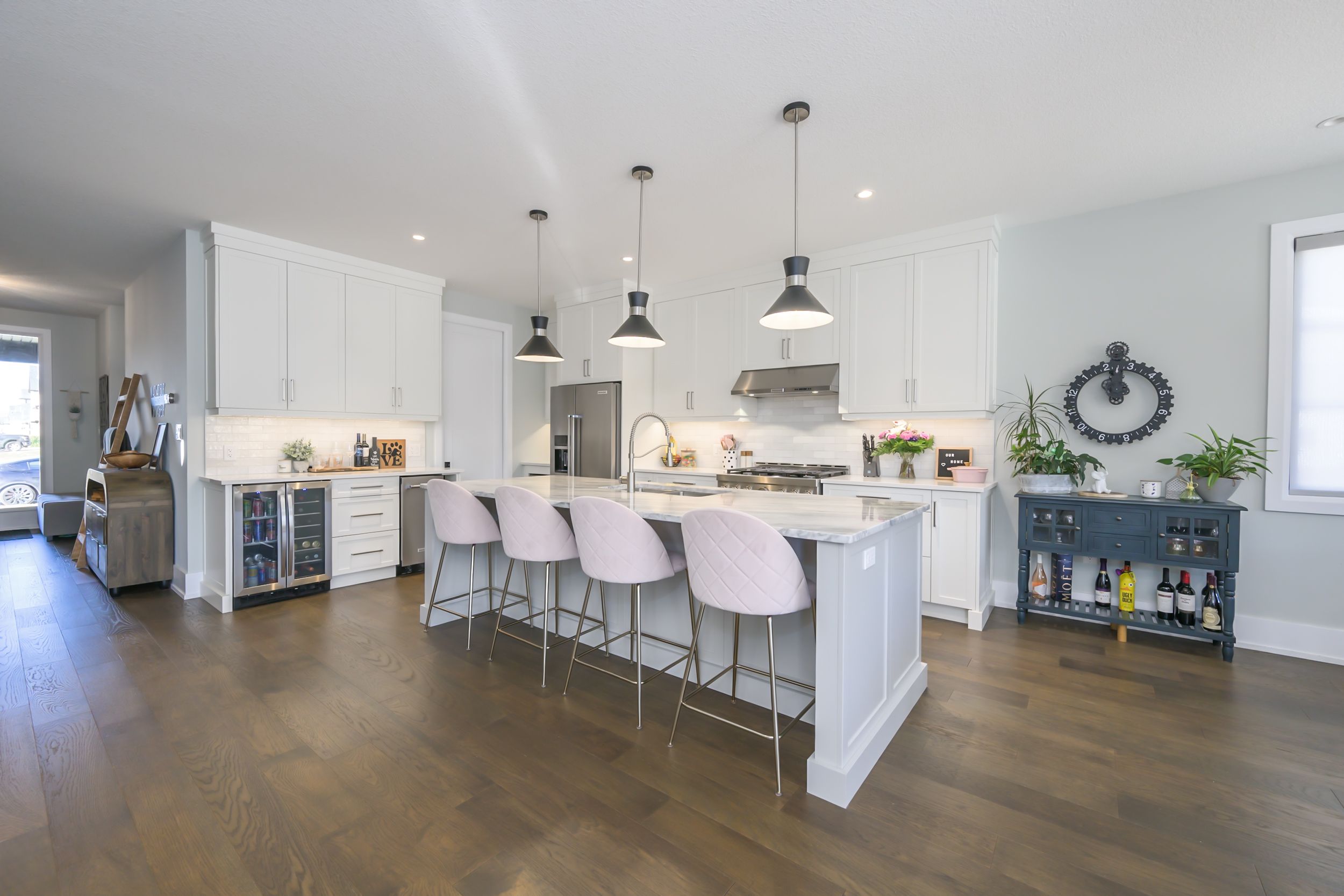 Welcome to your dream home stunning 5-bedroom, 6-bathroom masterpiece offering 4,300 square feet of meticulously designed living space, situated on a spacious approximately 1/3 of an acre lot. Every inch of this home showcases high-end finishes and exceptional craftsmanship, making it a true standout in today's market. Step inside to find rich hardwood floors flowing throughout the open-concept main level, complemented by sleek hard surface countertops in every bathroom and the gourmet kitchen. The kitchen is a chef's paradise with a butler's pantry, premium appliances, abundant cabinetry, and a generous island perfect for entertaining. The home features three luxurious en-suite bedrooms, providing comfort and privacy for family and guests. Spa-inspired master ensuite includes glass-tiled shower and upscale fixtures, creating a serene retreat after a long day. A dedicated office provides the perfect space for working from home. Outdoors, enjoy resort-style living with a sparkling pool and hot tub, all set within a beautifully landscaped yard. The covered back porch is ideal for year-round entertaining or quiet evenings overlooking your private oasis. Additional highlights include a spacious 3-car garage, ample storage throughout, and a layout that effortlessly balances open-concept living with functional private spaces. Don't miss this rare opportunity to own a one-of-a-kind property that blends elegance, comfort, and lifestyle. Some other great features of this home are its upgraded windows, 9-foot main floor ceilings with 8-foot doors, a 2-piece washroom in the pool house, salt water pool and a fully fenced yard with solar lighting.