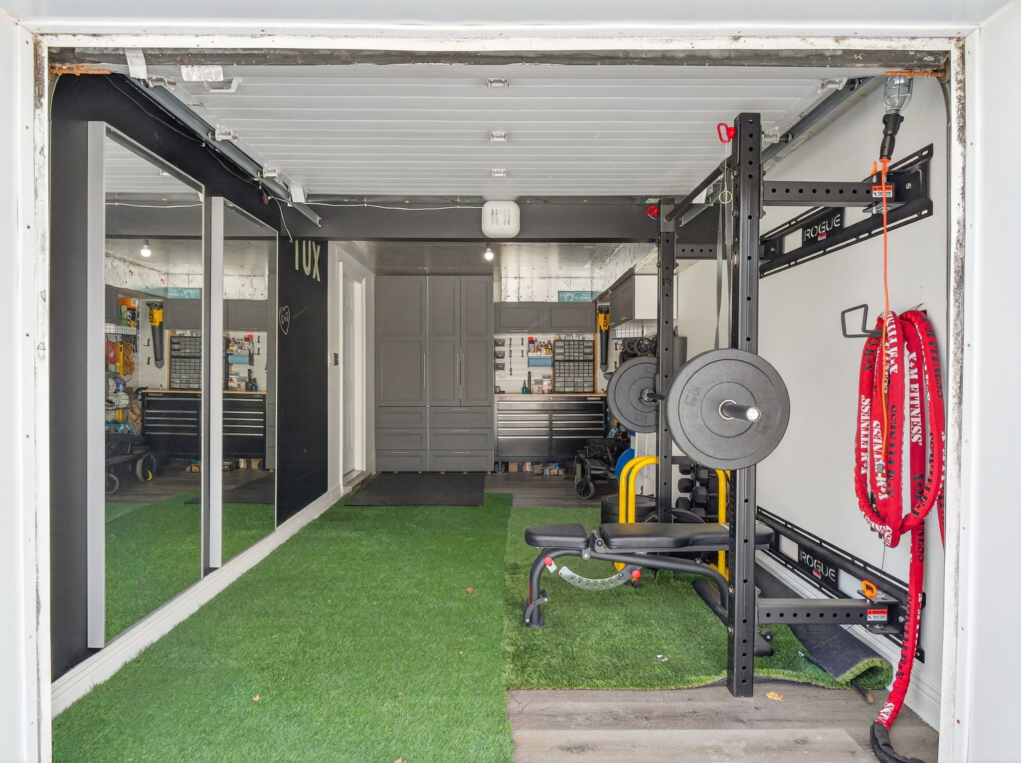• Large garage suitable for a gym, workshop, or hobby space.
